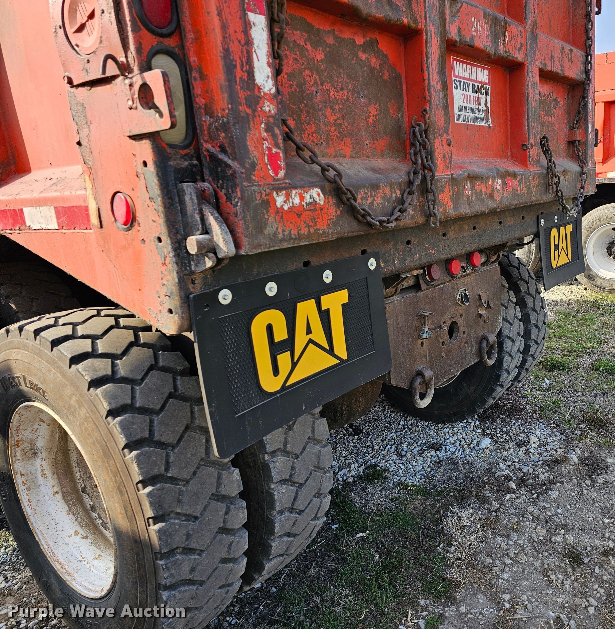 2001 Sterling L7500 dump truck. Miles: 256,646 on odometer, Hours: 11,107 on meter, VIN: 2FZHATAK11AH88820. Engine Caterpillar 3126, Displacement: 7.2L, Cylinders: 6, Fuel type: Diesel. Transmission Automatic. Chassis Axles: Tandem, Differential lock: Inter-axle, Suspension: Spring, Brakes: Air, PTO, Front mount PTO. Interior AC, Heat, Heated mirrors. Features Dump bed Bed type: Steel, Ram: Single, End gate: Air operated. Notes Dash warning indicator: ABS. Kansas title. Title distribution may be delayed up to 14 days from verification of funds. Stands Farms, LLC. El Dorado, KS 67042