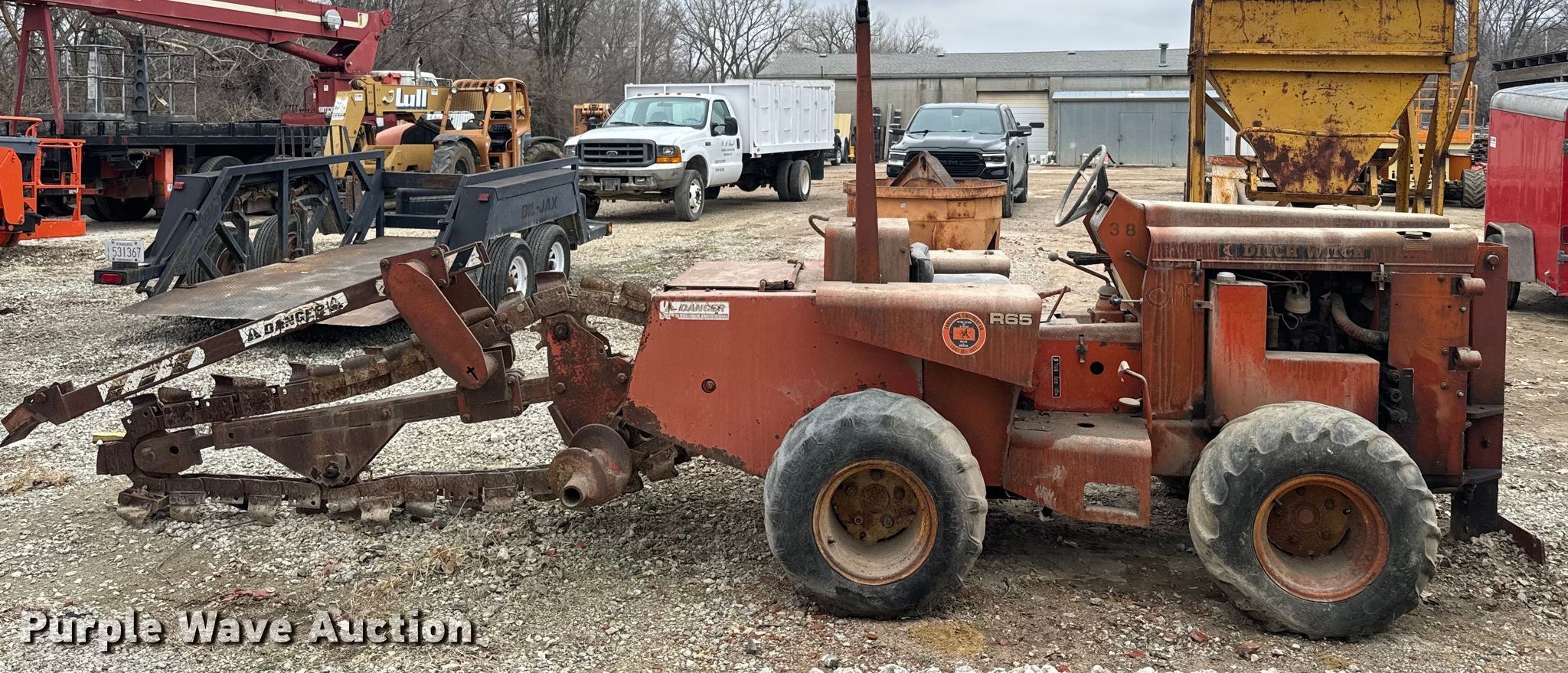 Purple Wave is selling a used Trencher or Rock Saw in Kansas. This item is a 1979 Ditch Witch R65 trencher with the following: Hours: 1,577 on meter, Serial: 653228