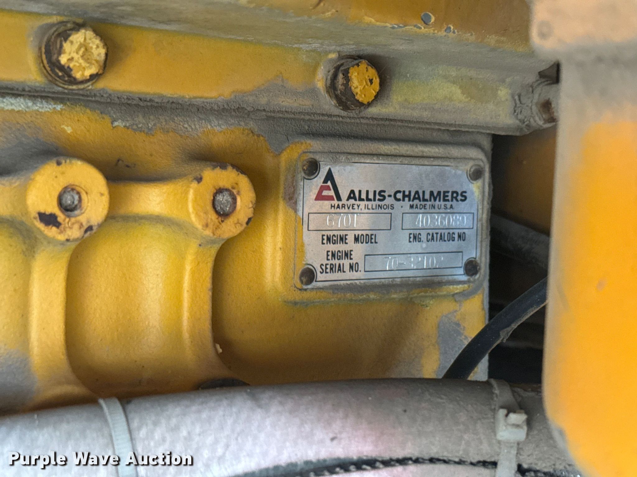 1978 Fiatallis 645B wheel loader. Hours: 568 on meter, Serial: 11Y0-5492. Engine Allis Chalmers, Cylinders: 6, Fuel type: Diesel. Transmission Powershift, 2F - 1R. Operators station Enclosed cab, Bucket controls: Two-lever. Features Bucket Width: 104", Teeth: 10. Tires Size: 20.5-25. Notes Glass cracked. Sawyer Construction. Council Grove, KS 66846