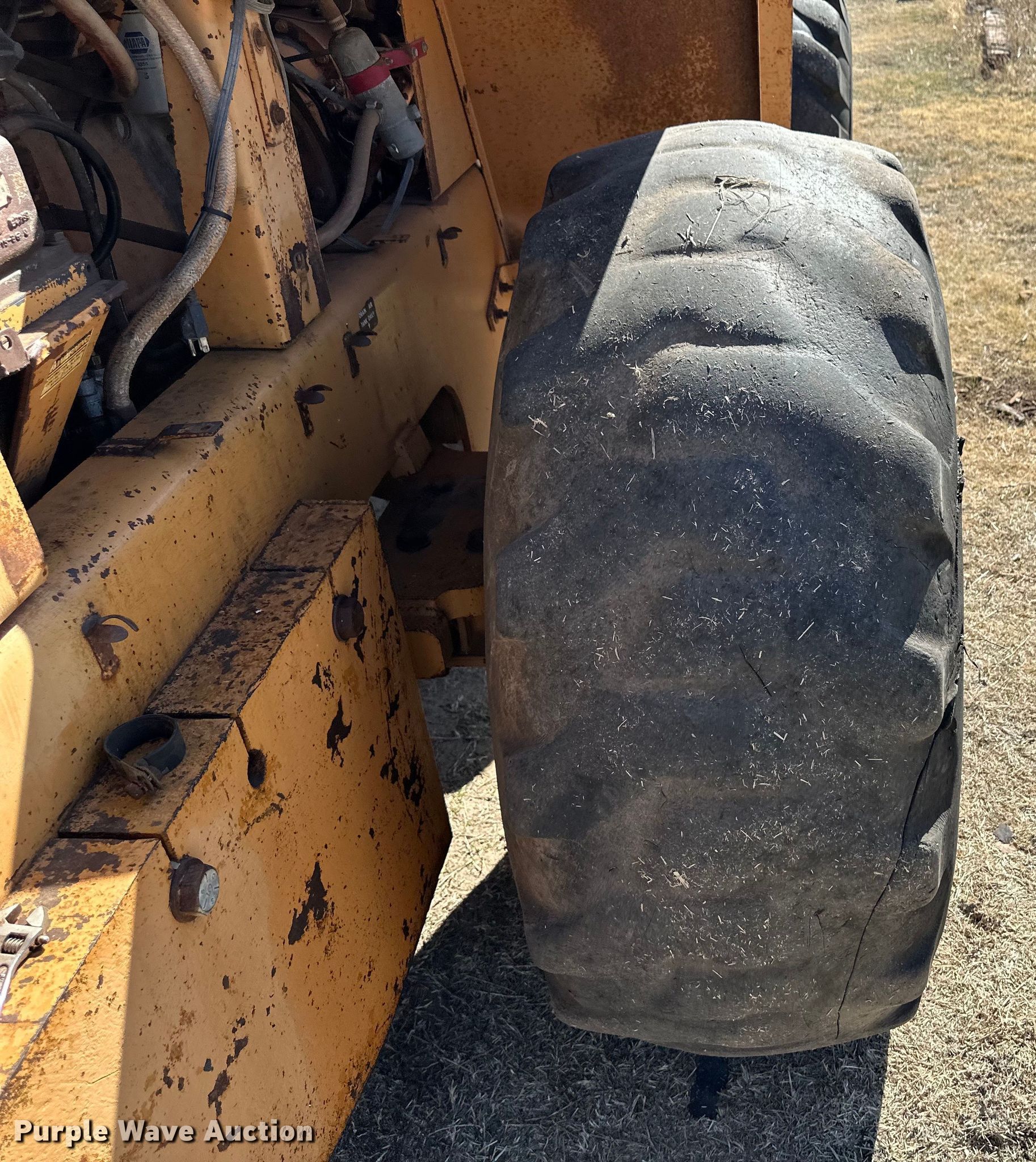 1984 Case W20C wheel loader. Serial: 9155738. Engine Cylinders: 6, Fuel type: Diesel. Transmission Powershift, 4F - 2R. Operators station Enclosed cab, Bucket controls: Two-lever. Features Bucket Width: 94", Self- leveling bucket, Cutting edge: Weld-on. Tires Size: 20.5R25. Notes Glass missing, Door missing. Nevarez Trucking. 15623 N. State Hwy 23. Beaver, OK 73932