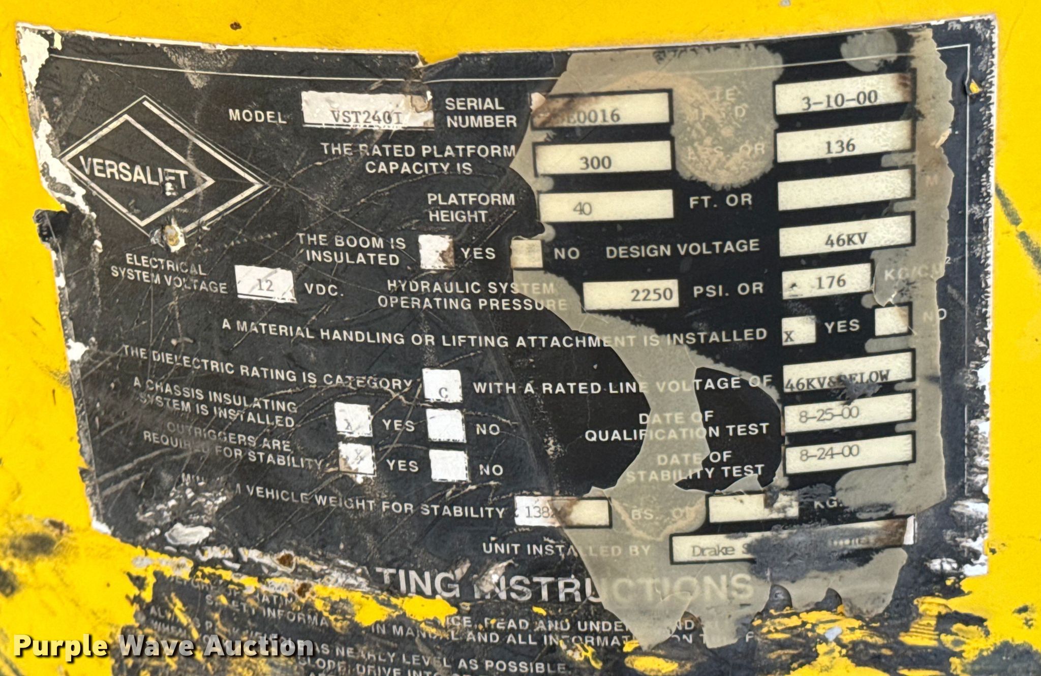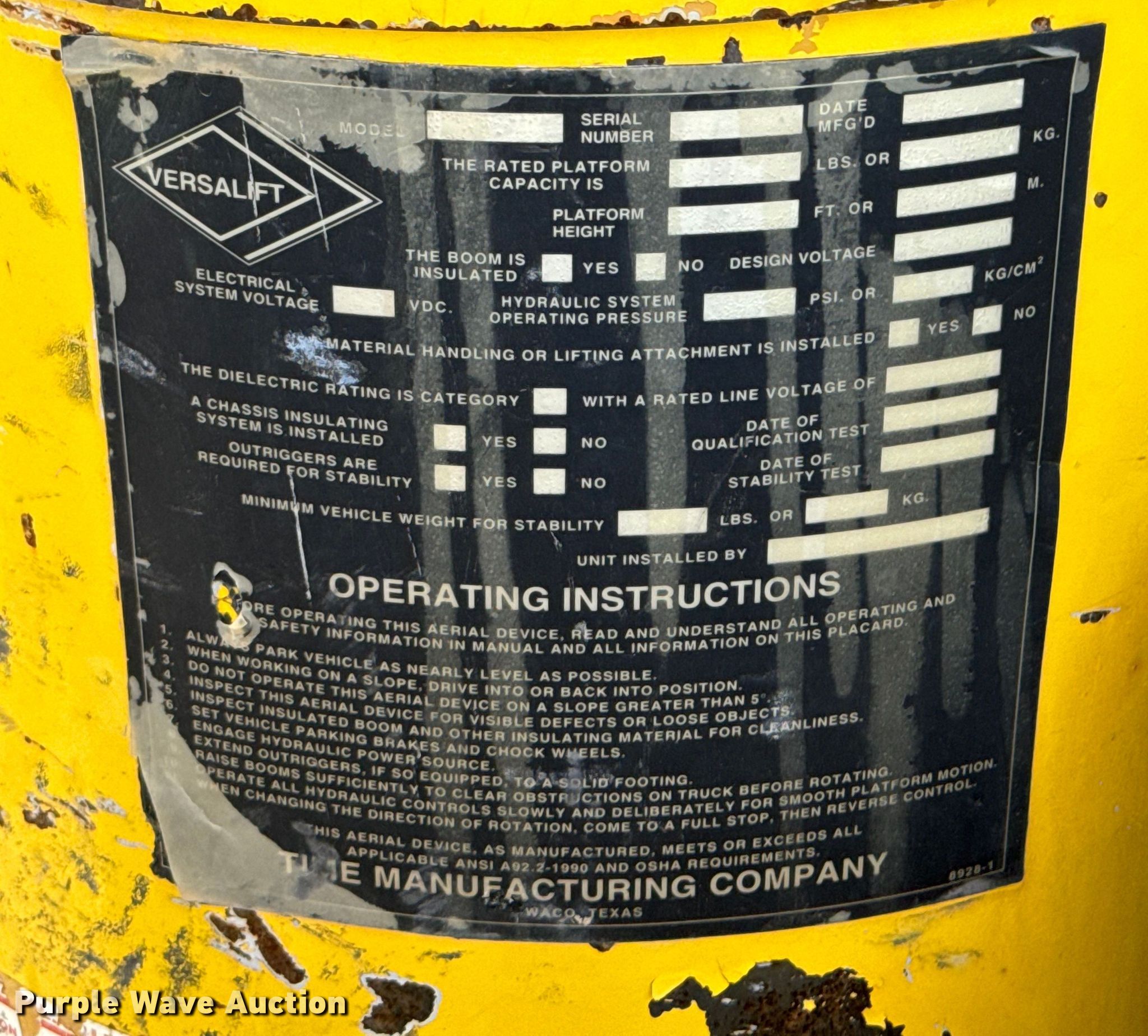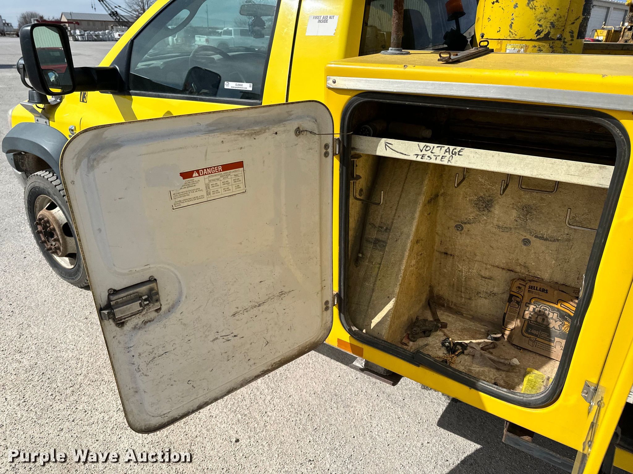 2009 Sterling 5500 bucket truck. Miles: 316,676 on odometer, VIN: 3F6WK76L79G519991. Engine Displacement: 6.7L, Cylinders: 6, Fuel type: Diesel. Transmission Automatic. Chassis Four wheel drive, Axles: Single, Suspension: Spring, Brakes: Hydraulic, PTO, GVWR: 19,500 lbs. Interior AC, heat, Power windows, power locks, Cruise control, Auxiliary controls. Features Bed Versalift VST240I, 13' L x 7' 10" W, Boom Maximum lift capacity: 300 lbs, Maximum lift height: 40', Boom type: Articulating, Insulated, Telescopic, Man basket, Boom controls Ground, Platform/ basket.. Tires Size: 225/70R19.5. Notes Dash warning indicator: Check engine. Missouri title. Title distribution may be delayed up to 14 days from verification of funds. New-Mac Electric Co-op, Inc.. 12105 State Hwy 86. Neosho, MO 64850
