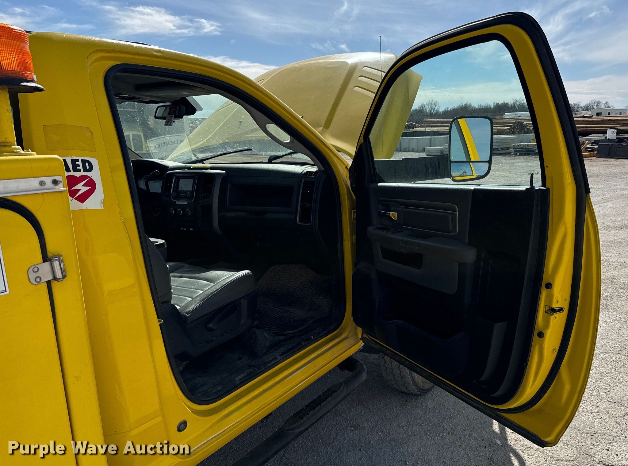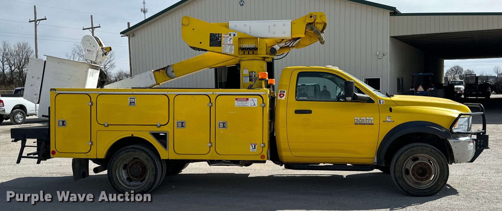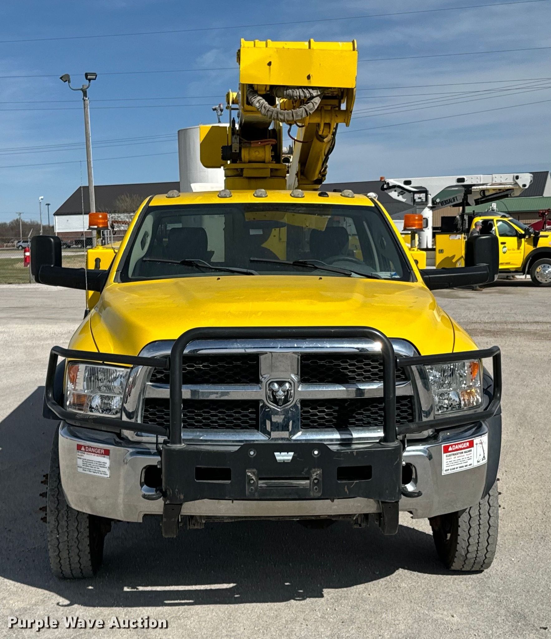 2014 Dodge Ram 5500 bucket truck. Miles: 190,785 on odometer, VIN: 3C7WRNBL5EG286387. Engine Cummins, Displacement: 6.7L, Cylinders: 6, Fuel type: Diesel. Transmission Automatic. Chassis Four wheel drive, Axles: Single, Suspension: Spring, Brakes: Hydraulic, PTO, GVWR: 19,500 lbs. Interior AC, heat, Heated mirrors, Power windows, power locks, Cruise control, Auxiliary controls. Features Bed Versalift VST-240, 13' L x 7' 10" W, Boom Maximum lift capacity: 300 lbs, Maximum lift height: 40', Boom type: Articulating, insulated, telescopic, Man basket, Boom controls Ground, Platform/ basket.. Tires Size: 225/70R19.5. Notes Dash warning indicator: Check engine, Brake, Traction control. Missouri title. Title distribution may be delayed up to 14 days from verification of funds. New-Mac Electric Co-op, Inc.. 12105 State Hwy 86. Neosho, MO 64850