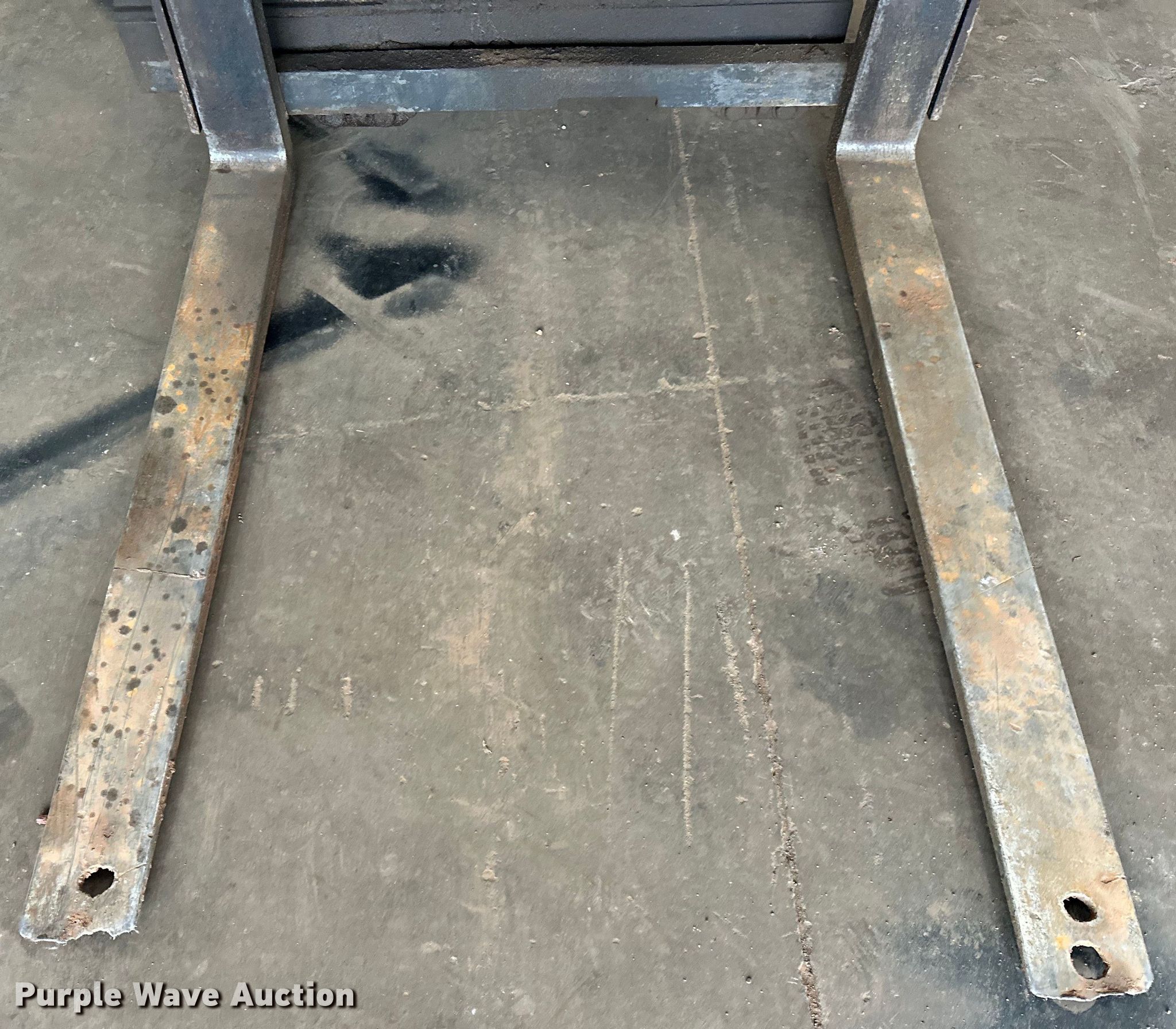 Clark GCS20MB forklift. Hours: 4,589 on meter, Serial: G138MB-0303-6963. Engine Cylinders: 4, Fuel type: LPG LP bottle: Not included. Transmission Powershift. Operators station OROPS. Features Maximum lift capacity: 5,500 lbs, Maximum lift height: 128", Mast stages: 2, Side shift, Mast tilt, Fork length: 39". Tires Solid. Notes Hydraulic hose leak. SWH Construction. 18935 Selah Way. Norman, OK 73072