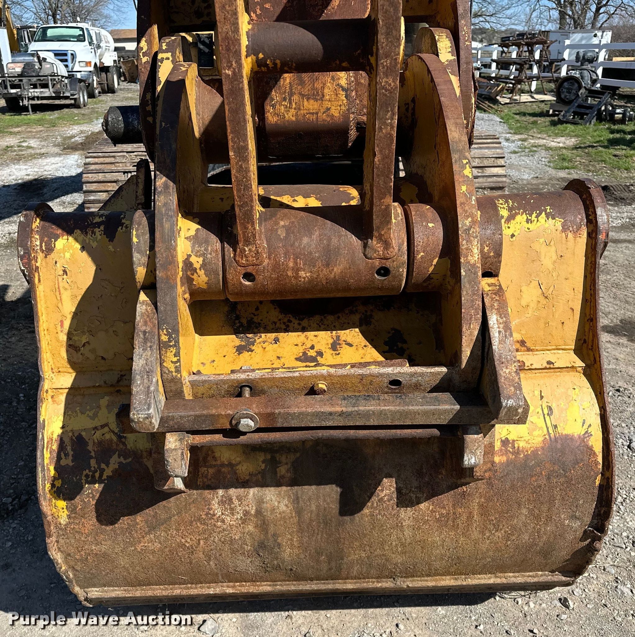 1994 Caterpillar 320L excavator. Hours: 10,721 on meter, Serial: 9KK02184. Engine Caterpillar, Cylinders: 6, Fuel type: Diesel. Transmission Hydrostatic, Two speed travel. Operators station Enclosed cab, AC, Heat. Features Auxiliary hydraulics Standard, Two-way, Boom Standard, Stick Stick length: 9' 6", Quick coupler: Mechanical, Thumb: Hydraulic, Bucket Width: 46", Teeth: 6. Tracks Width: 31.5", Steel, Grouser pads: Triple. Notes Passenger side glass cracked, Fuel injector leak, Glass cracked, Hydraulic cylinder leak, Bucket pin issues, worn. Summers Drilling and Blasting. Claremore, OK 74017