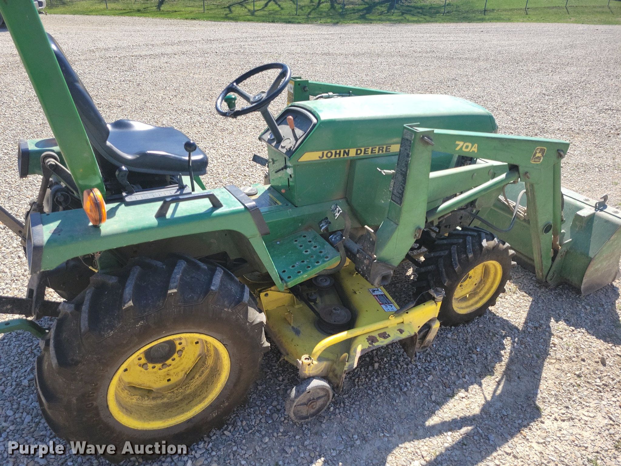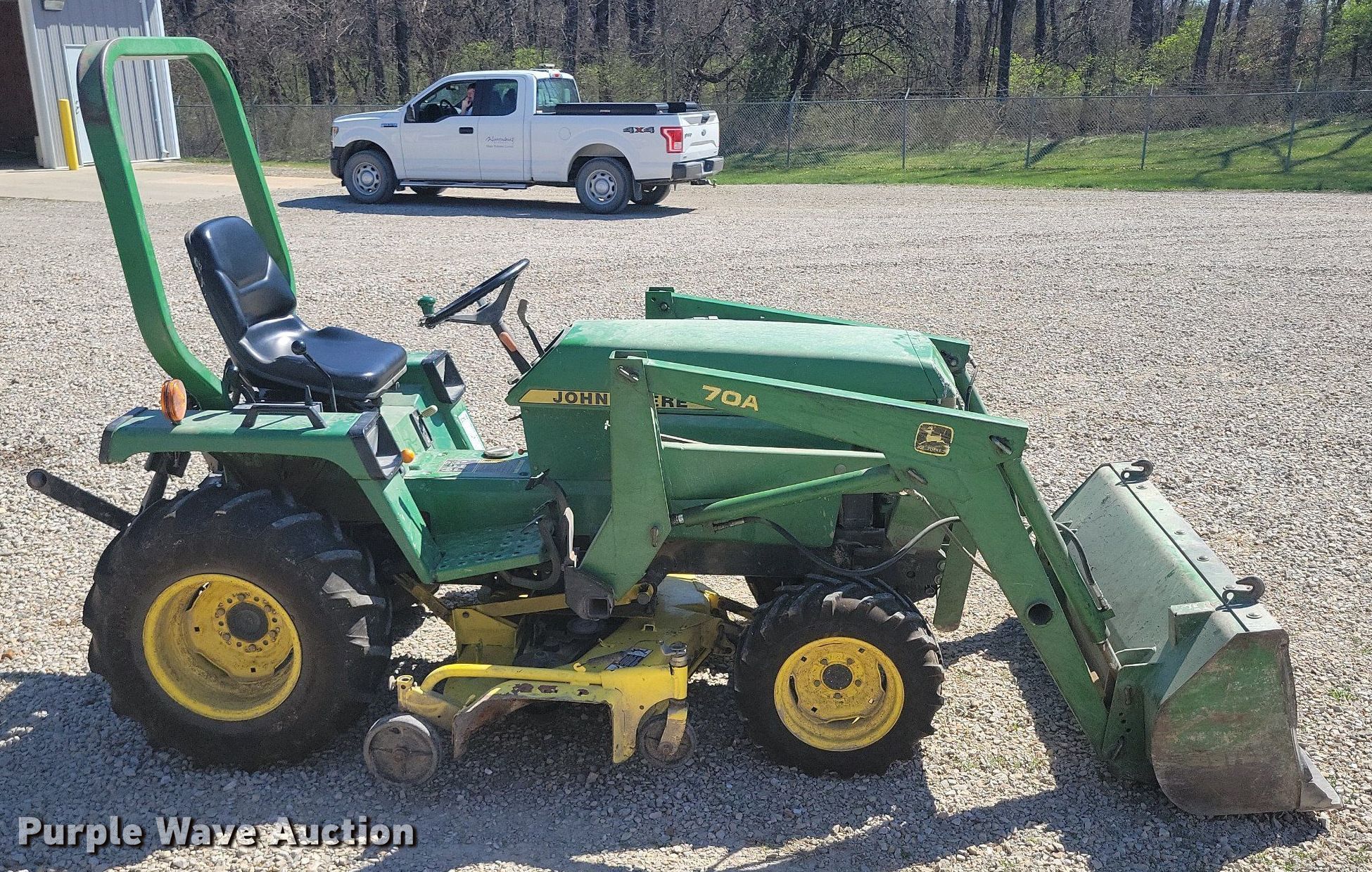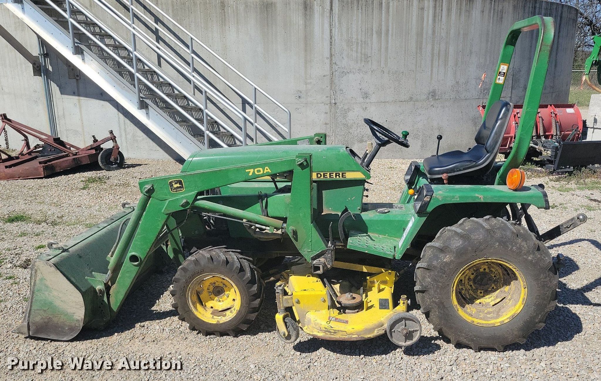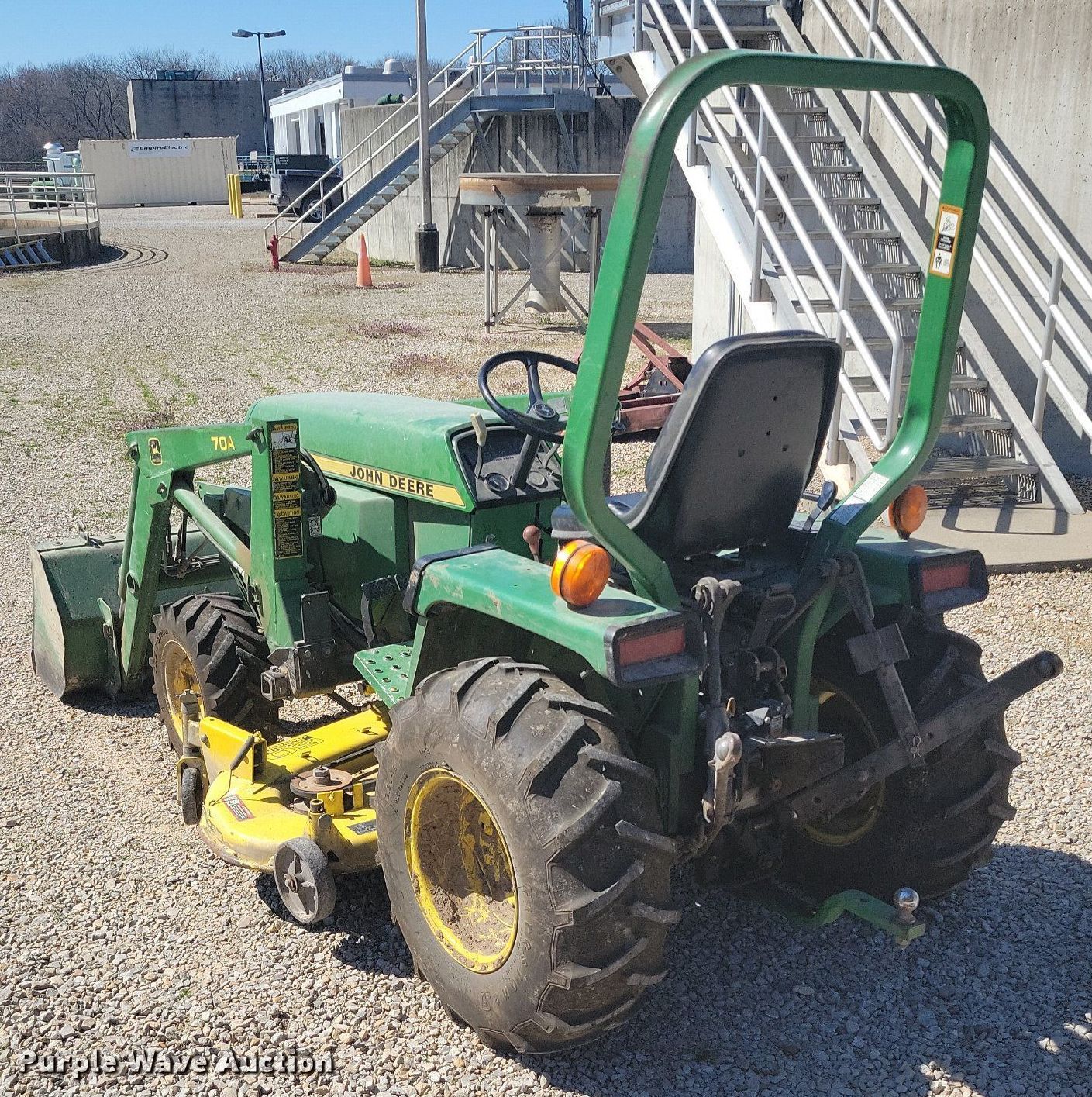 1995 John Deere 855 MFWD tractor. Hours: 1,220 on meter, Serial: LV0855D182456. Engine Yanmar 3TN75RJ, Serial: CH30330023428, Cylinders: 3, Fuel type: Diesel. Transmission Hydrostatic. Features PTO: 540, Three point, Loader John Deere 70A, Bucket Width: 54", Belly mower Width: 30". Tires Front: 23x8.50-12, Rear: 12.5-15L. Notes No mower blades included. City of Warrensburg. 510 E North St. Warrensburg, MO 64093
