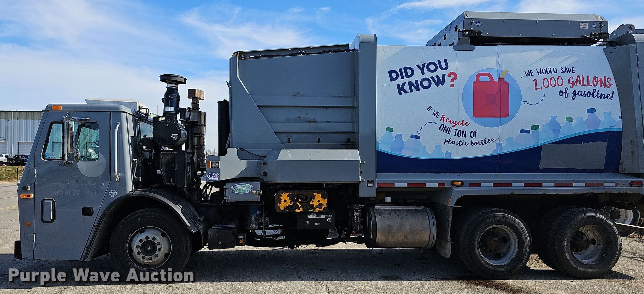 2015 Mack LE600 refuse truck. Miles: 86,597 on odometer, Hours: 4,167 on meter, VIN: 1M2AU14C7FM002330, Unit #: 1911. Engine Displacement: 8.9L, Cylinders: 6, Fuel type: CNG. Transmission Allison, Automatic. Chassis Differential lock: Inter axle, Axles: Tandem, Suspension: Spring over walking beam, Brakes: Air, PTO, GVWR: 66,000 lbs, Wheelbase: 222". Interior AC, heat, Heated mirrors, Cruise control. Features Refuse bed New way 31ASL, Serial: 12366A0514, Load: Side. Tires Front: 315/80R22.5, Rear: 11R22.5. Notes Oil leaks, Dash warning indicator: ATC. Kansas title. City of Olathe. Olathe, KS 66061