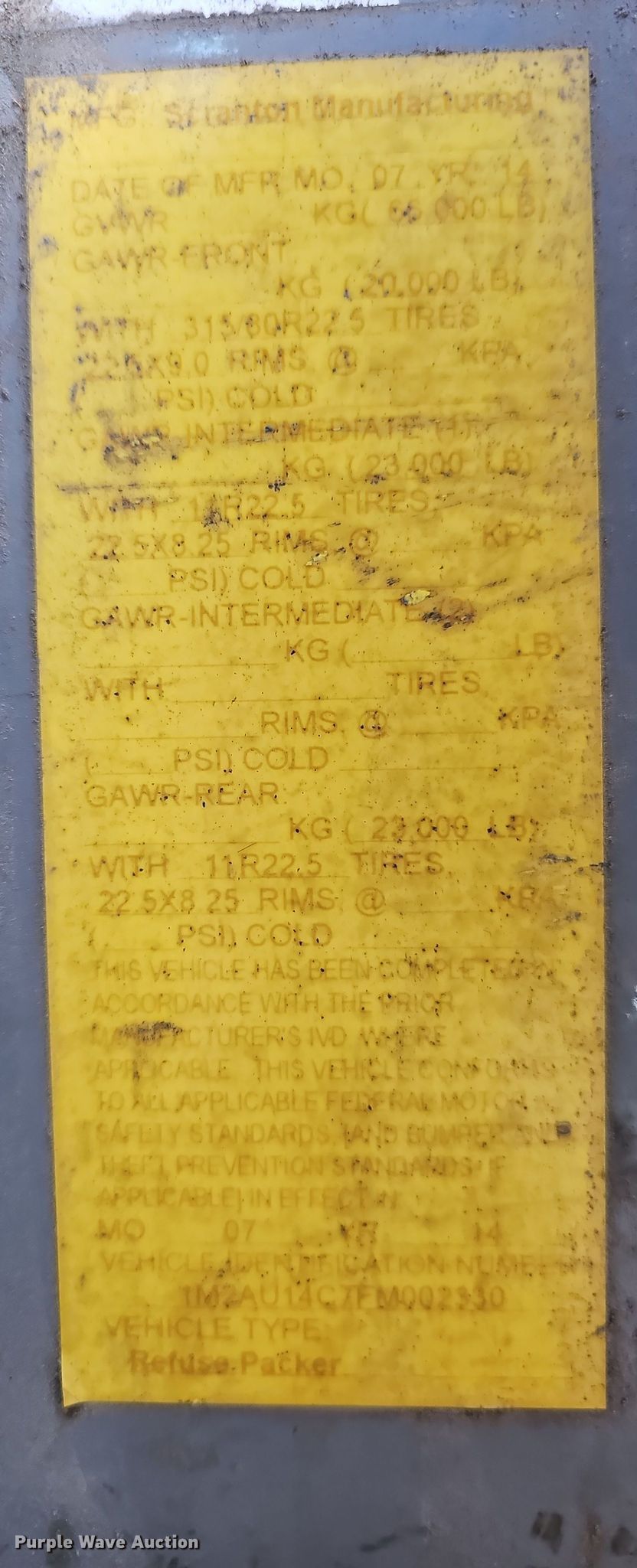 Purple Wave is selling a used Refuse Truck in Kansas. This item is a 2015 Mack LE600 refuse truck with the following: Miles: 86,597 on odometer, Hours: 4,167 on meter, VIN: 1M2AU14C7FM002330, Unit #: 1911