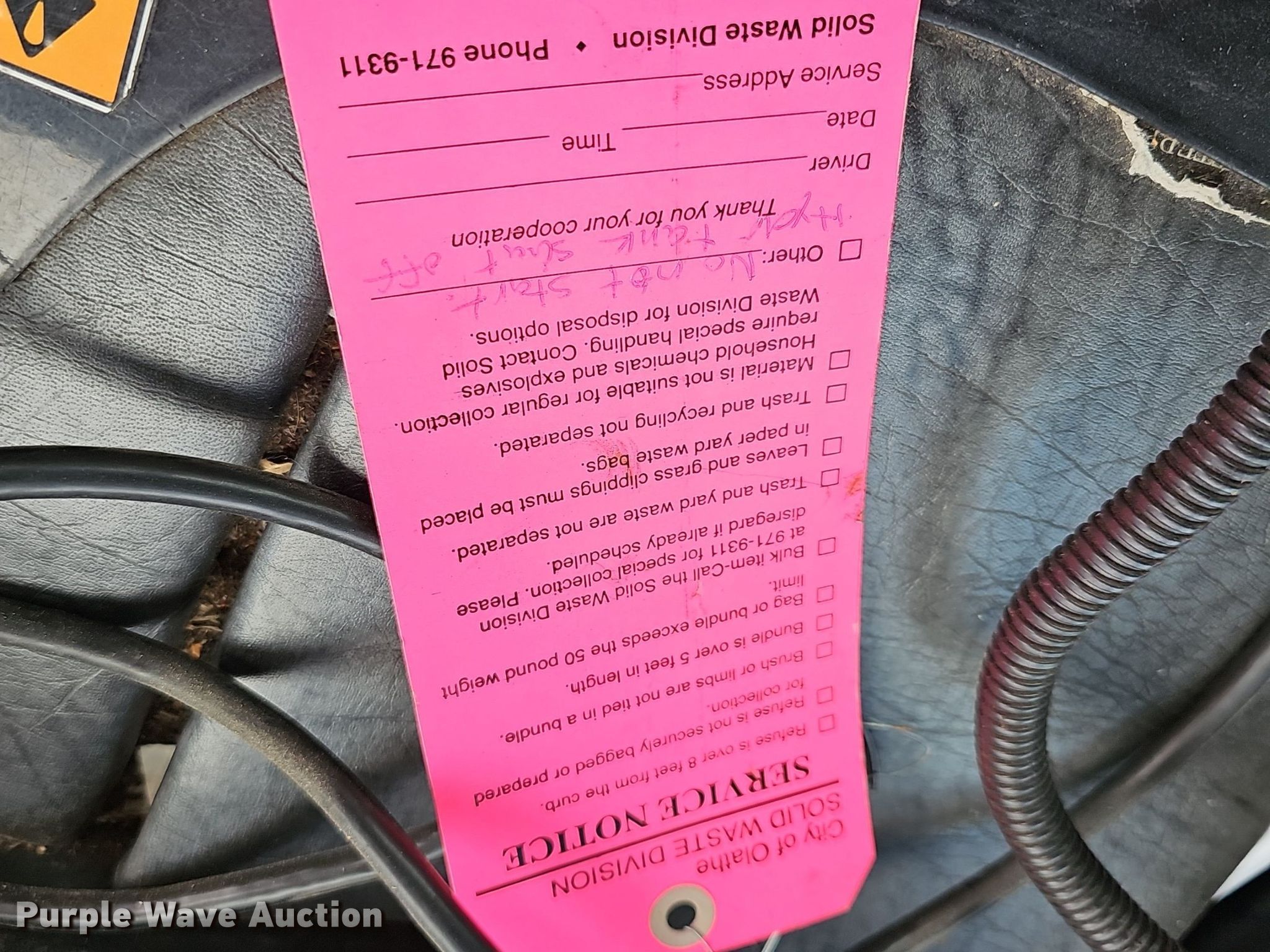 2015 Mack LEU633 refuse truck. Hours: 3,551 on meter, Miles: Unknown, VIN: 1M2AU14C9FM002331, Unit #: 1910. Engine Displacement: 8.9L, Cylinders: 6, Fuel type: CNG. Transmission Allison, Automatic. Chassis Axles: Tandem, Suspension: Spring over walking beam, Brakes: Air, PTO, GVWR: 29,938 lbs, Wheelbase: 228". Interior Heated mirrors, Cruise control. Features Refuse bed New Way 31ASL, Serial: 12367A0514, Load: Side. Tires Front: 315/80R22.5, Rear: 11R22.5. Notes Non-operational hydraulics, blown, Possible radiator issues, leaks, Dead battery, Unit must be towed or hauled, Non-operational unit. Kansas title. City of Olathe. Olathe, KS 66061