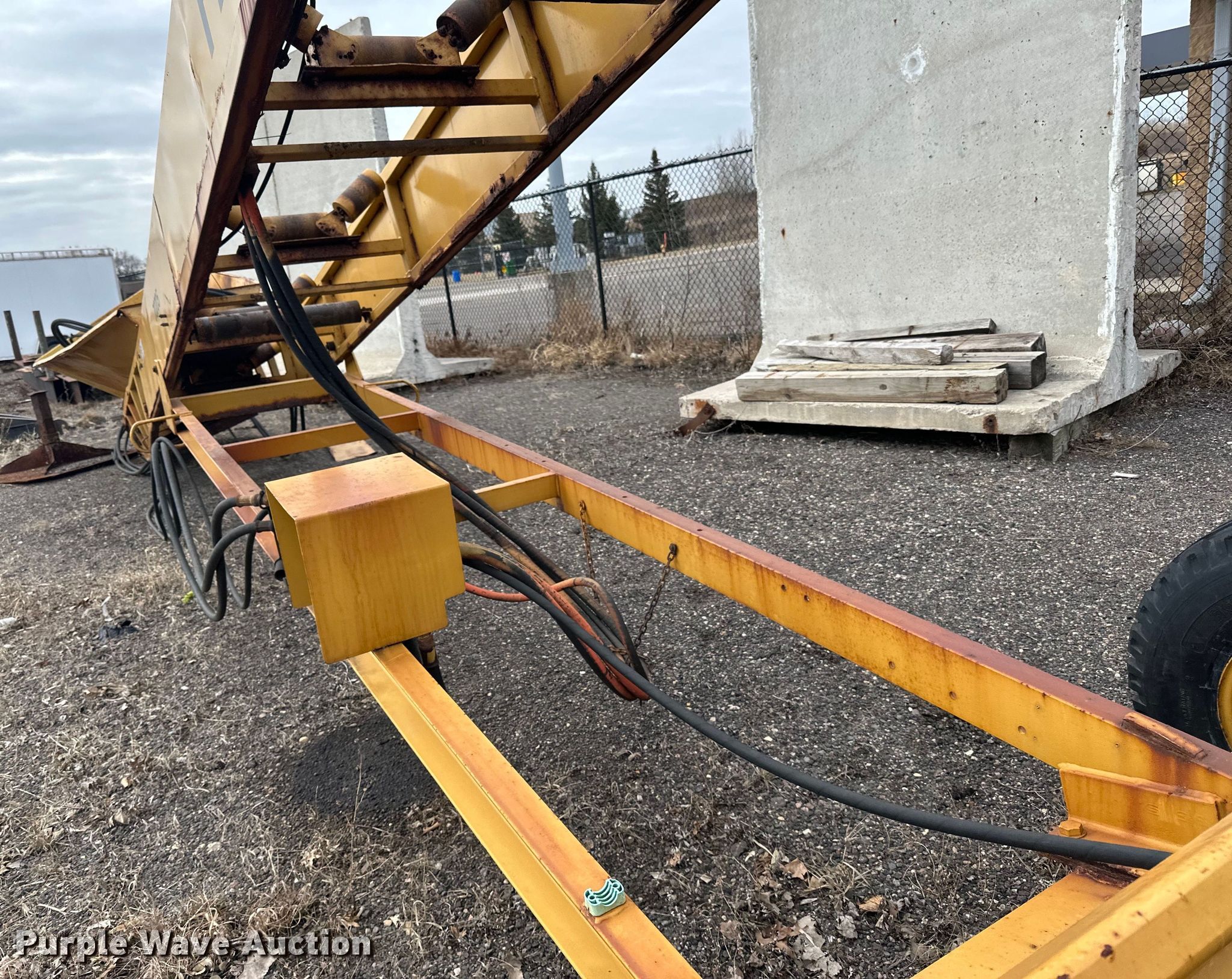 1995 Finlay 524 conveyor. Serial: A451003. Features Conveyor Length: 50', Width: 2', Hydraulic lift, Screen Length: 7', Width: 3'. Tires Tire size: 12.5/80-15.3. Notes Hydraulic driven, Belt missing, Unit must be hauled , Non-operational unit. Ramsey County, MN. 1425 Paul Kirkwold Drive. Arden Hills, MN 55112