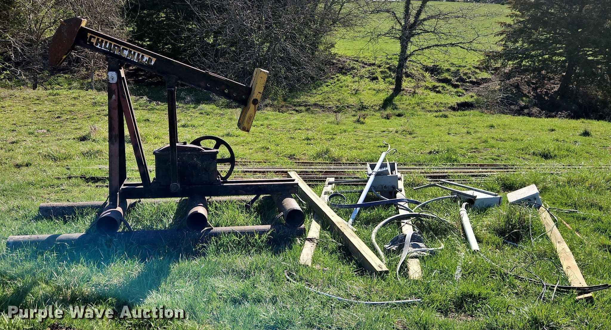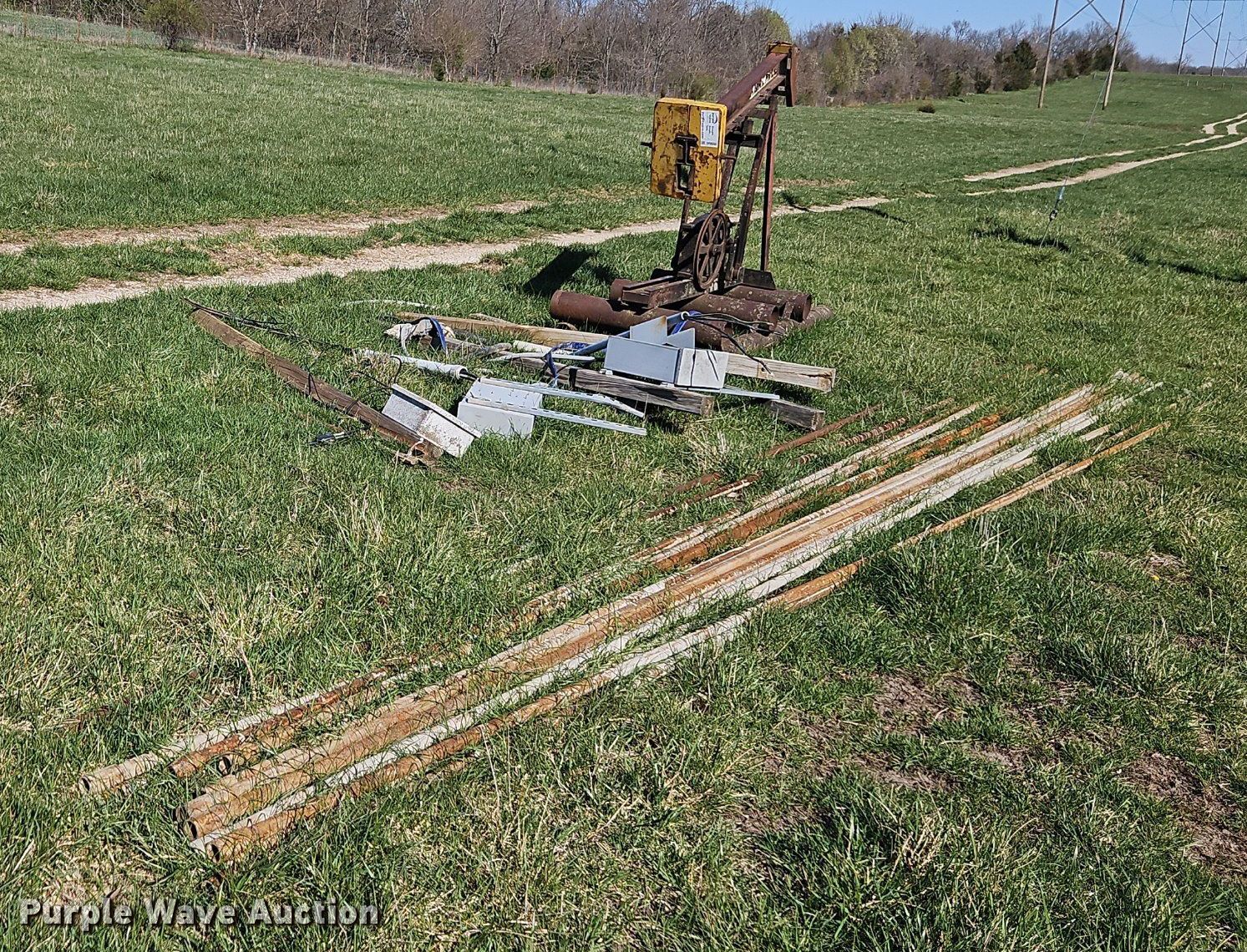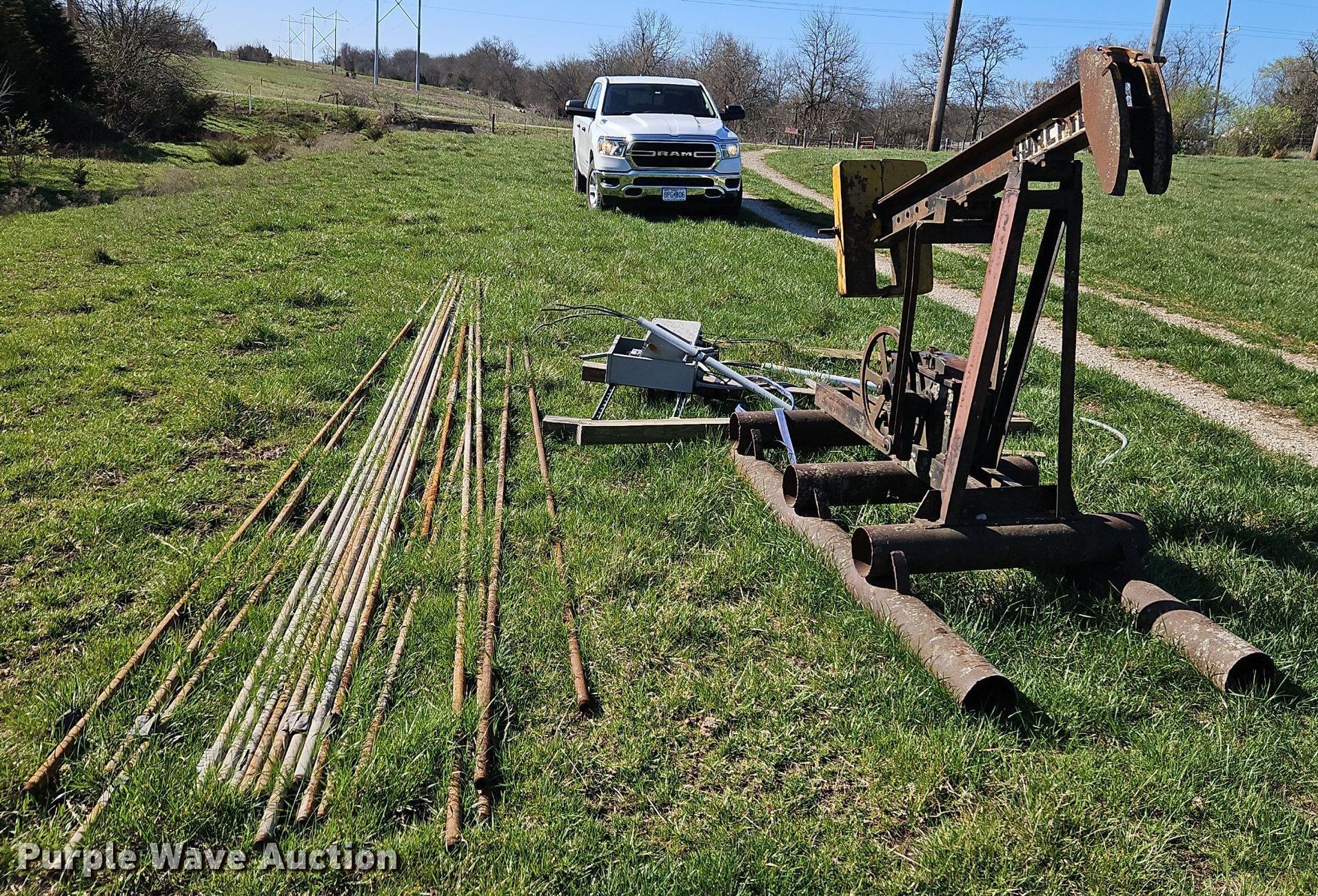 Purple Wave is selling a used Oilfield Equip. in Kansas. This item is a Oilfield equipment with the following: Unit #: 2023FP3-01 - Markle, Churchill jack, Approx. 18 joints of 25' L x 1" diameter pipe, Down whole pump, (3) disconnects, (4) wood posts
