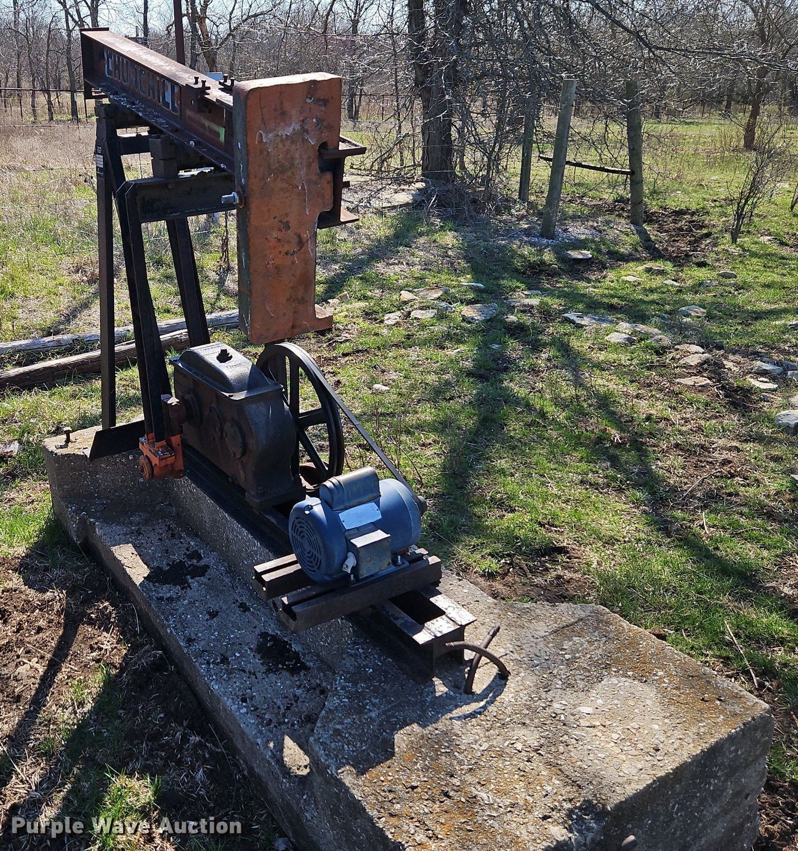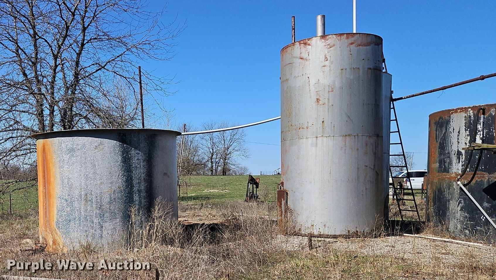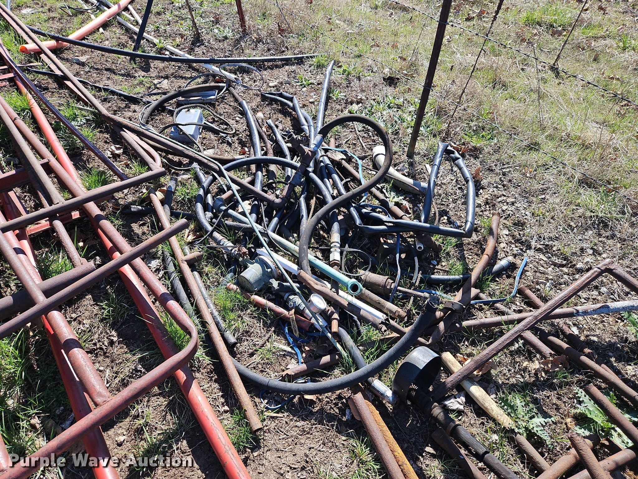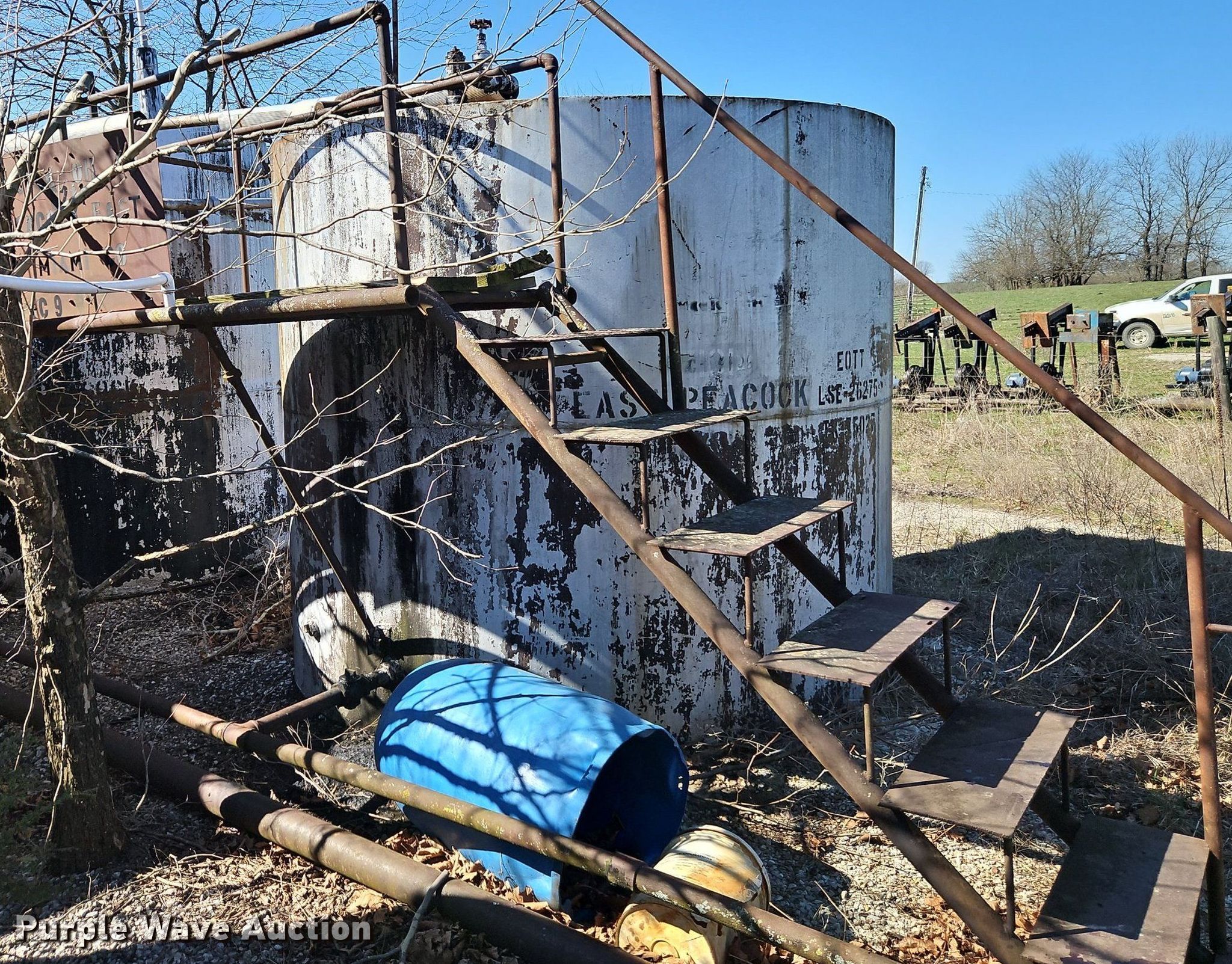 Purple Wave is selling a used Oilfield Equip. in Kansas. This item is a Oilfield equipment with the following: (10) pump jacks, (5) Churchill, (4) have motors, (3) Cook, (2) have motors,, (6) railroad ties, (2) disconnects, Approx. 60 joints of pipe, Approx. 25' L x 1" diameter, Approx. 44 joints of 1" pipe, Plumbing, Pipe, Poly, PVC, (7) pipe panels, Approx. 12 wire fence panels, 12' x 10' tank, Capacity: 200 BBL, (3) approx. 100 BBL tanks, (2) approx. 60 BB gun barrel tanks, Fiberglass tank, Capacity: Approx. 100 BBL, Unit #: 2023FP3-01 - Peacock