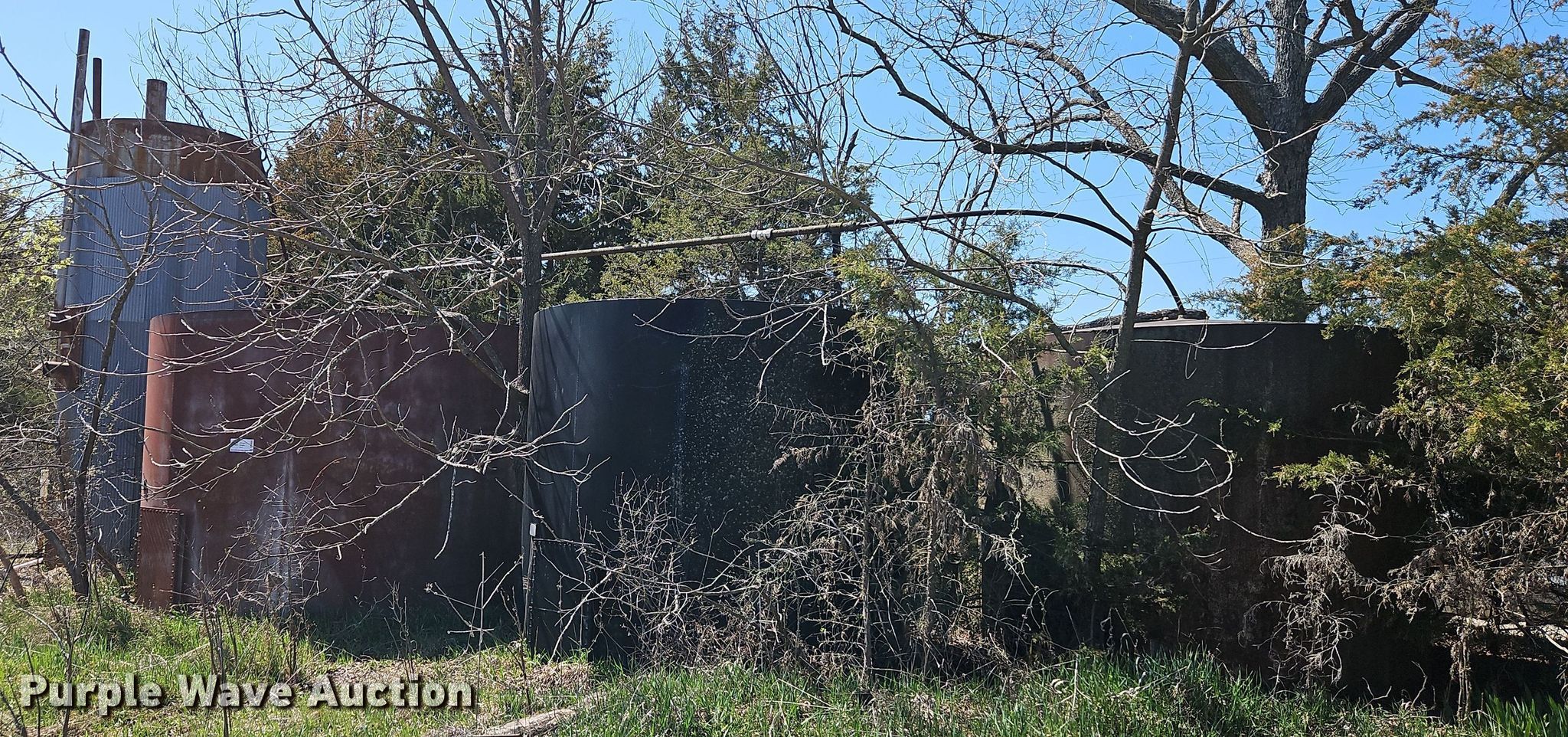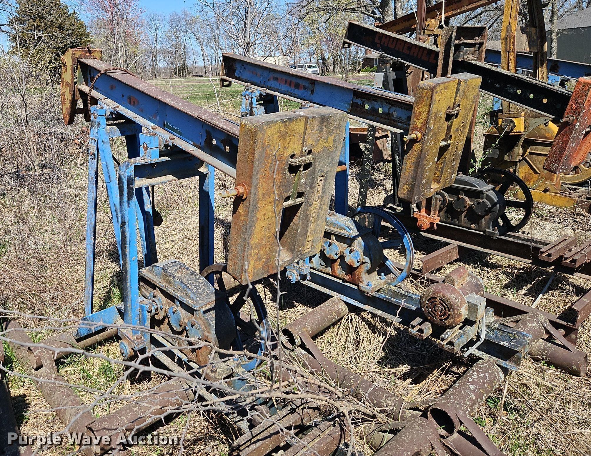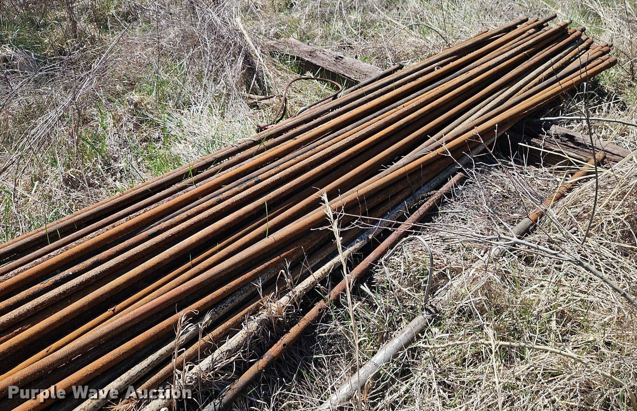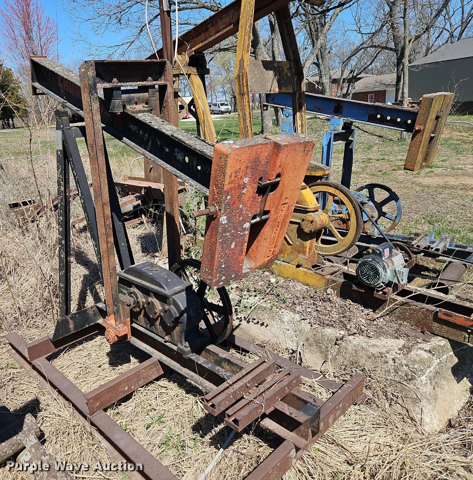 Purple Wave is selling a used Oilfield Equip. in Kansas. This item is a Oilfield equipment with the following: (8) pump jacks, (4) have motors, (2) railroad ties, Disconnect, Approx. 57 joints of pipe, Approx. 25' L x 1" diameter, (3) down hole pumps, Tank, Size: 12' x 8', Capacity: 161 BBL, Tank, Size: 9 1/2' x 8', Capacity: 100 BBL, Gun barrel tank, Capacity: Approx. 60 BBL, Unit #: 2023FP3-01 - Troutman