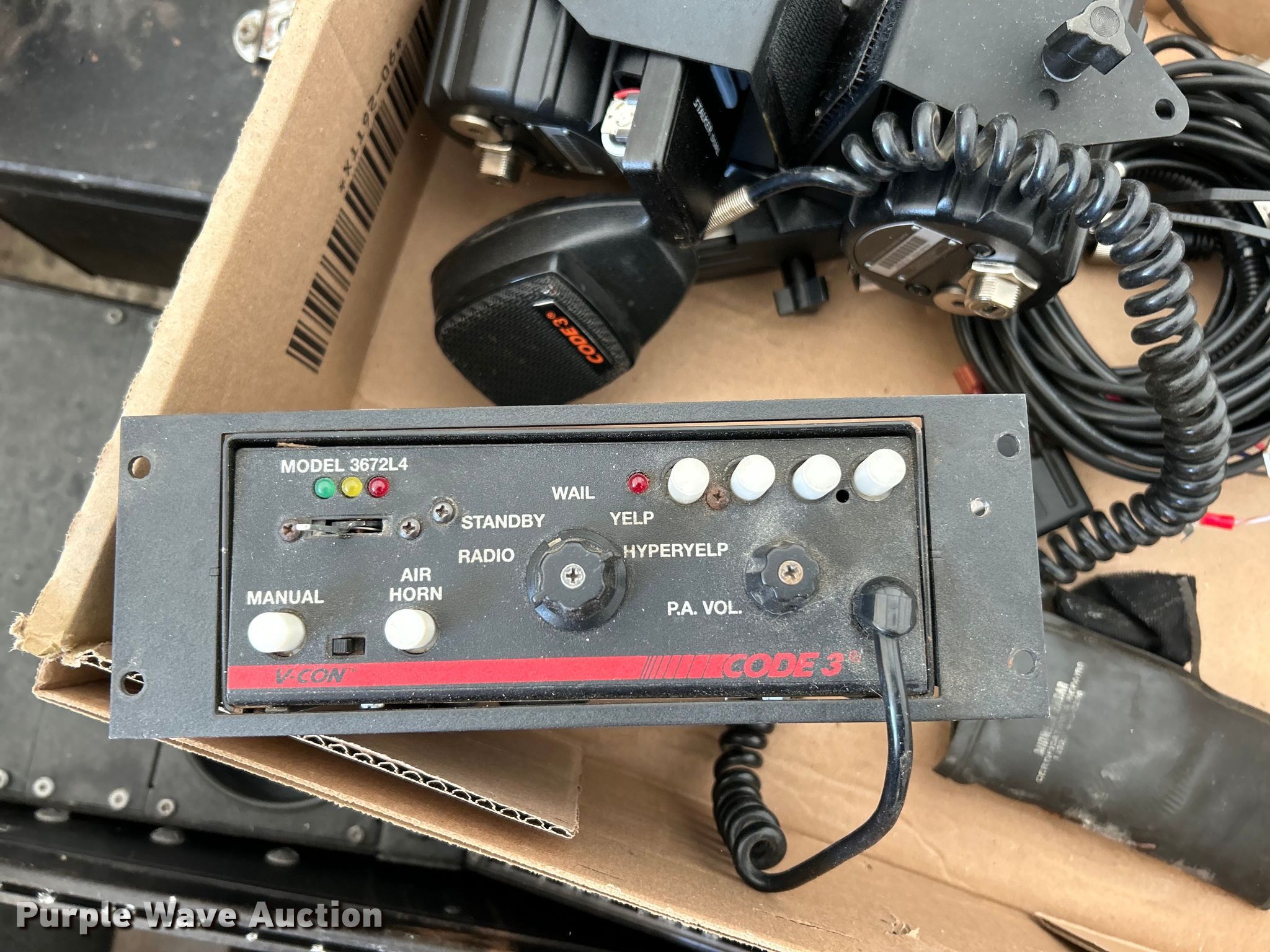 Purple Wave is selling a used Automotive Parts or Acces. in Missouri. This item is a Police equipment with the following: Pro-gard cage parts, Removed from Dodge Charger, Dodge charger door panels, Gun racks, Center consoles, (4) removed from Dodge chargers, (2) removed from Chevrolet Tahoes, Siren controls, Code 3, Whelen, Light bars, visor lights, grill lights