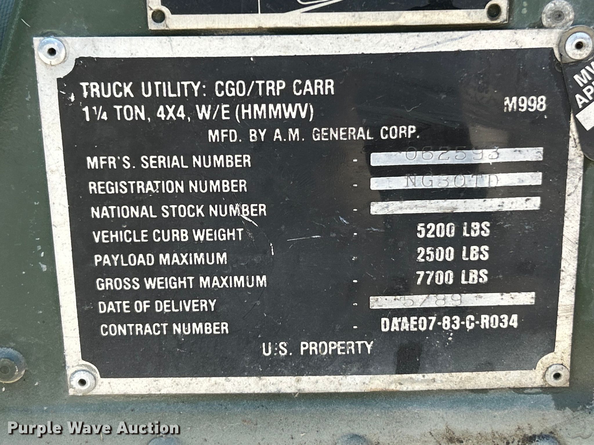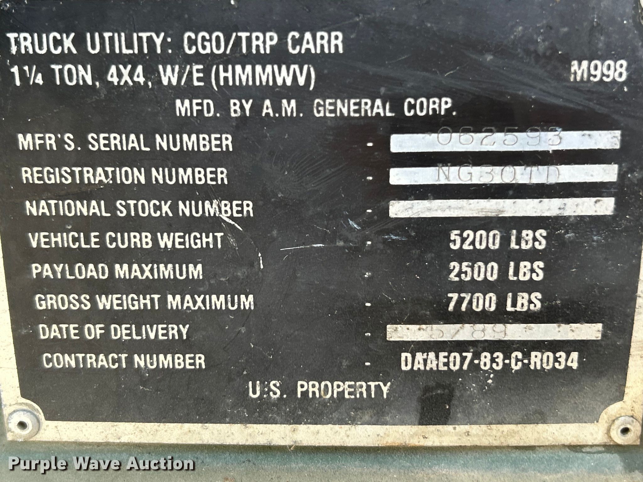 Purple Wave is selling a used Passenger Vehicle in Illinois. This item is a 1989 AM General Humvee SUV with the following: Miles: 24,961 on odometer, VIN: 062593