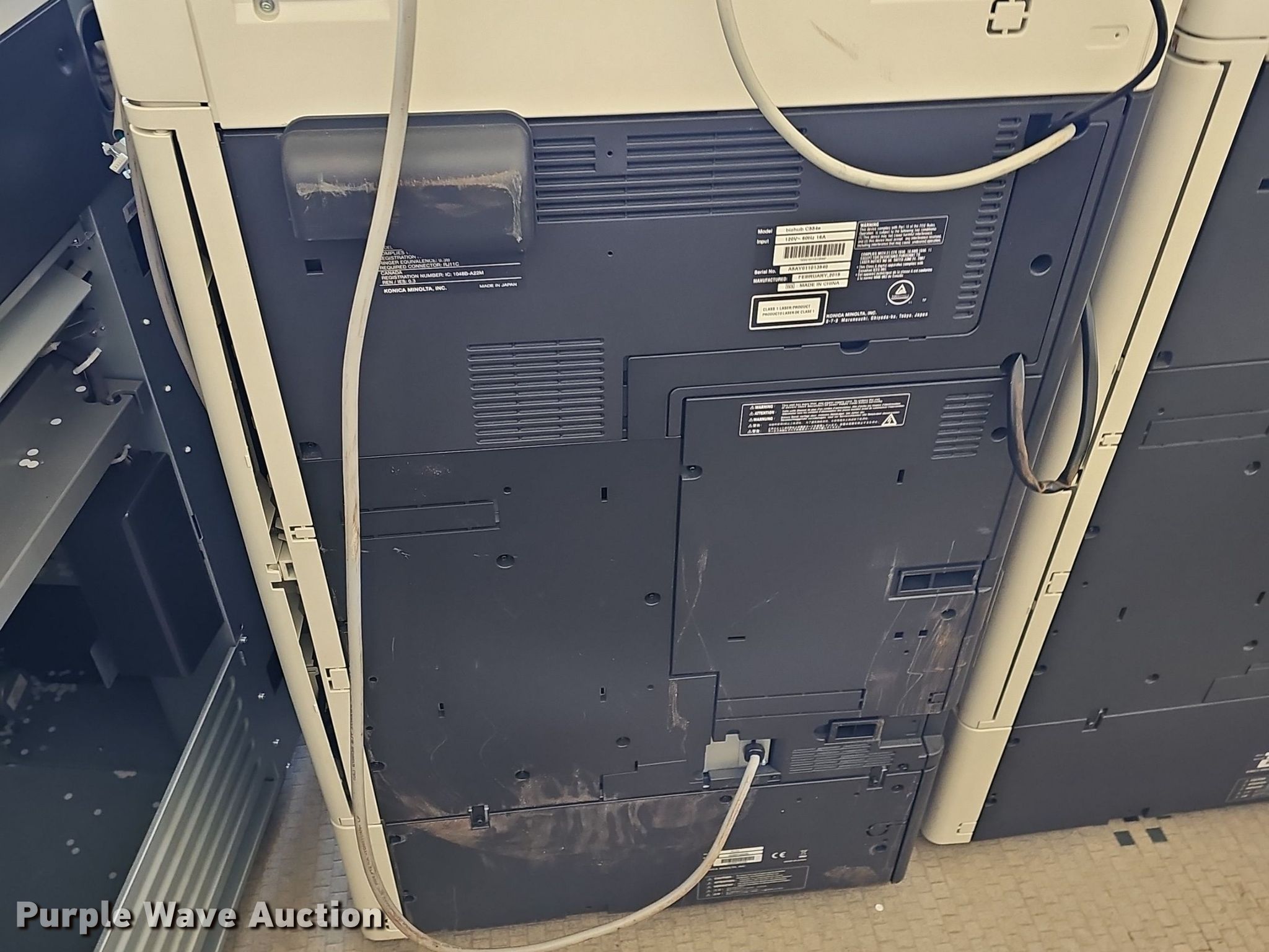 Purple Wave is selling a used Electronics in Kansas. This item is a (2) 2015 Konica Minolta copiers with the following: Models: bizhub C454, bizhub C554e, Volts: 120, Additional toners