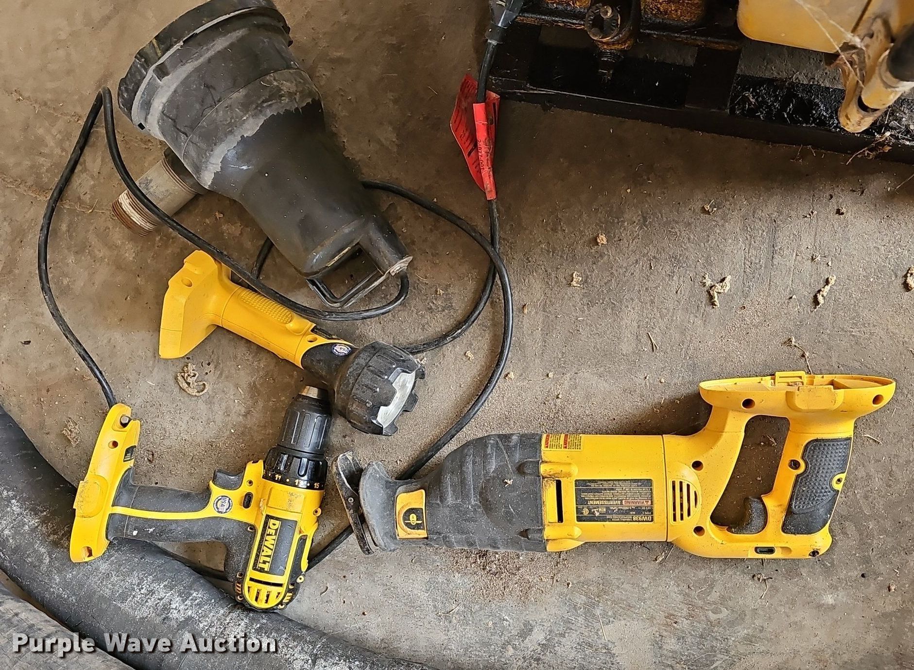 Tools. Koehring Master Mark 70 trash pump Serial: 0028291, Briggs & Stratton gas engine, HP: 9, Approx. 20'-25' suction hoses, DeWalt tools Reciprocating tools, Drill, Flashlight, No batteries, (2) hydraulic hoses, Hydraulic oil reservoir tank. Notes Unknown operating condition. Havensville, KS 66432