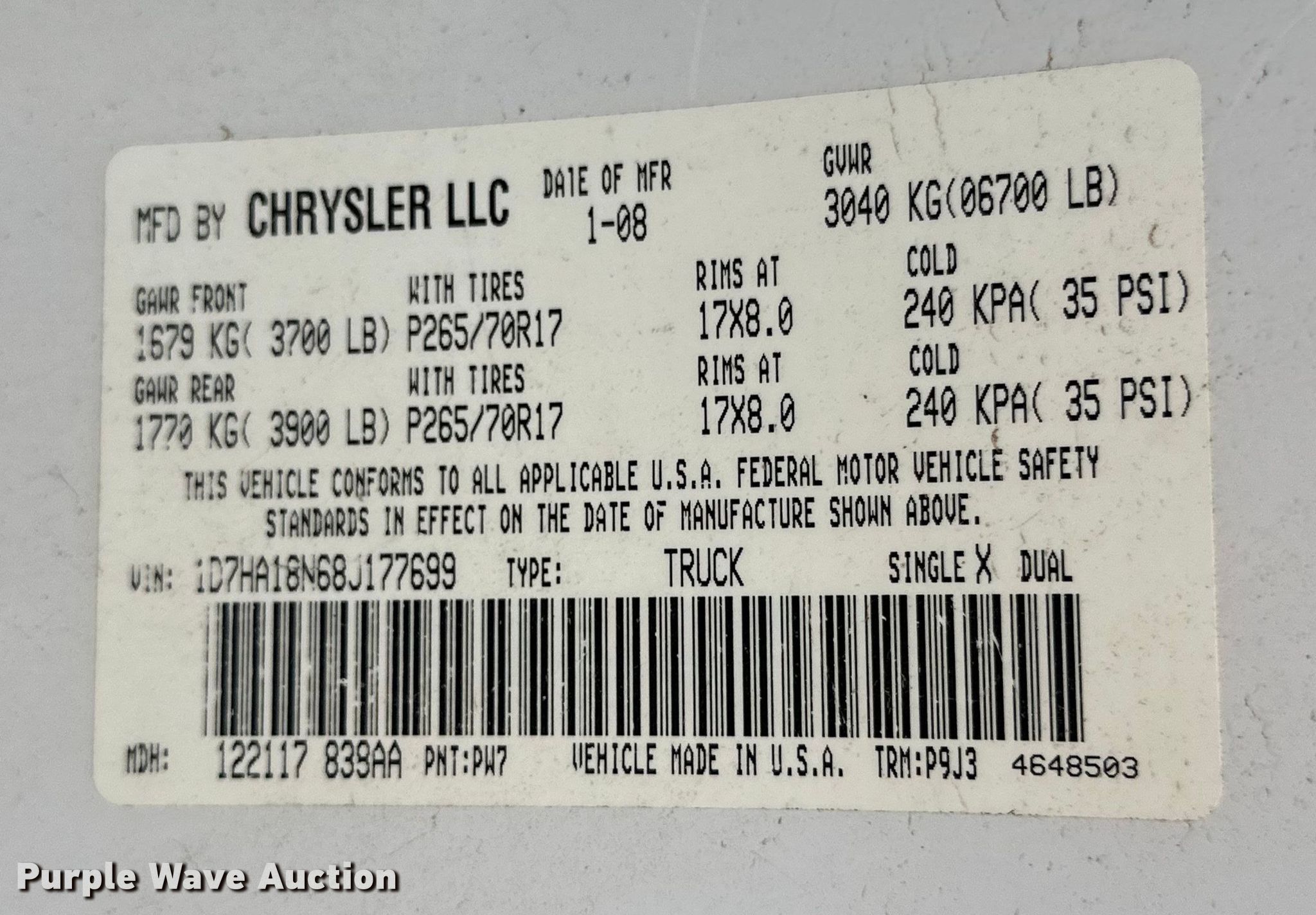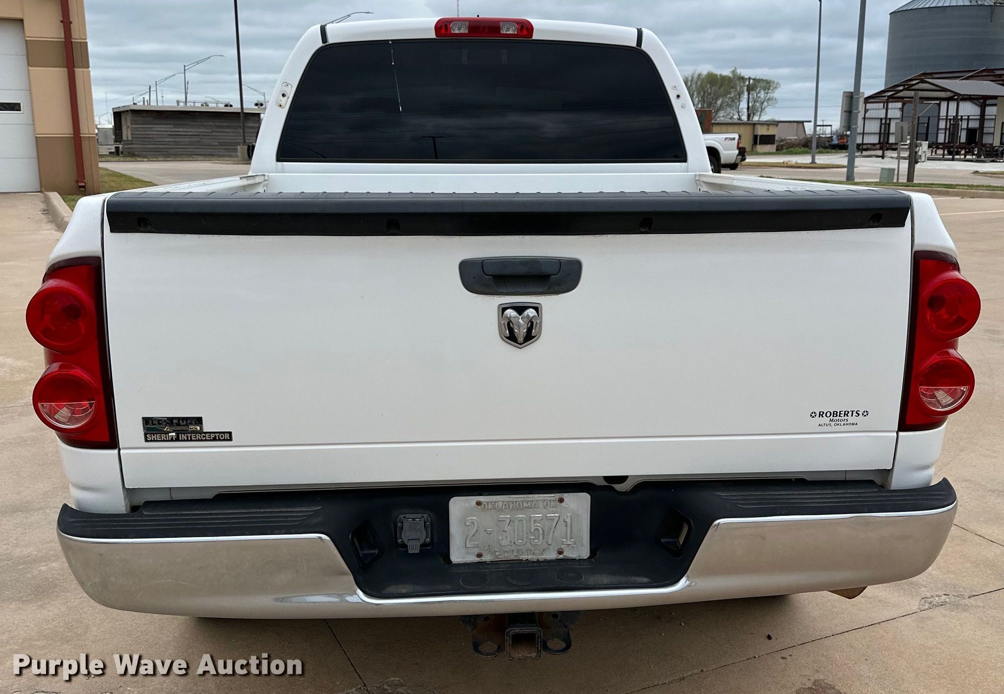 2008 Dodge Ram 1500 Quad Cab pickup truck. Miles: 204,872 on odometer, VIN: 1D7HA18N68J177699. Engine Displacement: 4.7L V8 SOHC, Cylinders: 8, Fuel type: Gas. Transmission Automatic. Interior AC, Heat, Heated mirrors, Power windows, Power locks, Cruise control. Tires Size: 265/70R17. Notes Windshield chipped or cracked. Oklahoma title. Title distribution may be delayed up to 14 days from verification of funds. Jackson County Sheriff Department. 600 S Main St. Altus, OK 73521