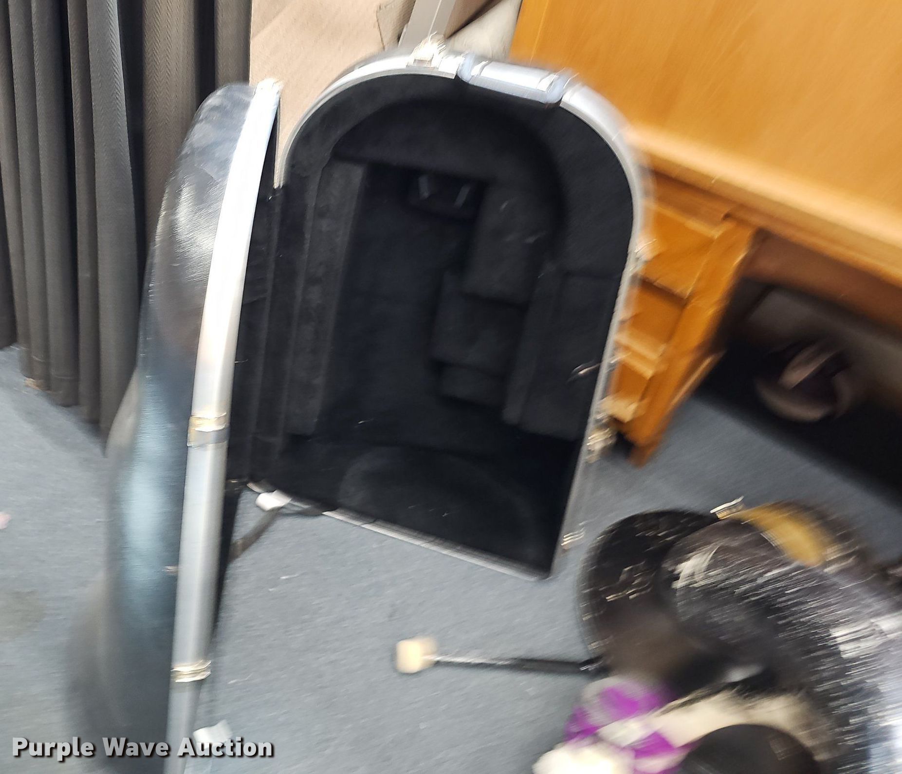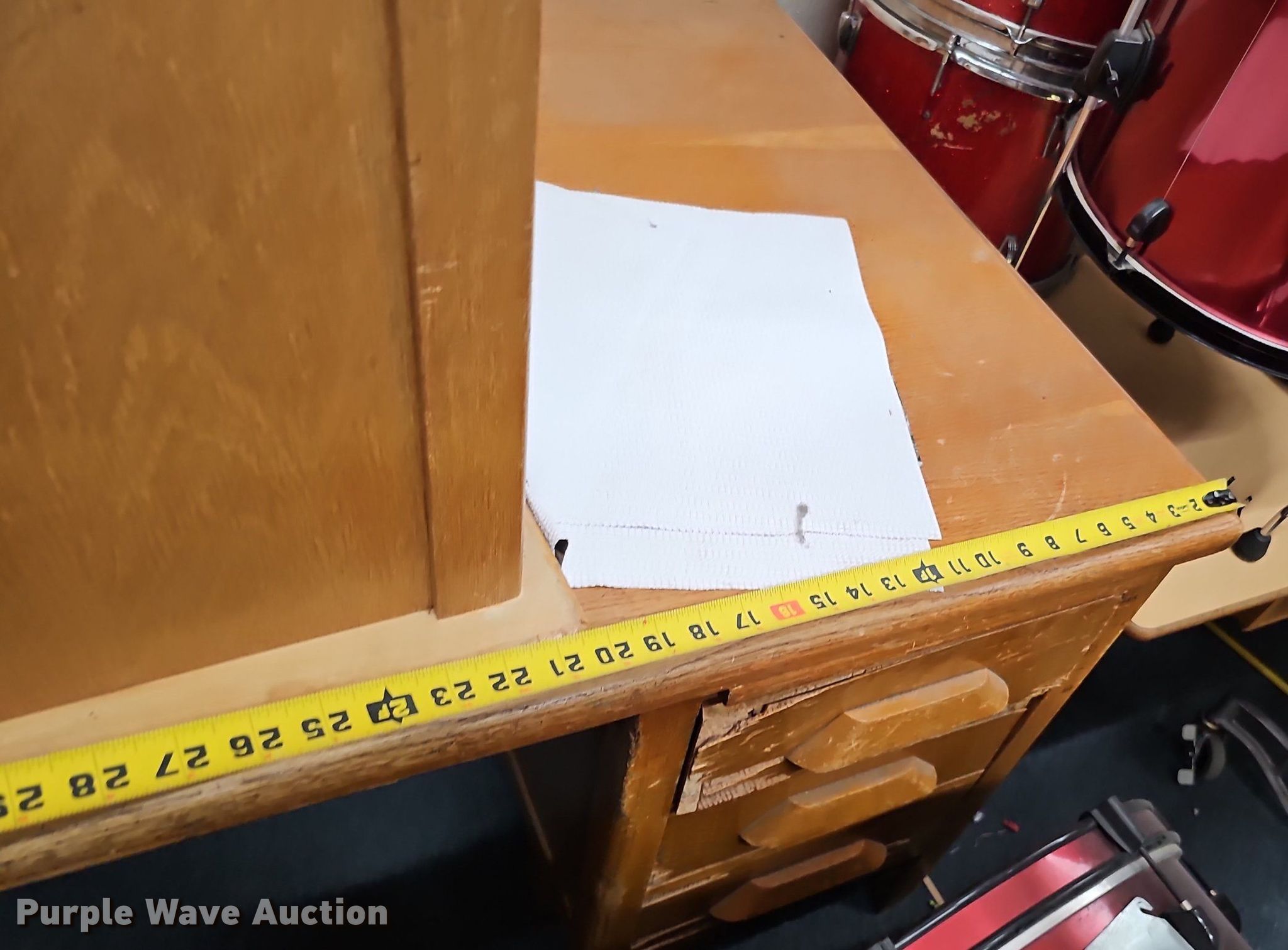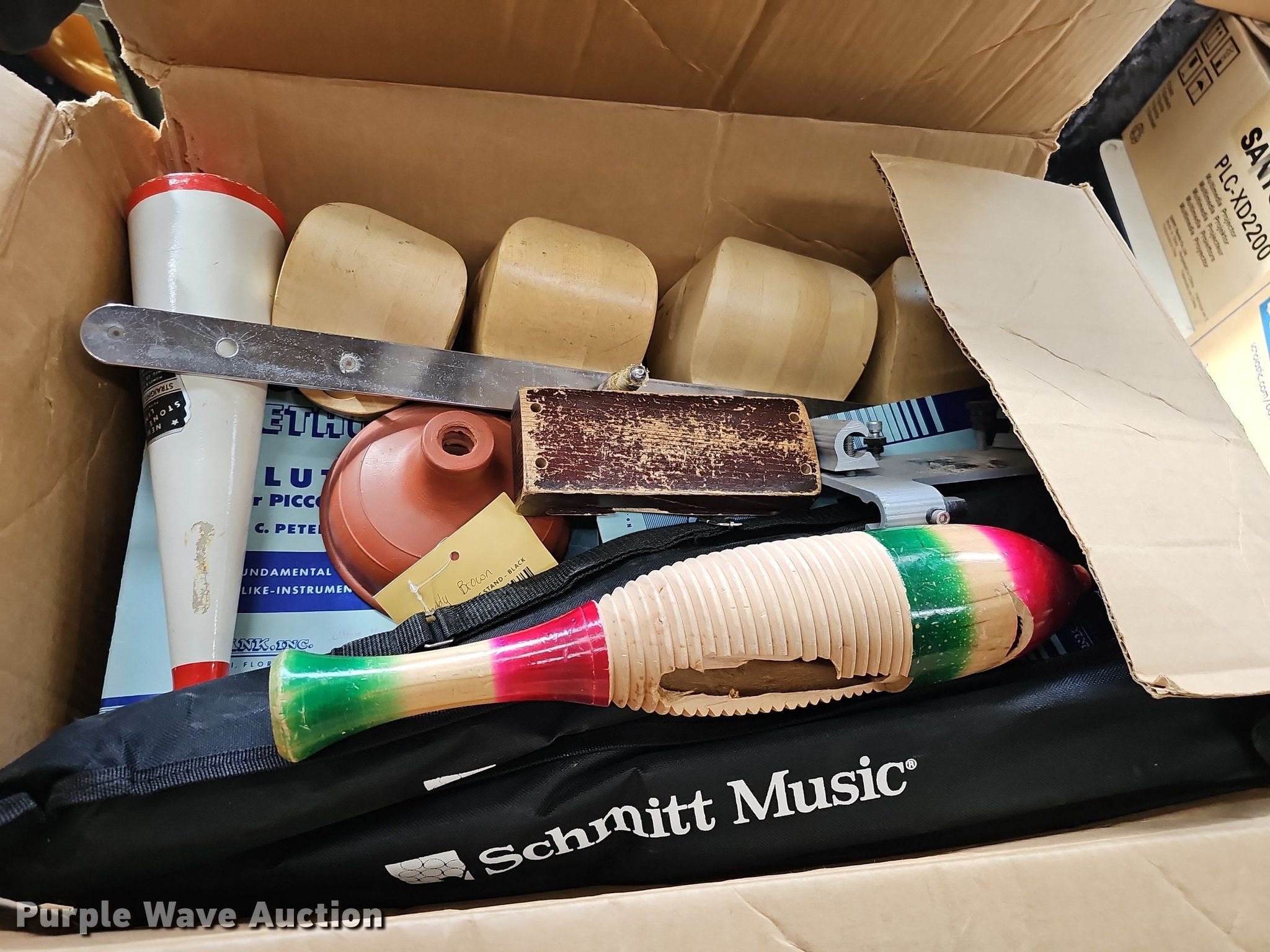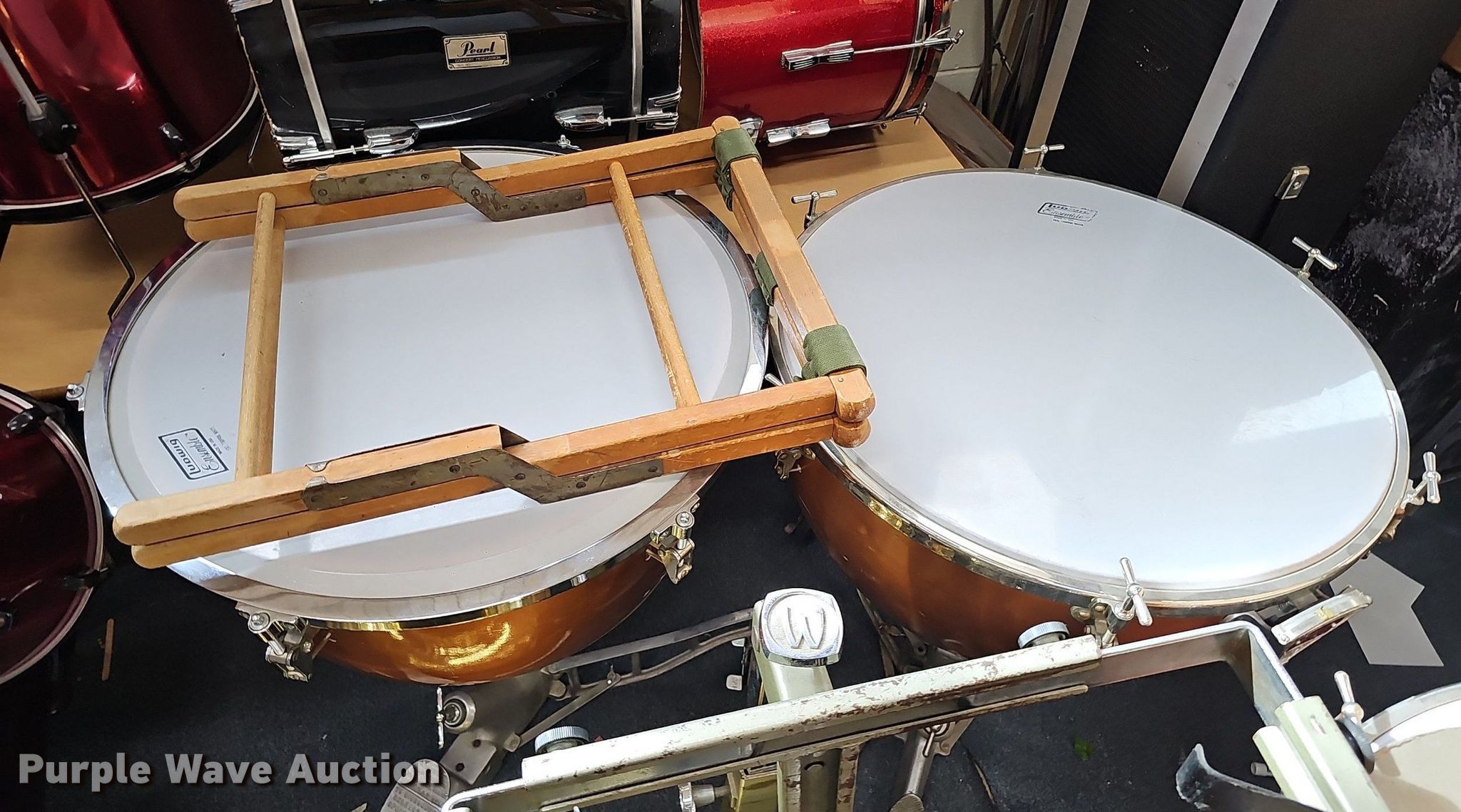 Purple Wave is selling a used Music Equip. in Iowa. This item is a Music equipment with the following: Tubas: 2, Drums: 7, Desks: 2, Peavey T300, (13) boxes of sheet music, Podium, Ball cage