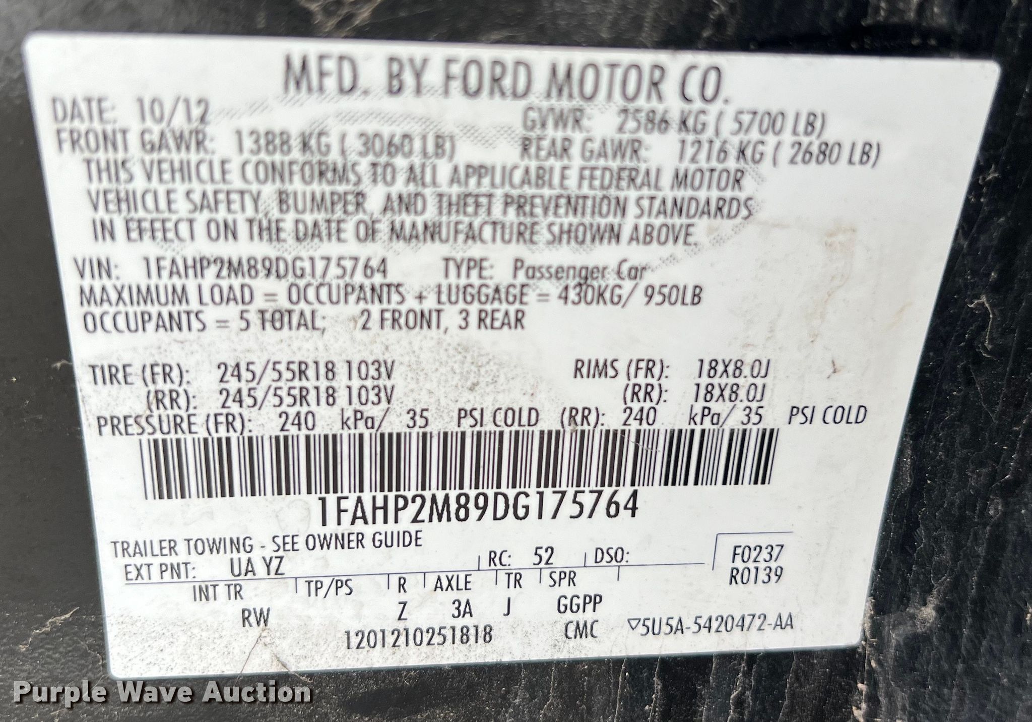 - VIN: 1FAHP2M89DG175764