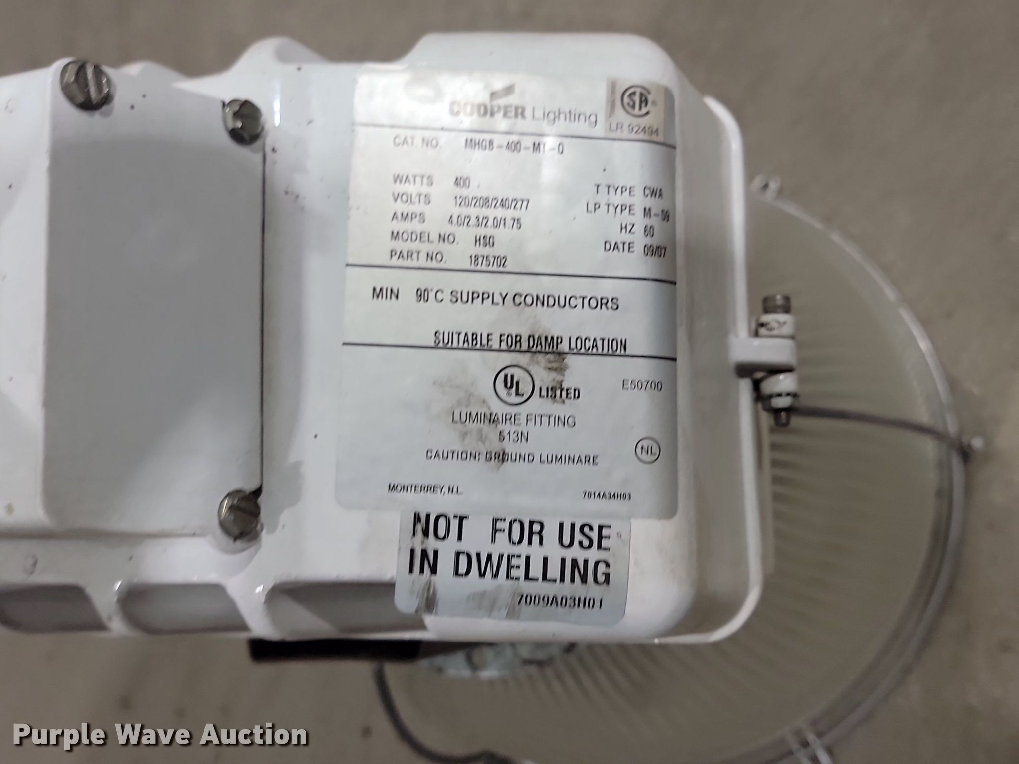 Purple Wave is selling a used Building Materials in South Dakota. This item is a (41) Cooper Lighting HSG shop lights with the following: Diameter: 16", Watts: 400, Volts: 120/208/240/277