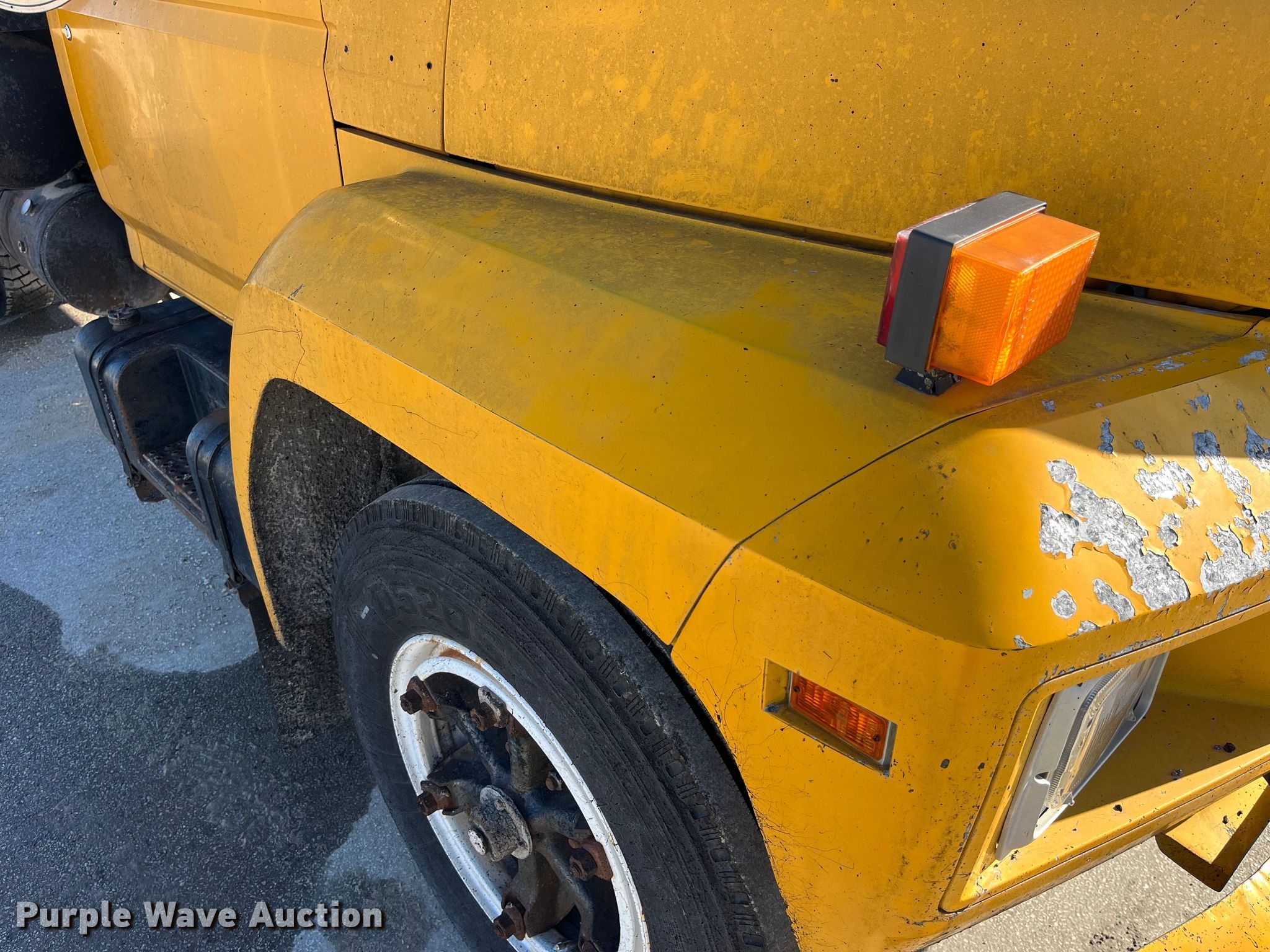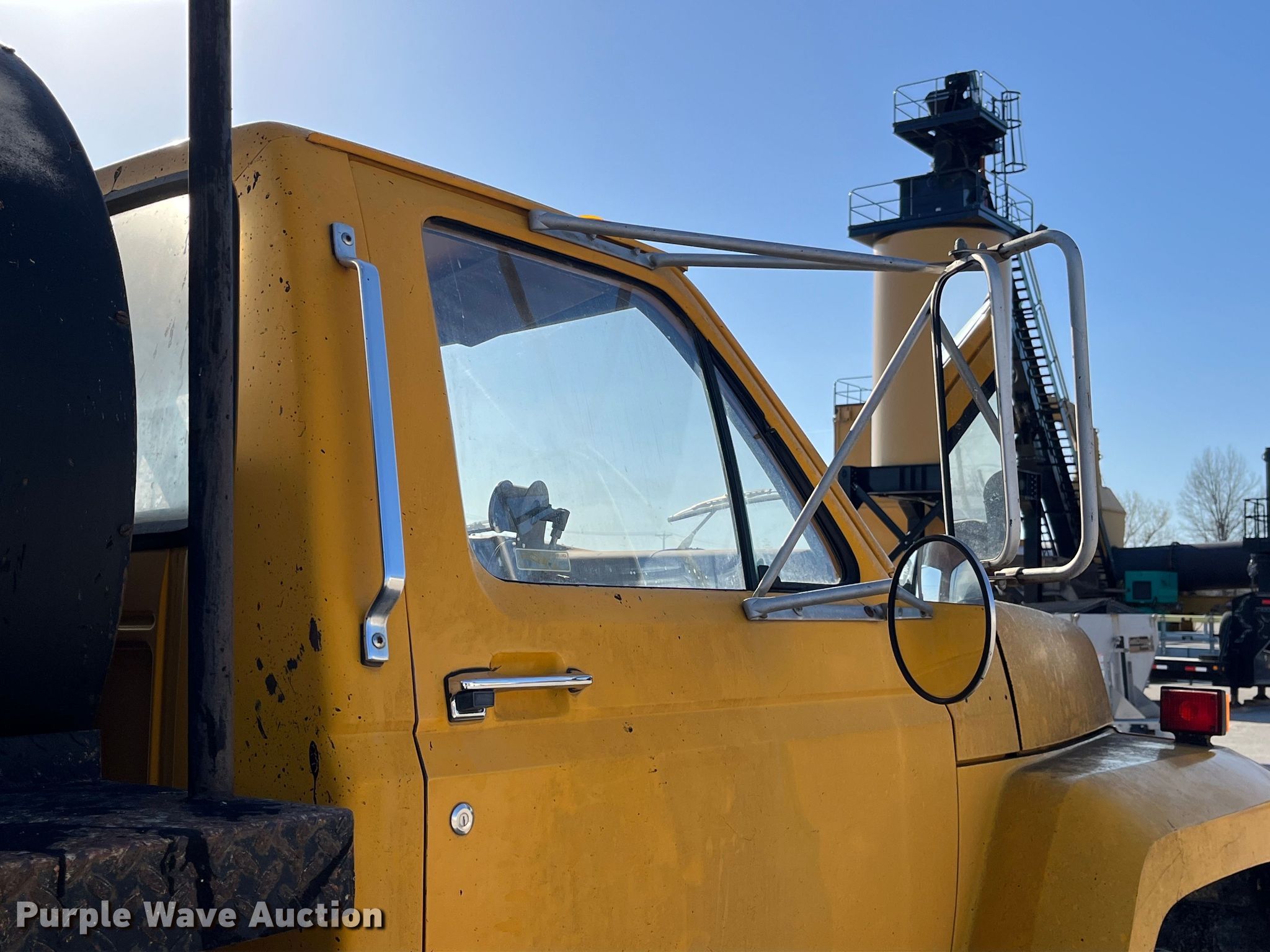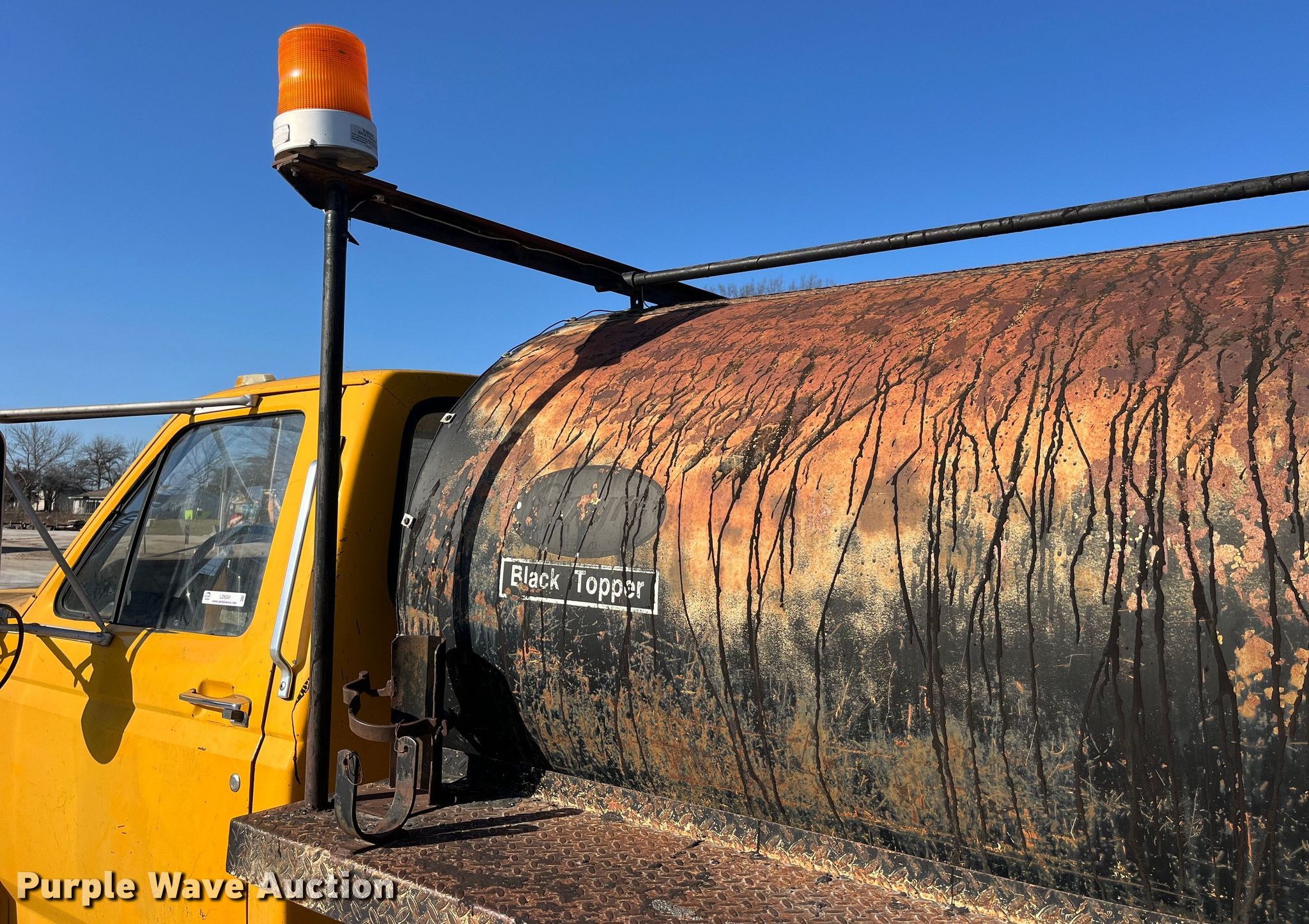 1986 Ford oil distributor truck. Miles: 83,104 on odometer, Hours: 6,780 on meter, VIN: 1FDNF82H1GVA38500. Engine Displacement: 6.1L, Cylinders: 8, Fuel type: Gas. Transmission Manual, Speed: 5, plus 2. Chassis Axles: Single, Suspension: Spring, Brakes: Hydraulic, PTO, Wet kit, GVWR: 25,000 lbs, Wheelbase: 171". Interior Heat. Features Bed/tank Etnyre BX-HS, Serial: J-8777, Capacity: 1,086 gallons, 125" L x 68.5" W, Burner: LPG, In-cab controls, Width: 12', Folding, Nozzles: 34. Tires Front: 295/75R22.5, Rear: 9.00R20. Notes Exhaust issues, smokes. Missouri title. Seller is a government entity who will be assigning and distributing the title. Please contact the seller for distribution questions. Title distribution may be delayed up to 14 days from verification of funds. City of Trenton, MO. 1900 16th st. Trenton, MO 64683
