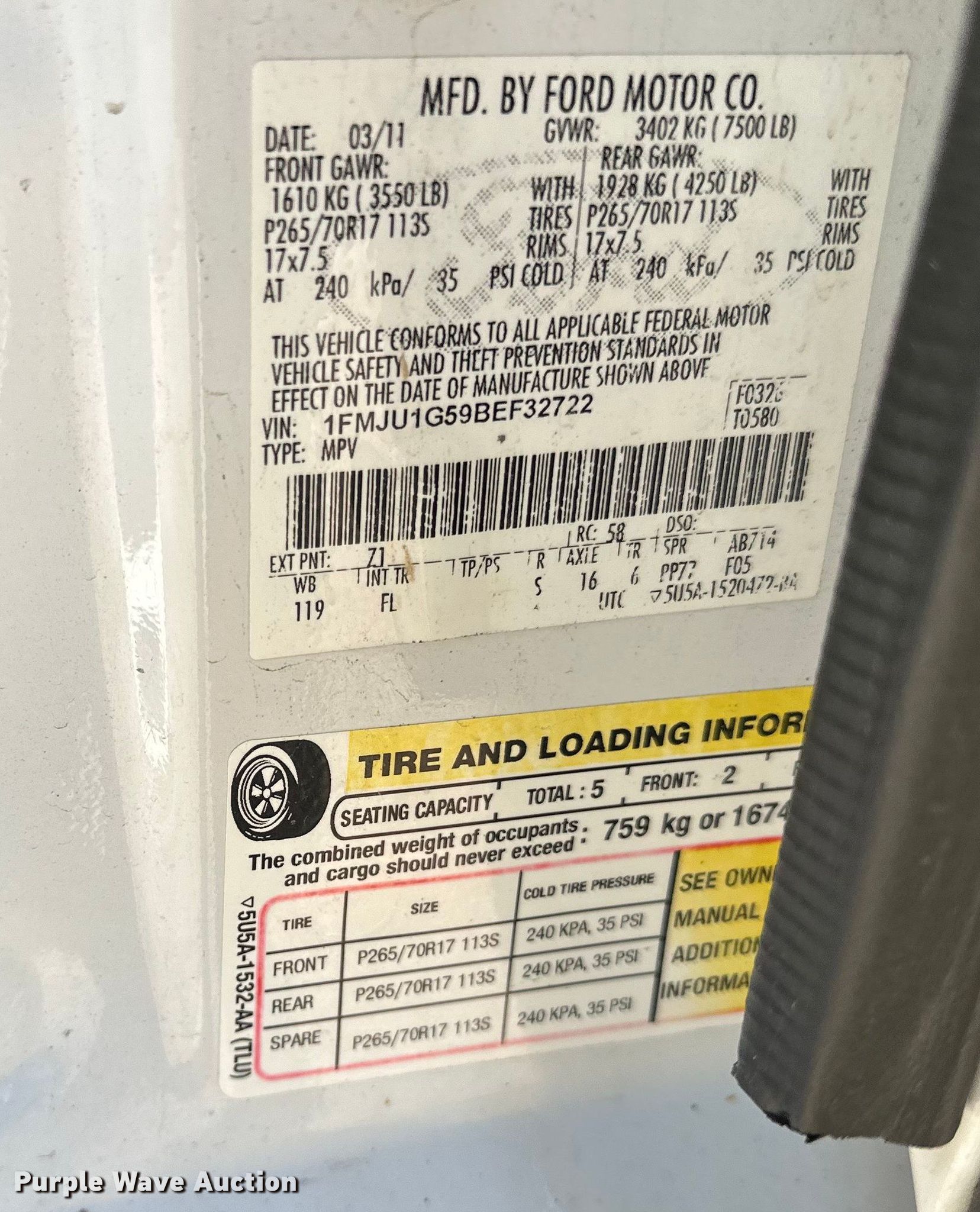 - VIN: 1FMJU1G59BEF32722