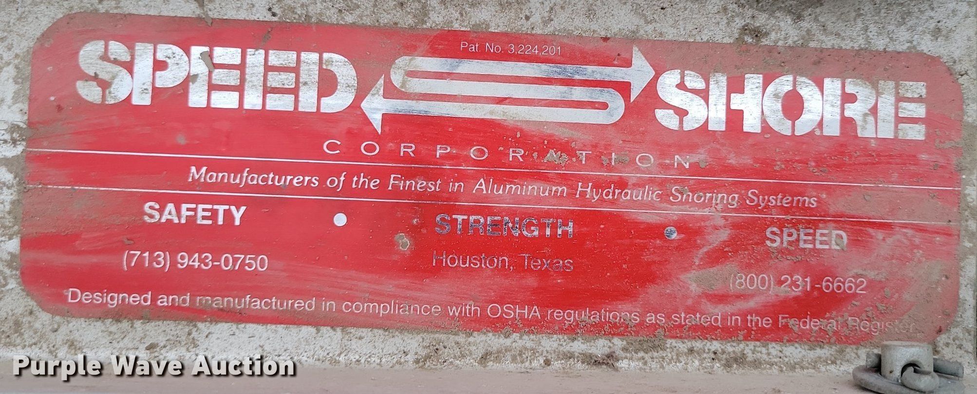 Purple Wave is selling a used Underground Safety or Shoring in Missouri. This item is a Speed Shore hydraulic shoring system with the following: Hydraulic pump