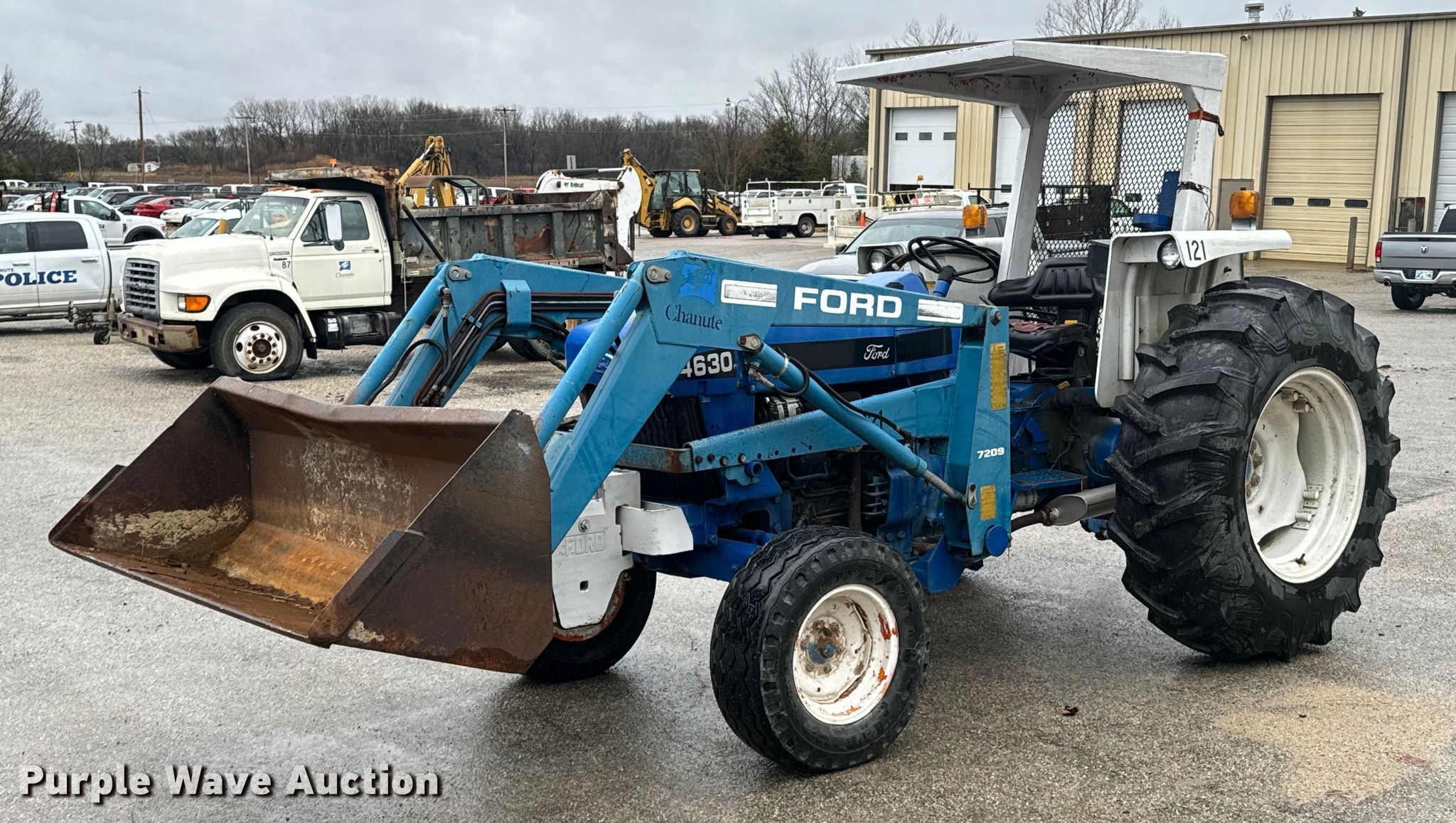 1990 Ford 4630 tractor. Hours: 2,321 on meter, Serial: BC54745. Engine Cylinders: 4, Fuel type: Diesel. Transmission Dual power, 8F - 8R. Features PTO: 540, Three point, Hydraulic remote sets Rear: 3, Loader Ford 7209, Controls: Two-lever, Bucket Width: 72".. Tires Front: 11L-16SL, Rear: 16.9-30. Notes Loader hydraulic leak. City of Chanute, KS. Chanute, KS 66720