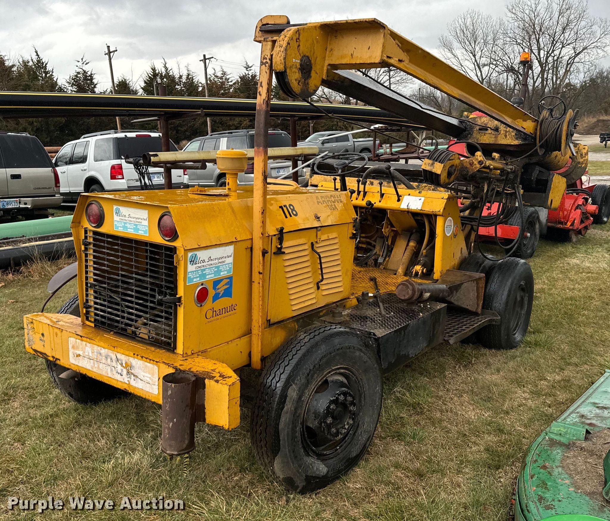 1979 Arrow HJ1250 drop hammer. Hours: 785 on meter, Serial: HJ1250335. Engine John Deere, Cylinders: 4, Fuel type: Diesel. Transmission Manual. Features Side shift, Mast tilt. Tires Size: 7.50-16LT. City of Chanute, KS. Chanute, KS 66720