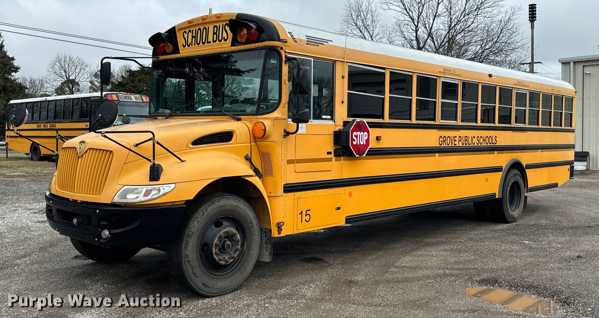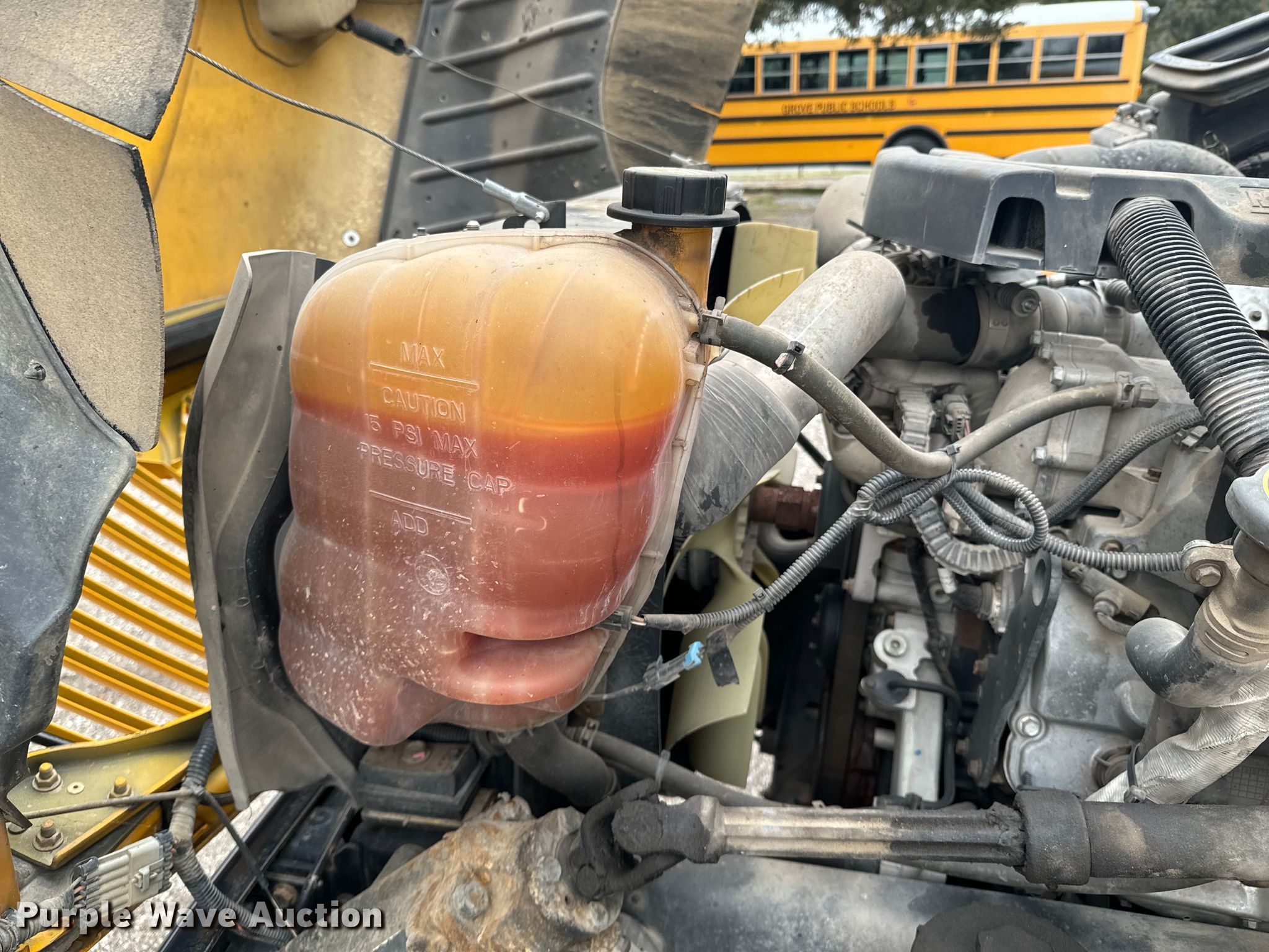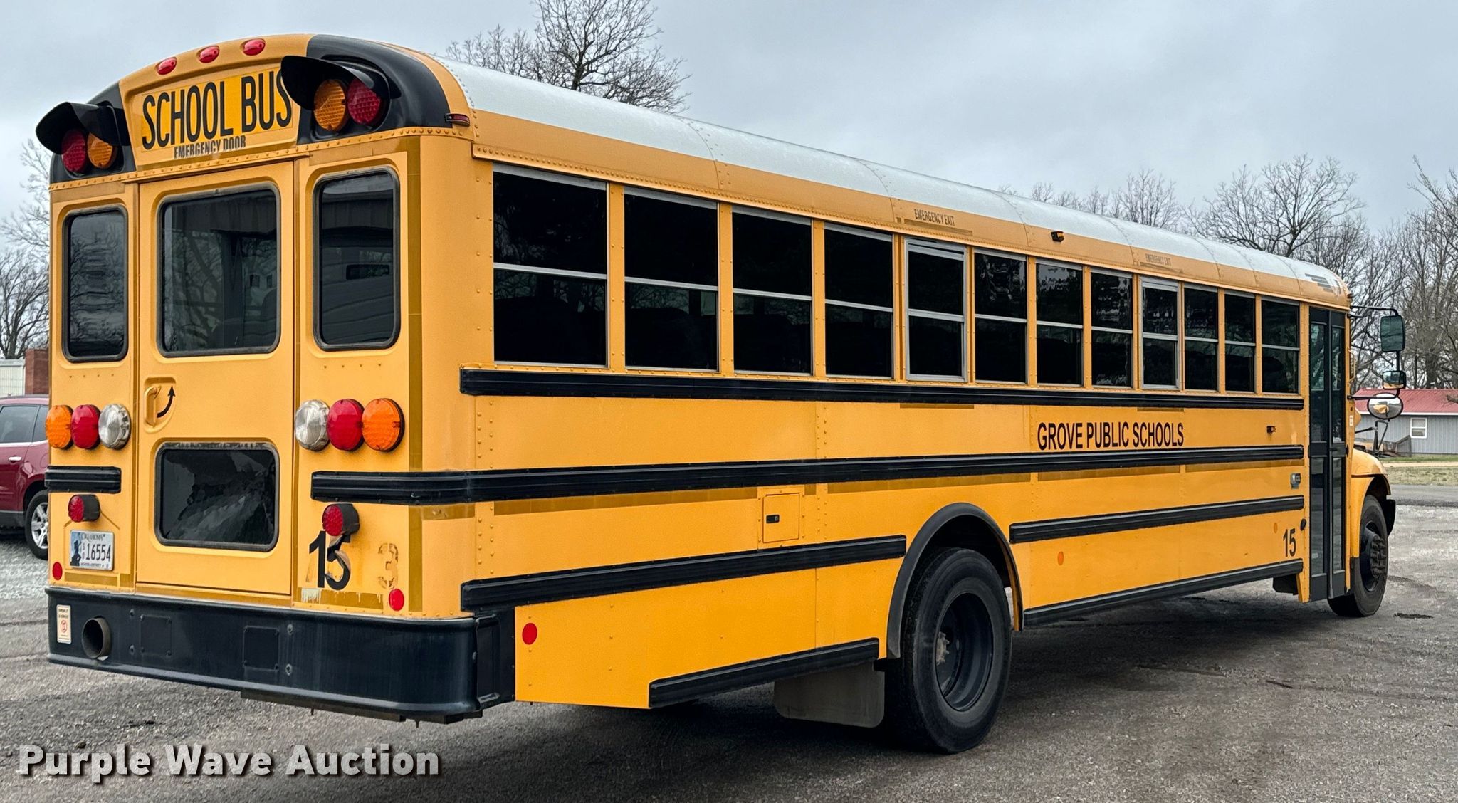 2015 International CE school bus. Miles: 56,424 on odometer, VIN: 4DRBUSKP8FB027779. Engine International MaxxForce 7, Displacement: 6.4L, Cylinders: 8, Fuel type: Diesel. Transmission Automatic. Chassis Axles: Single, Suspension: Spring, Brakes: Hydraulic, GVWR: 29,800 lbs. Interior Heat, Heated mirrors, Cruise control, Auxiliary controls, Adult seats: 24. Tires Size: 11R22.5. Oklahoma title. Title distribution may be delayed up to 30 days from verification of funds. Grove Public Schools. Grove, OK 74344