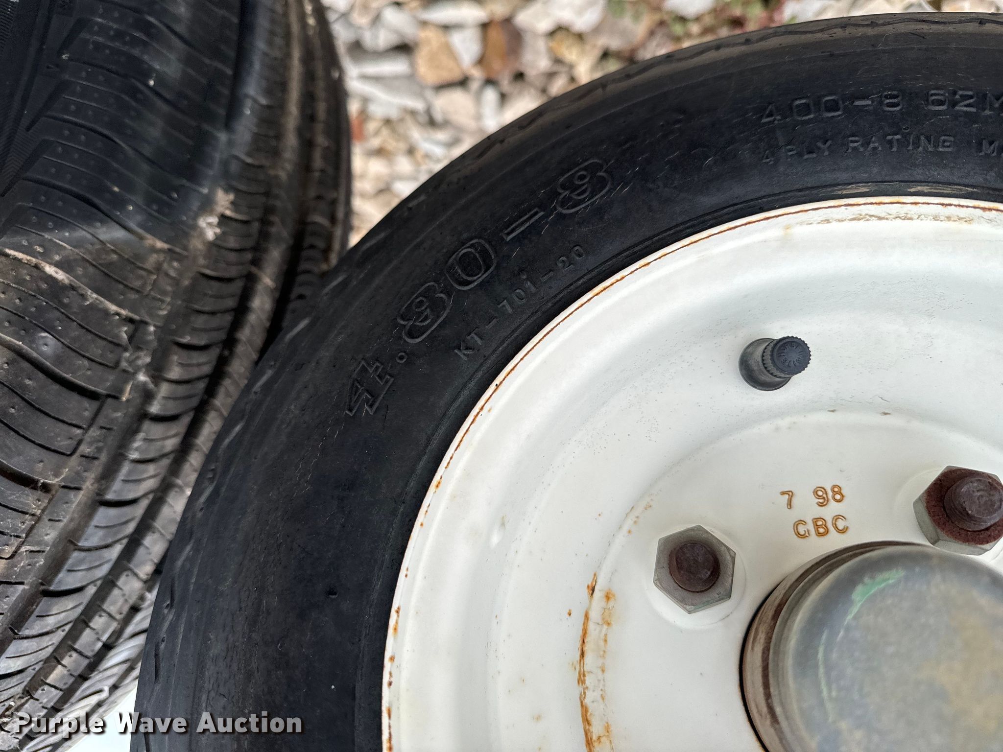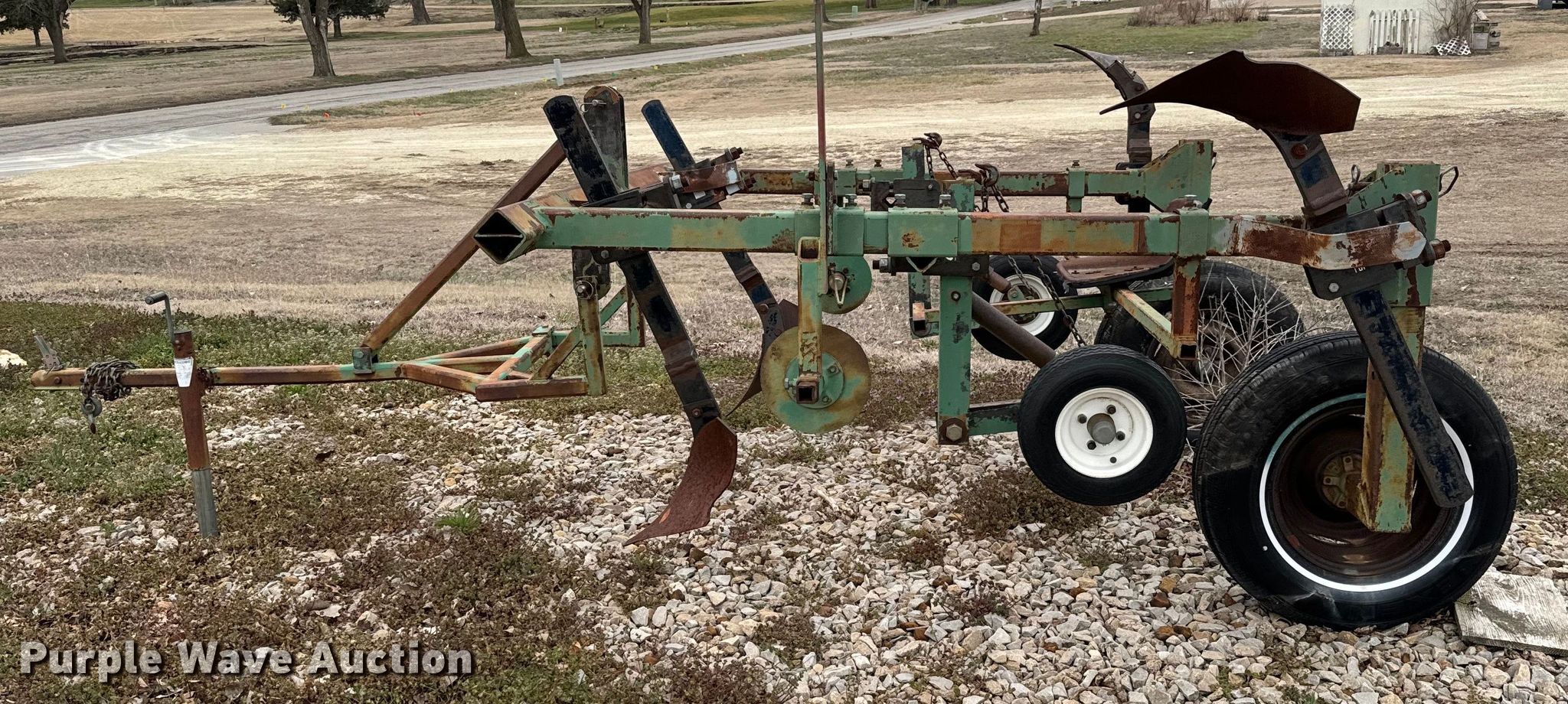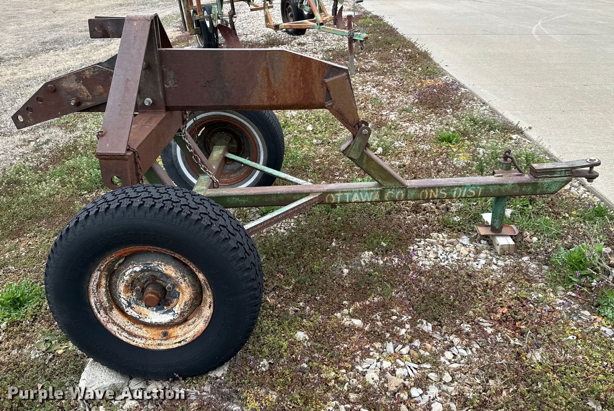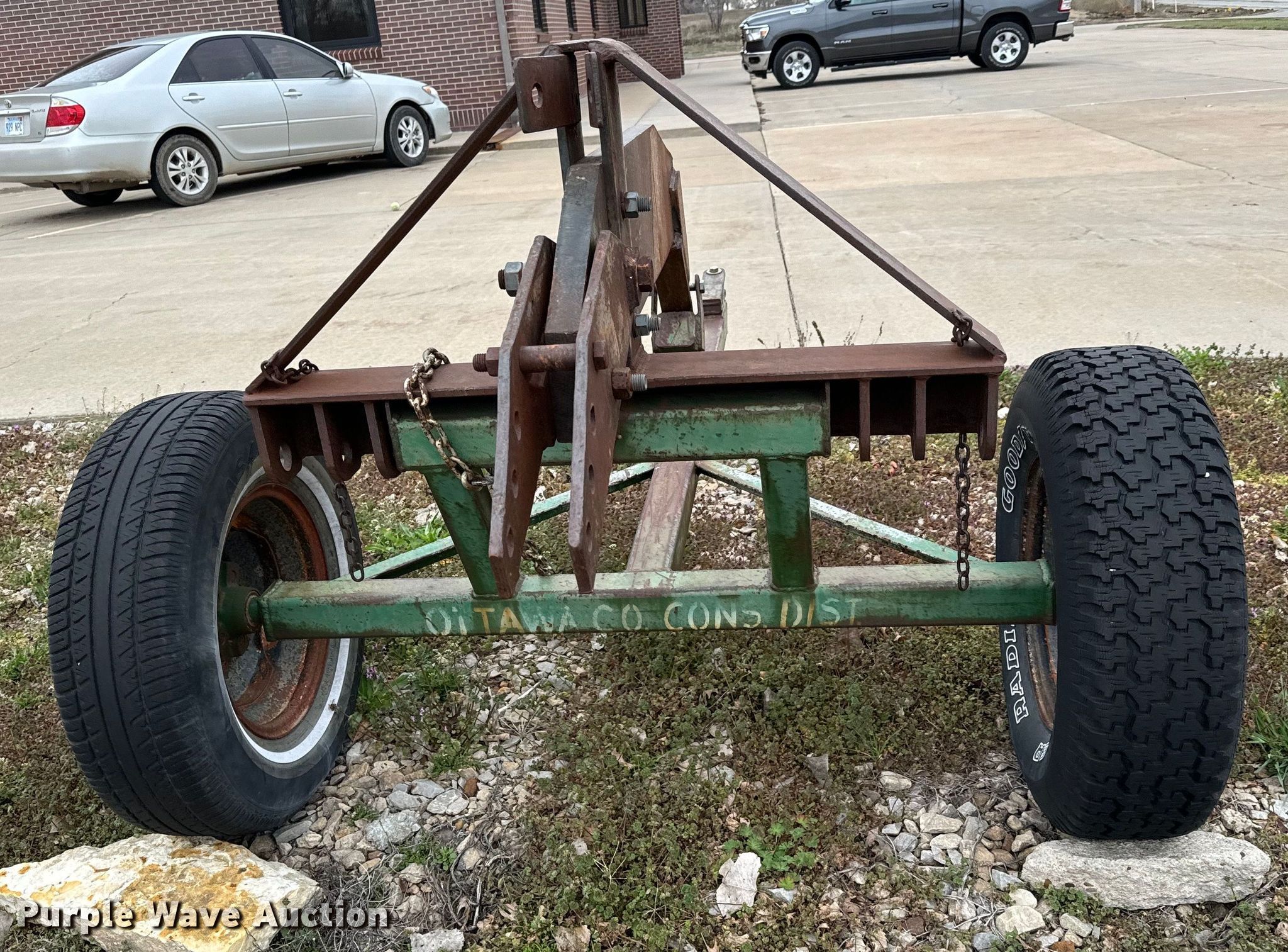 Tillage equipment. Landscape fabric machine Ball hitch: 2", Tire size: 235/75R15, Gauge wheel size: 4.80-8, Root plow Hitch: Pin, Tire size: 235/75R15, Tree transplanter Hitch: Three point, Tire size: 4.80-12. Notes Plow missing. Ottawa County Conservation District. Minneapolis, KS 67467