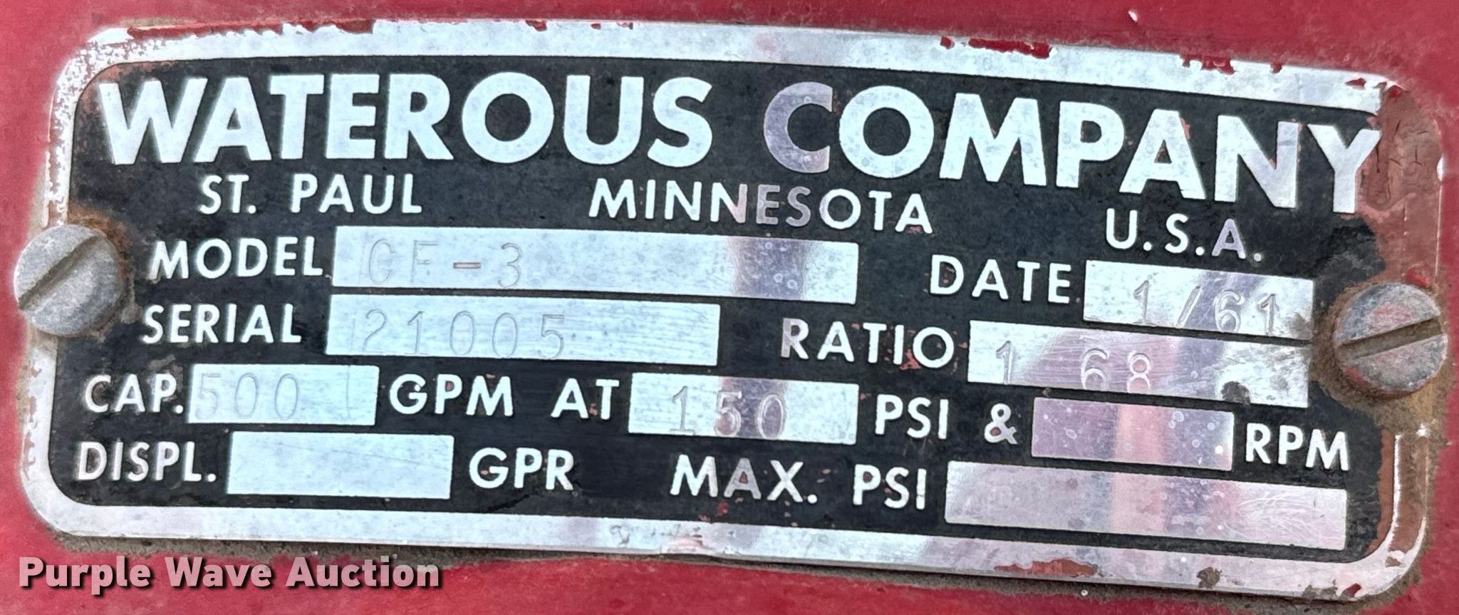 Purple Wave is selling a used Fire Truck or Emergency Vehicle in Kansas. This item is a 1961 International Harvester C-132 pumper fire truck with the following: Miles: 2,725 on odometer, VIN: SB-160289-B