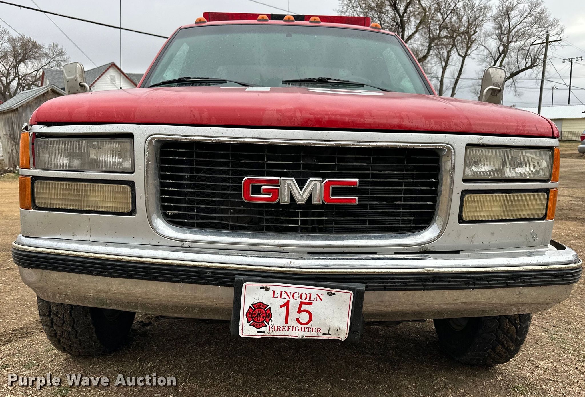Purple Wave is selling a used Fire Truck or Emergency Vehicle in Kansas. This item is a 1994 GMC Sierra 3500 pumper fire truck with the following: Miles: 95,578 on odometer, Hours: 595 on meter, VIN: 1GTHK39N7RE550647