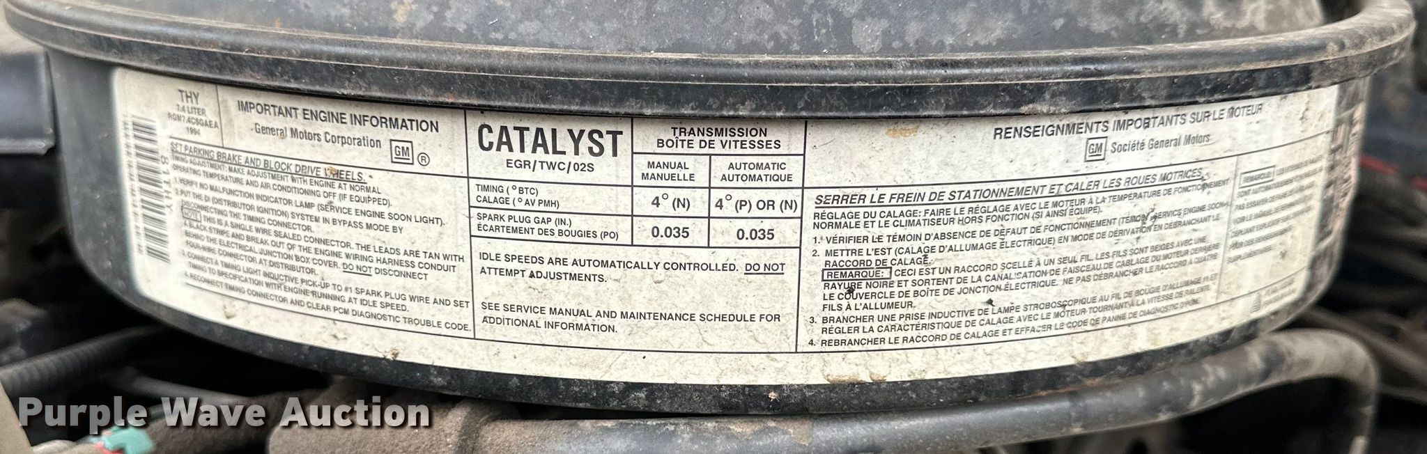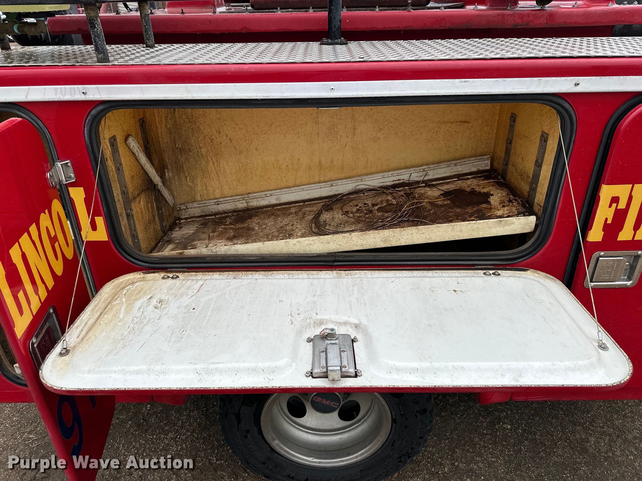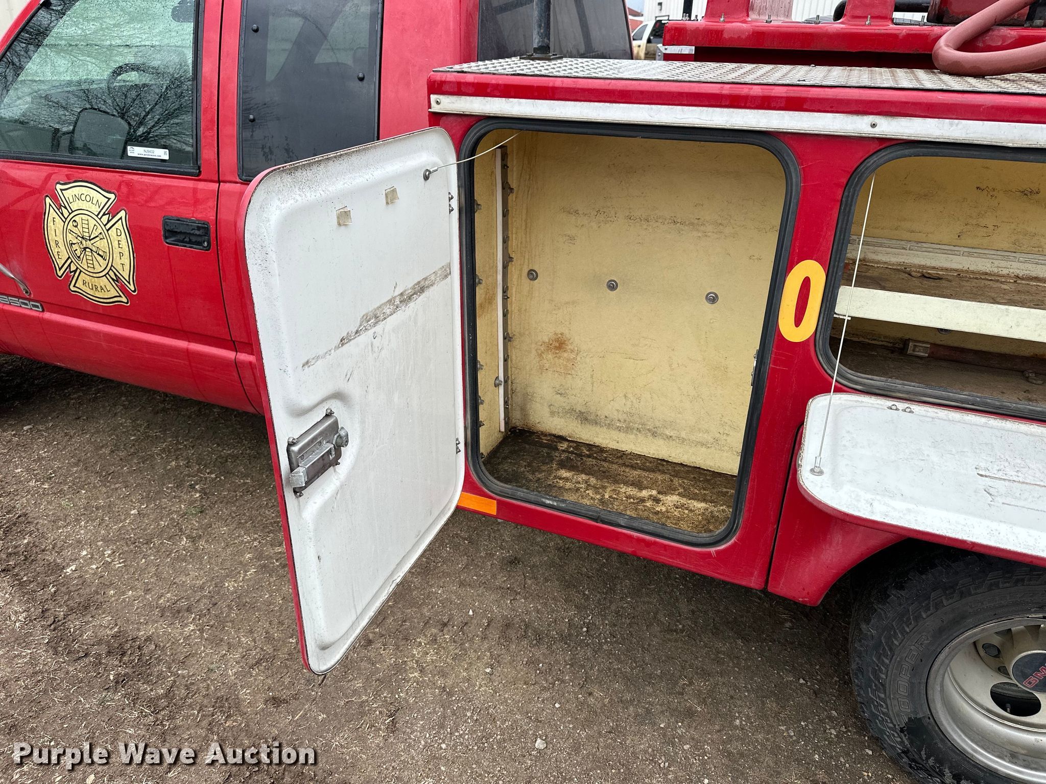1994 GMC Sierra 3500 pumper fire truck. Miles: 95,578 on odometer, Hours: 595 on meter, VIN: 1GTHK39N7RE550647. Engine Displacement: 7.4L V8 OHV, Cylinders: 8, Fuel type: Gas. Transmission Automatic. Chassis Four wheel drive, Axles: Single, Suspension: Spring, Brakes: Hydraulic. Interior AC, Heat, Power windows, Power locks, Cruise control, Auxiliary controls. Features Fire truck body Fibre Body, Hose, PA/ siren controls, Pump engine Briggs & Stratton Vanguard, Cylinders: 2, Fuel type: Gas, HP: 18, 1" hose, Weis 300 gallon Water Tank. Tires Size: 225/75R16. Kansas title. Seller is a government entity who will be assigning and distributing the title. Please contact the seller for distribution questions. Title distribution may be delayed up to 14 days from verification of funds. Lincoln County, KS. 102 North 6th Street. Lincoln, KS 67455