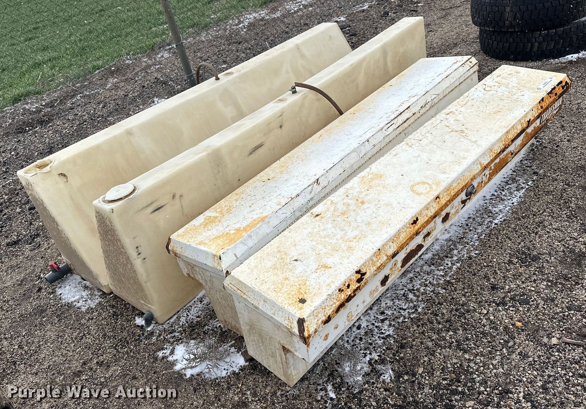 Toolboxes and tanks. (2) Tradesman 70" L toolboxes, (2) 7' tanks. Russell County, KS. 4288 U.S Highway 40. Russell, KS 67665