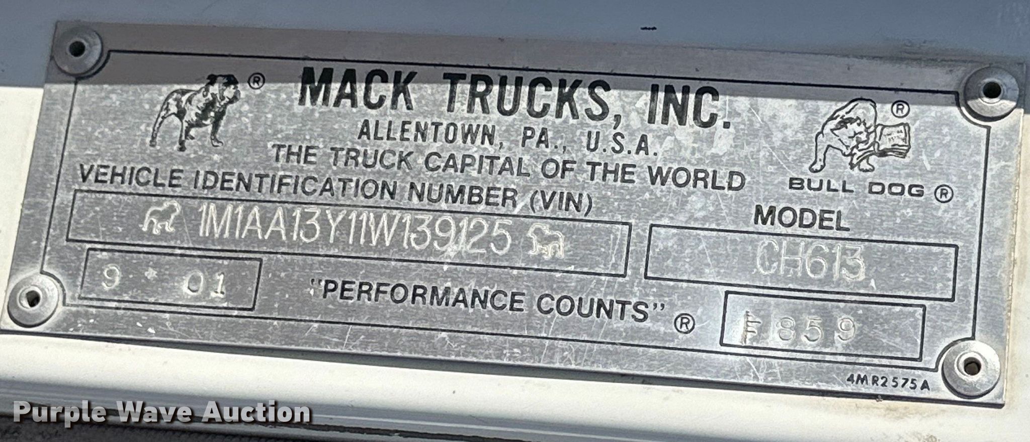 Purple Wave is selling a used Truck Tractor in Kansas. This item is a 2001 Mack CH613 semi truck with the following: Miles: 509,736 on odometer, Hours: 18,827 on meter, VIN: 1M1AA13Y11W139125