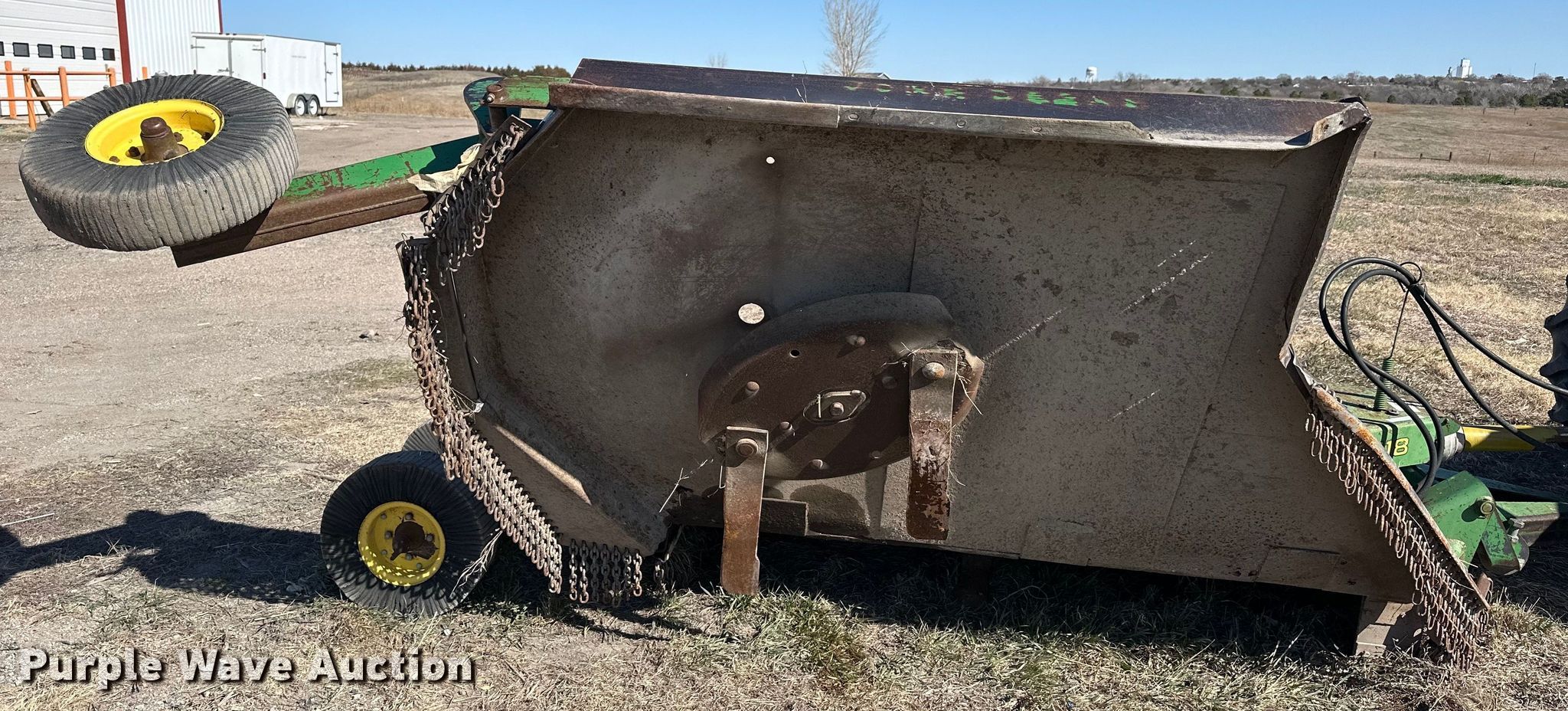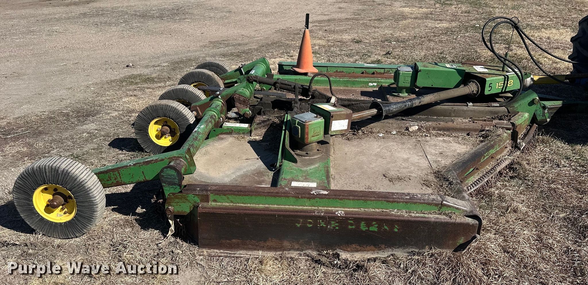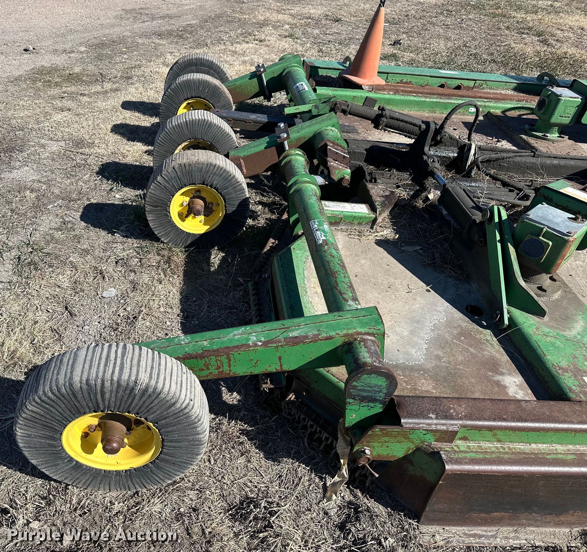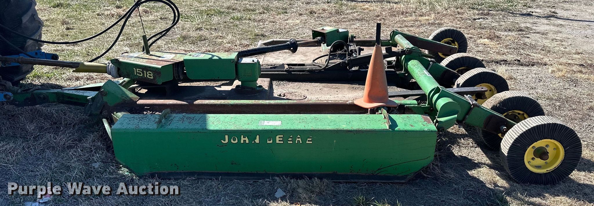 Purple Wave is selling a used Mower, Cutter, Shredder in Kansas. This item is a John Deere 1518 rotary mower with the following: Width: 11', PTO: 540, Hitch: Pin