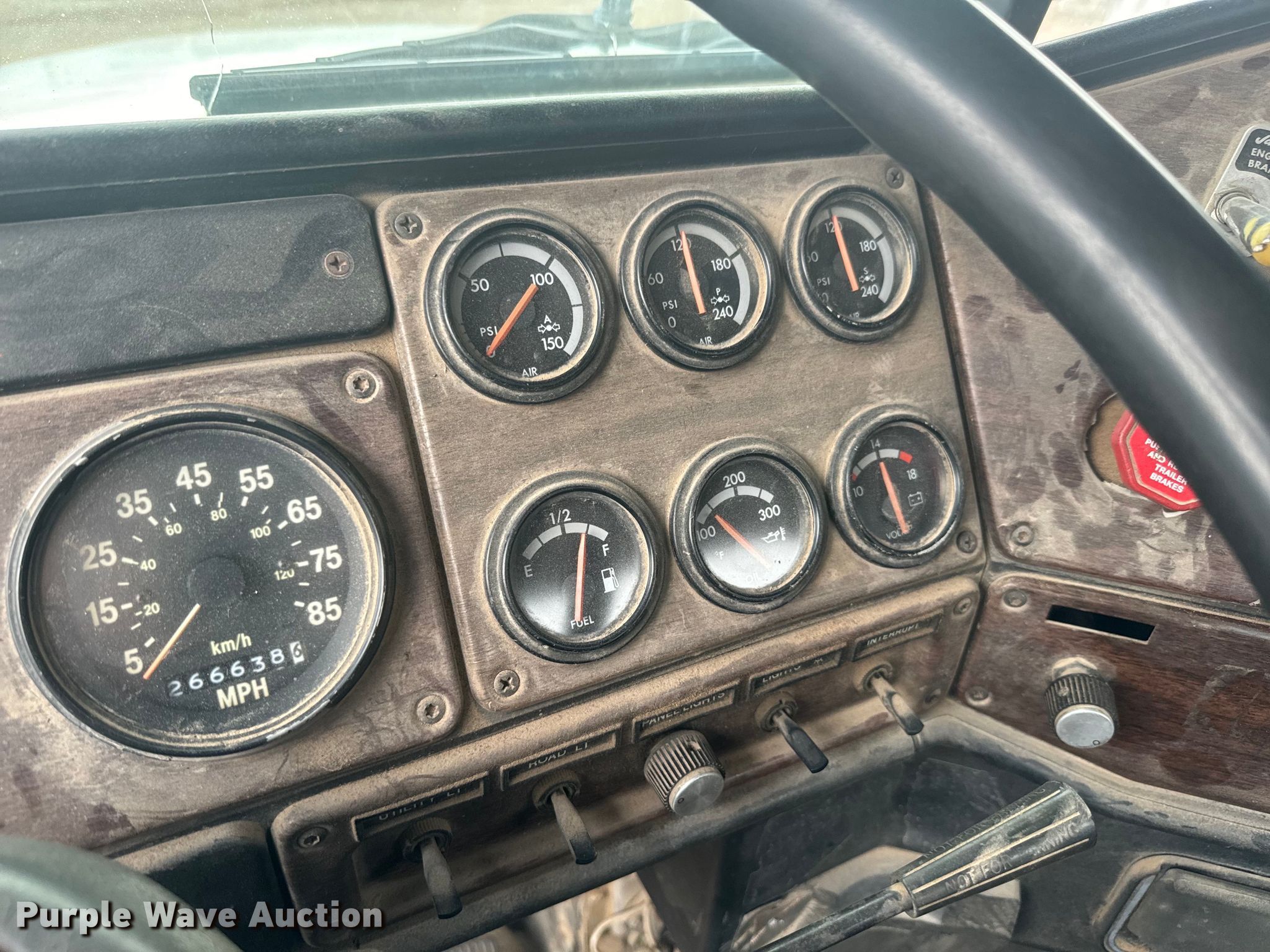1990 Freightliner FLD dump truck. Miles: 266,639 on odometer, VIN: 1FUYDXYB9LP372057. Engine Caterpillar 3406B, Displacement: 14.6L, Cylinders: 6, Fuel type: Diesel, Engine brake. Transmission Eaton Fuller, Manual, Speed: 13. Chassis Axles: Tandem, Differential lock: Inter-axle, Suspension: Air Dump valves, Brakes: Air, PTO, GVWR: 52,000 lbs FAWR: 12,000 lbs, IAWR: 20,000 lbs, RAWR: 20,000 lbs. Interior AC, heat, Heated mirrors. Features Dump bed 15' L x 96" W, Side height: 36", Bed type: Steel, Ram: Single, End gate: Air operated. Tires Size: 11R24.5. Notes Windshield chipped or cracked. Missouri title. Title distribution may be delayed up to 14 days from verification of funds. Benton County Road One District. 33500 Yoder Avenue. Warsaw, MO 65355