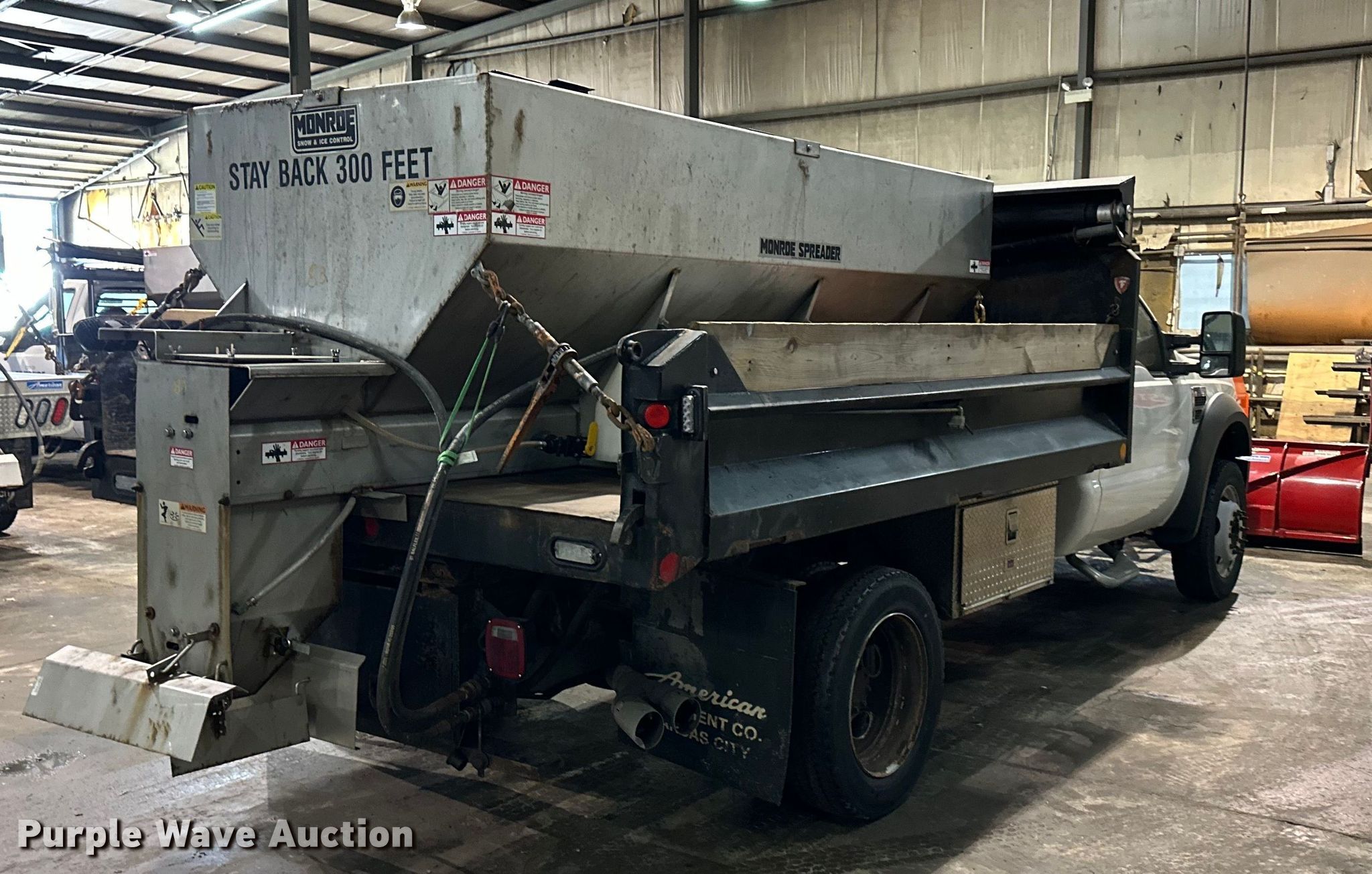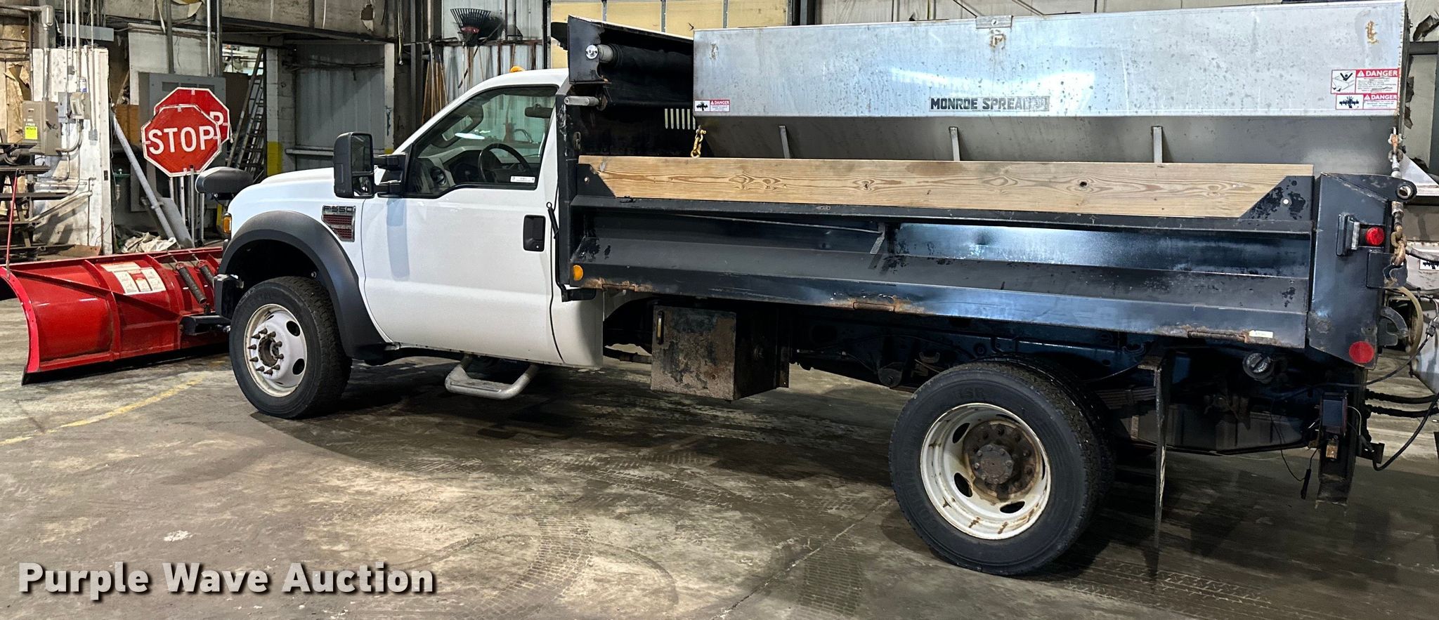 2010 Ford F550 Super Duty dump truck. Miles: 26,226 on odometer, VIN: 1FDGF5HR5AEA18393. Engine Displacement: 6.4L, Cylinders: 8, Fuel type: Diesel. Transmission Automatic, Four wheel drive. Interior AC, heat. Features Dump bed Rugby, 11' L x 93" W, Boss snow plow Width: 9', Monroe spreader. Tires Size: 225/70R19.5. View repairs. Missouri title. Title distribution may be delayed up to 14 days from verification of funds. City of Riverside, MO. 4200 Northwest Riverside Street. Riverside, MO 64150