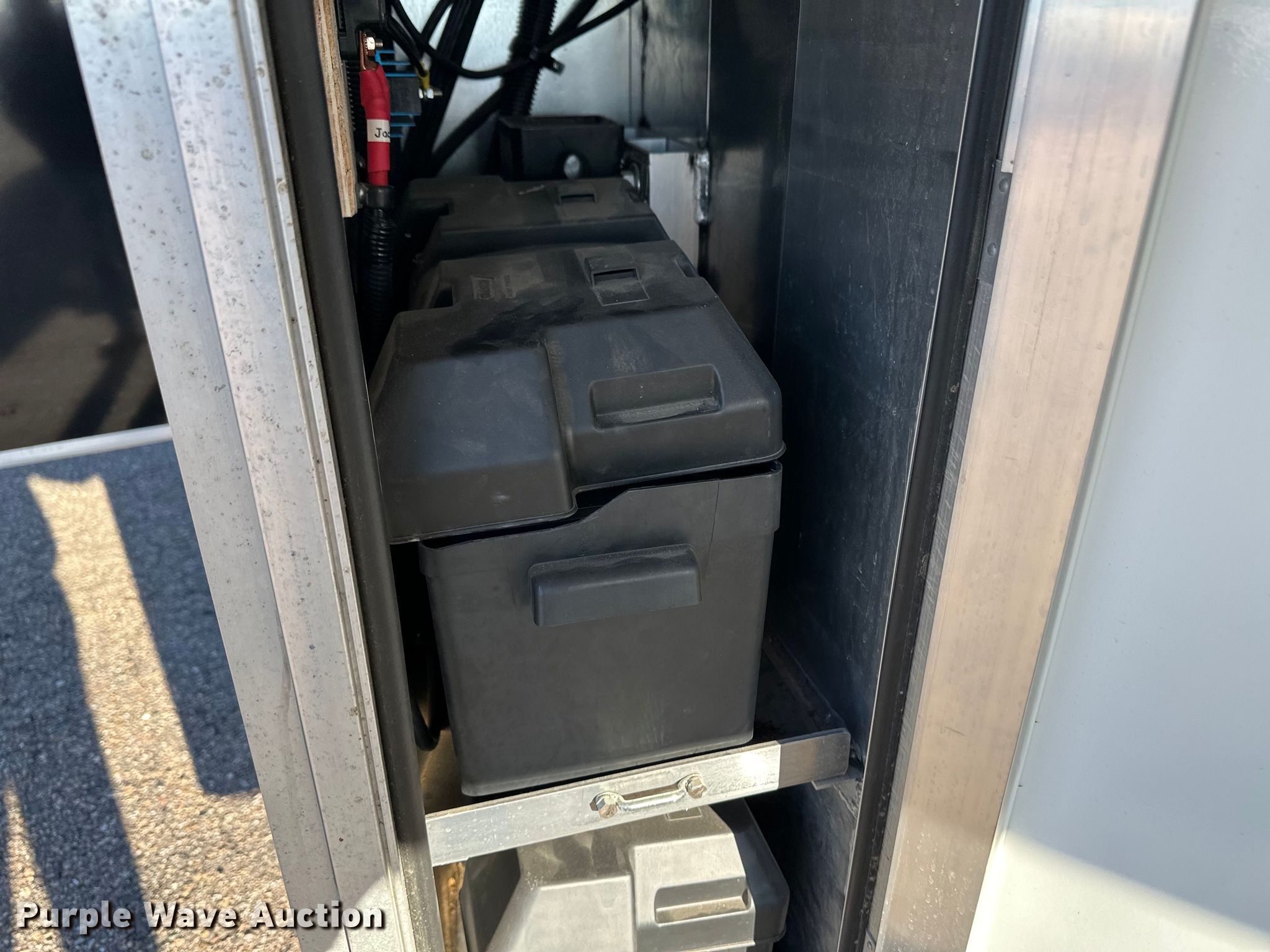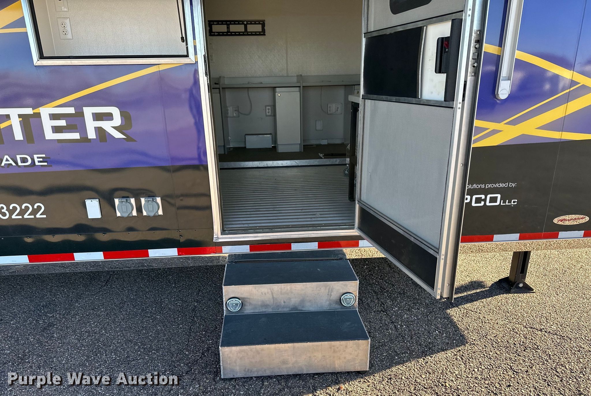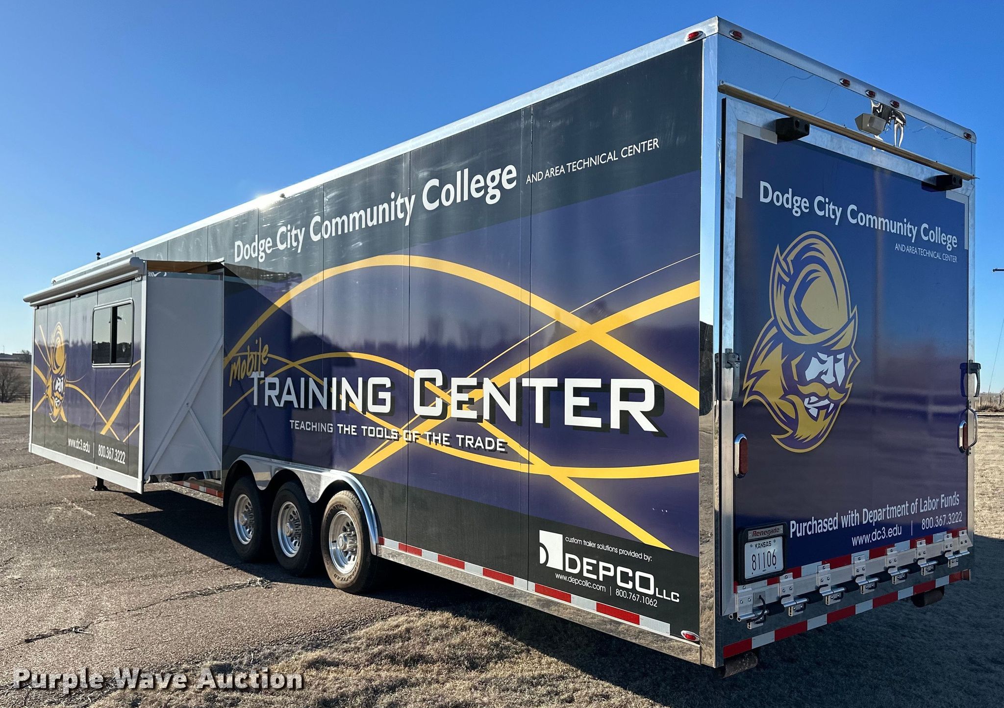 2013 Renegade training module enclosed cargo trailer. VIN: 1K9500V36D1160061. Dimensions Overall: 44' L x 102" W, Body: 38' L x 102" W, Rear door / ramp 90" L x 96" W. Chassis Hitch: Gooseneck, Landing gear: Dual, Suspension: Spring, Brakes: Electric, Axles: Triple. Features AC units: 2, Slide outs: 1, Awnings: 1 Awning type: Electric, Generator MagnaPlus 282PSL1705, Kubota engine, Fuel type: diesel, kW: 20, Volts: 240, Amps: 60, Phase: Three. Tires Aluminum wheels, Size: 235/80R16. Kansas title. Title distribution may be delayed up to 14 days from verification of funds. Dodge City Community College. 2501 N 14th Ave. Dodge City, KS 67801