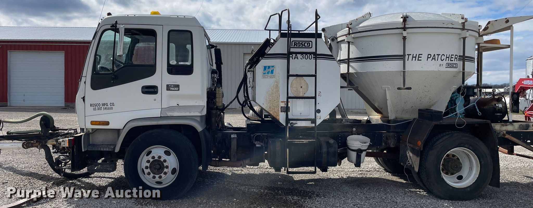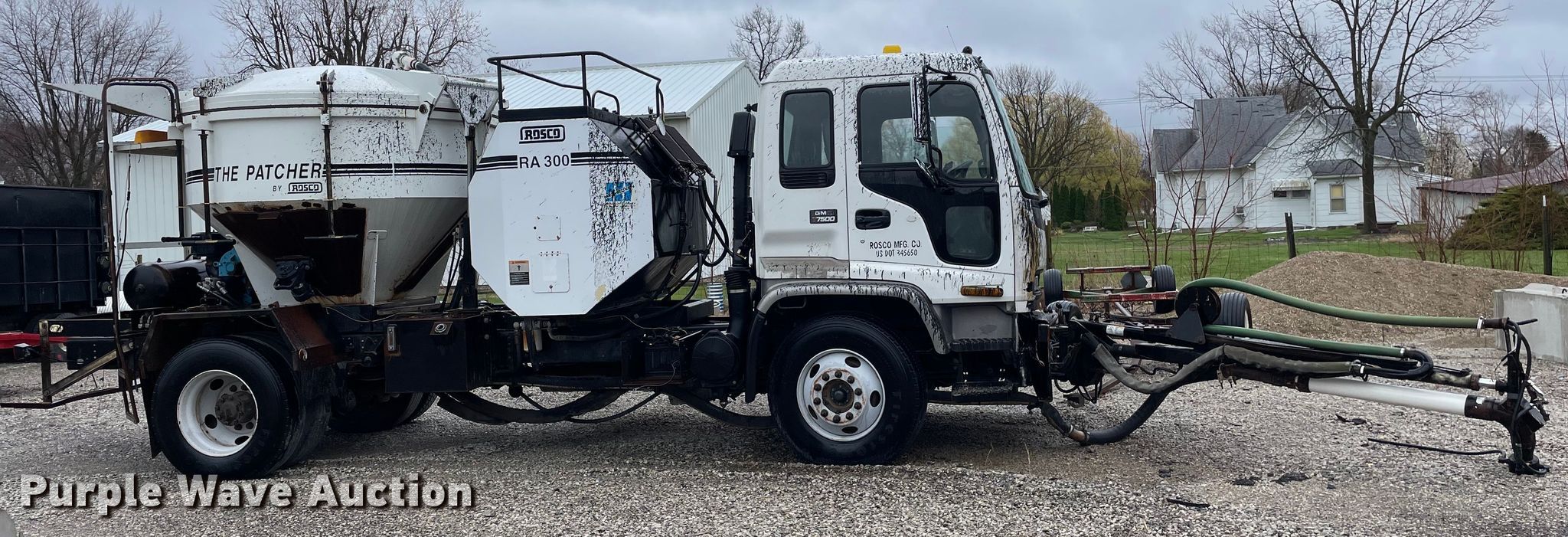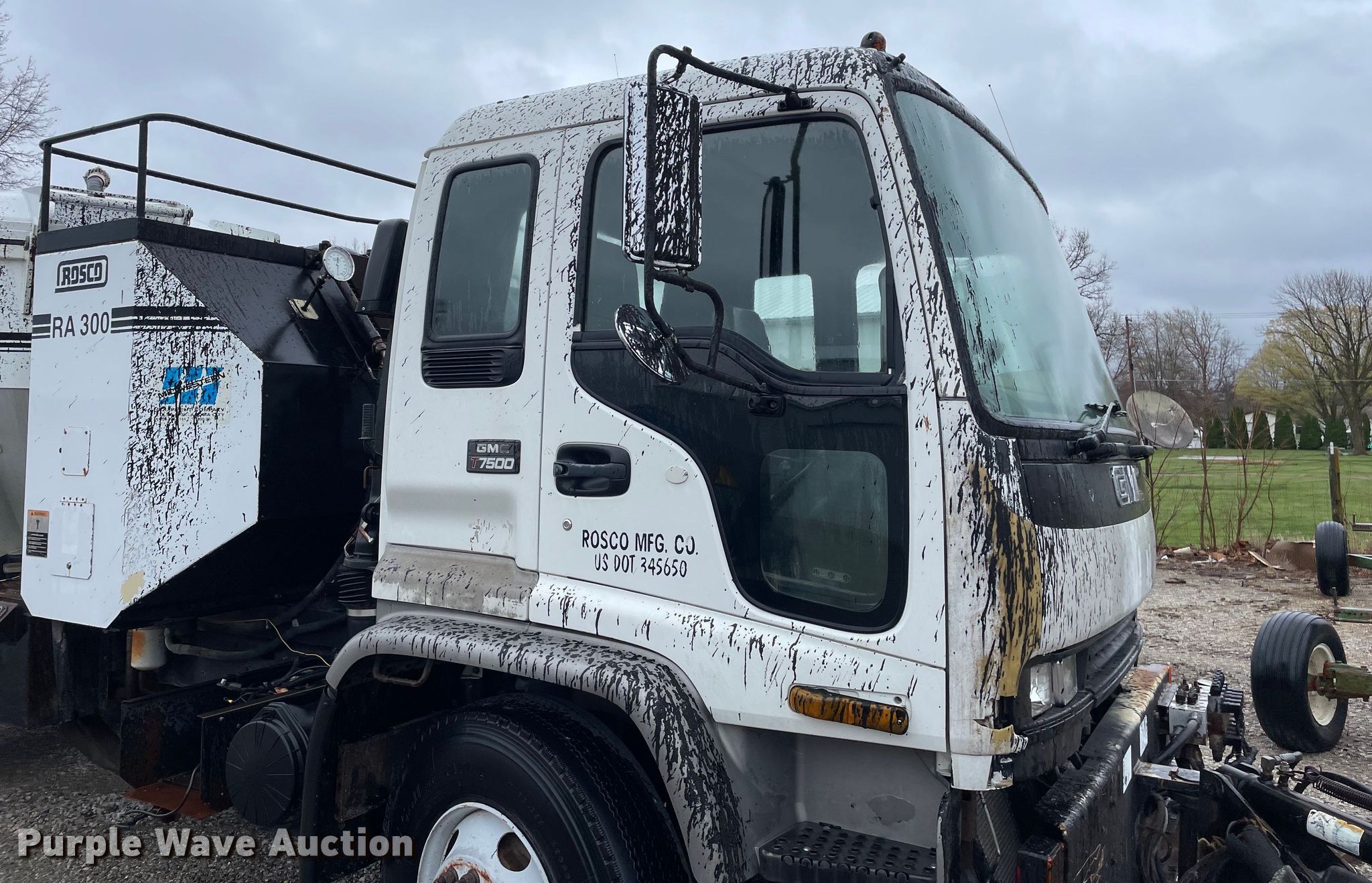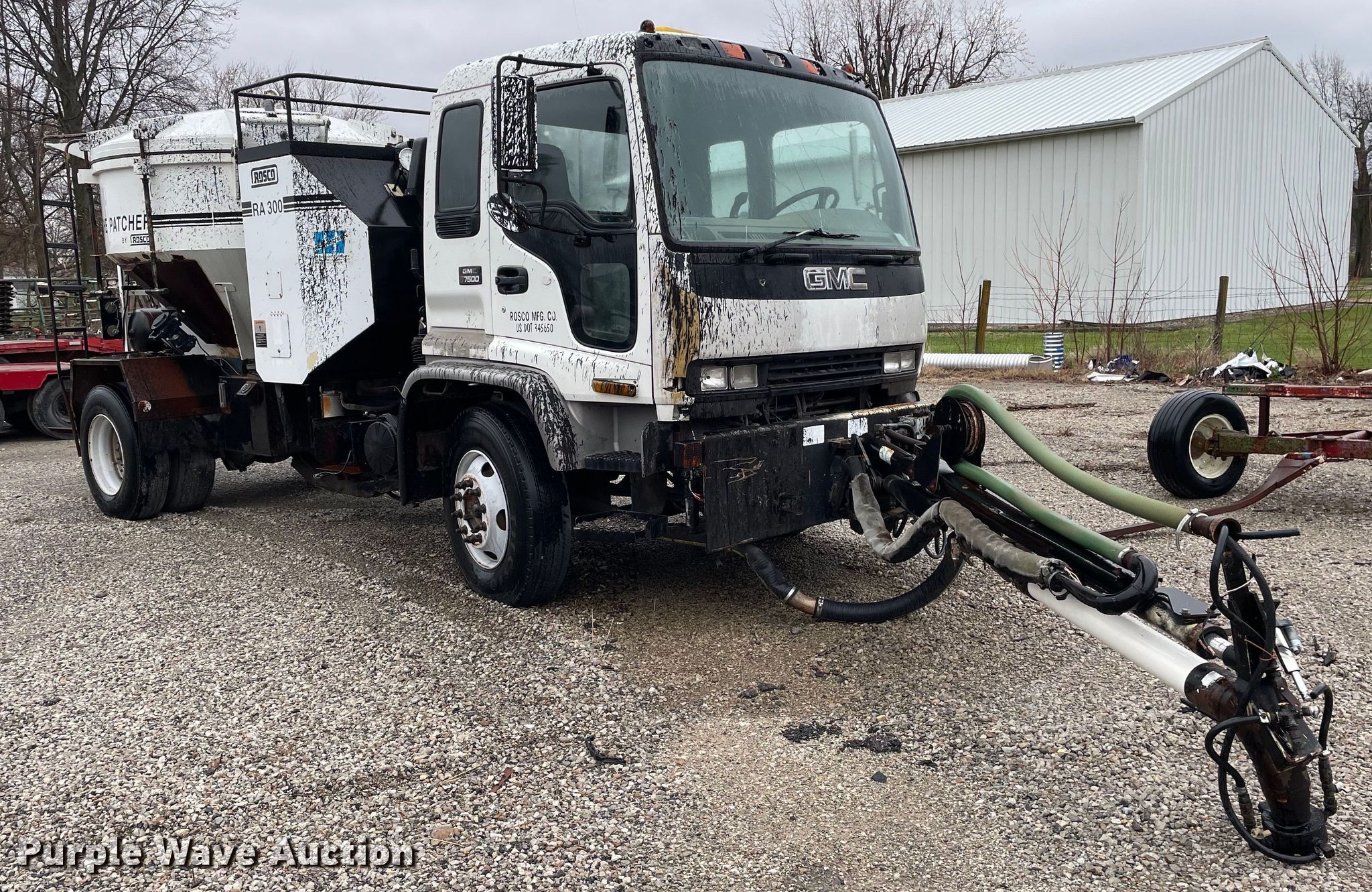 1997 GMC 7500 asphalt patch truck. Miles: 68,692 on odometer, Hours: 3,687 on meter, VIN: 1GDM7C1J2VJ518601. Engine Caterpillar 3116, Cylinders: 6, Fuel type: Diesel. Transmission Automatic. Chassis Axles: Single, Suspension: Spring, Brakes: Air. Interior AC, Heat, Auxiliary controls. Features Bed / tank Rosco RA300, Capacity: 400 gallons, 18' 9" L x 8' W, In-cab controls, Spray boom. Tires Front: 11R22.5. Notes Non-operational drivers window, Windshield chipped or cracked, Dead battery, Wiring harness issues, fire damage, Unit must be towed or hauled, Non-operational unit. Illinois title. Seller is a government entity who will be assigning and distributing the title. Please contact the seller for distribution questions. East Oakland Township. 515 W Main St. Oakland, IL 61943