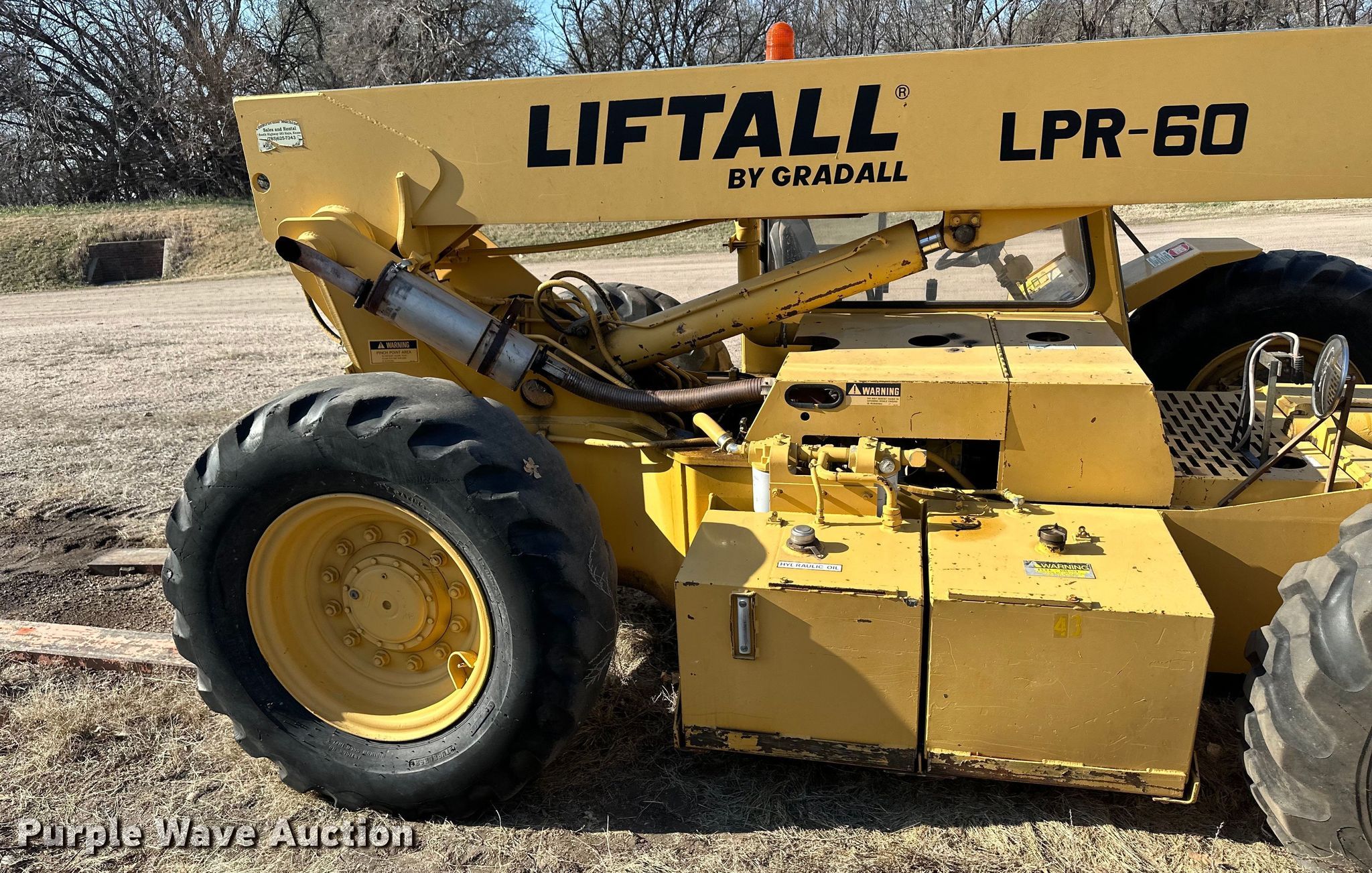 Purple Wave is selling a used Telehandler in Kansas. This item is a 1992 Liftall LPR-60 telehandler with the following: Hours: 5,417 on meter, Serial: 107026