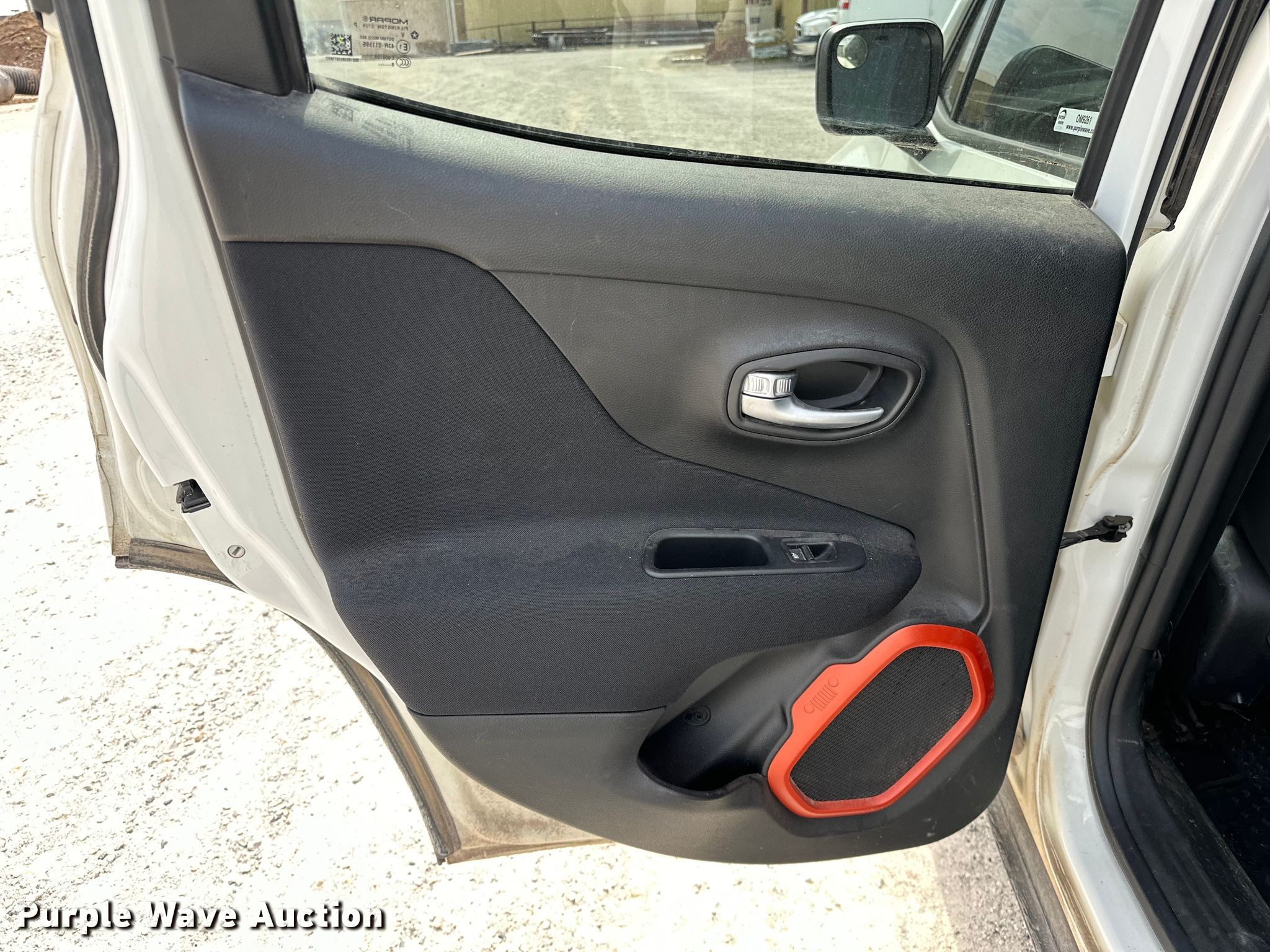 2018 Jeep Renegade SUV. Miles: 120,991 on odometer, VIN: ZACCJBAB3JPJ14704. Engine Displacement: 2.4L L4 DOHC, Cylinders: 4, Fuel type: Gas. Transmission Automatic, Four wheel drive. Interior AC, heat, Power windows, power locks, Cruise control, Backup camera. Tires Size: LT225/65R17. Notes Decals will be removed, Windshield chipped or cracked, Driver seat damaged. Arkansas title. Title distribution may be delayed up to 14 days from verification of funds. Benton County. W Walnut St. Rogers, AR 72756