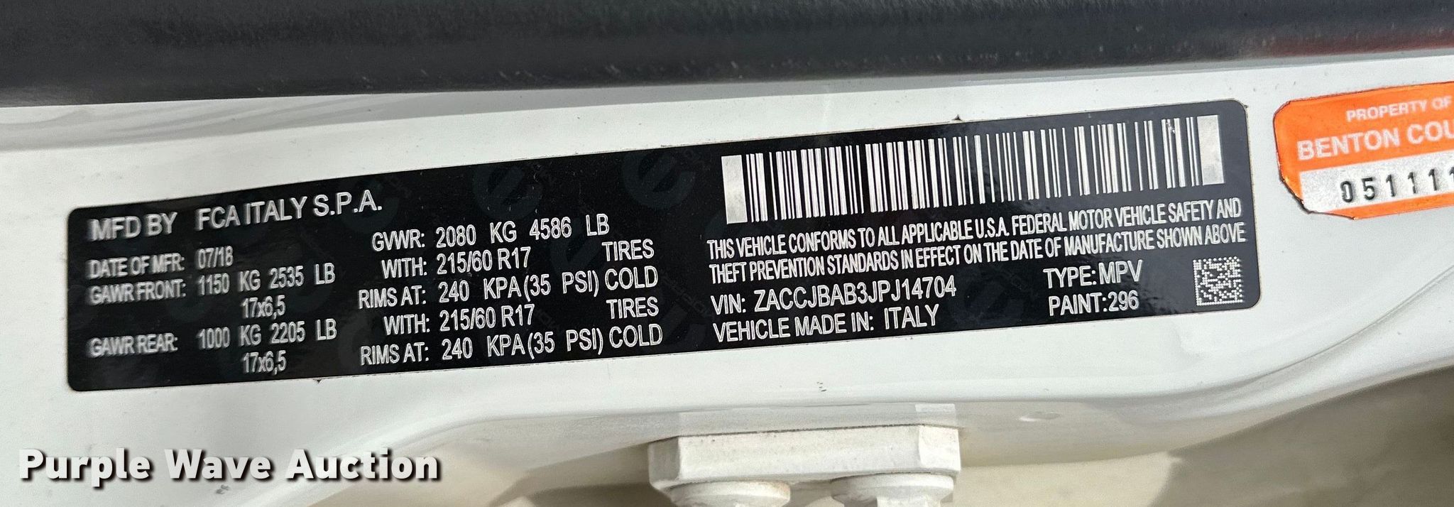 Purple Wave is selling a used Passenger Vehicle in Arkansas. This item is a 2018 Jeep Renegade SUV with the following: Miles: 120,991 on odometer, VIN: ZACCJBAB3JPJ14704