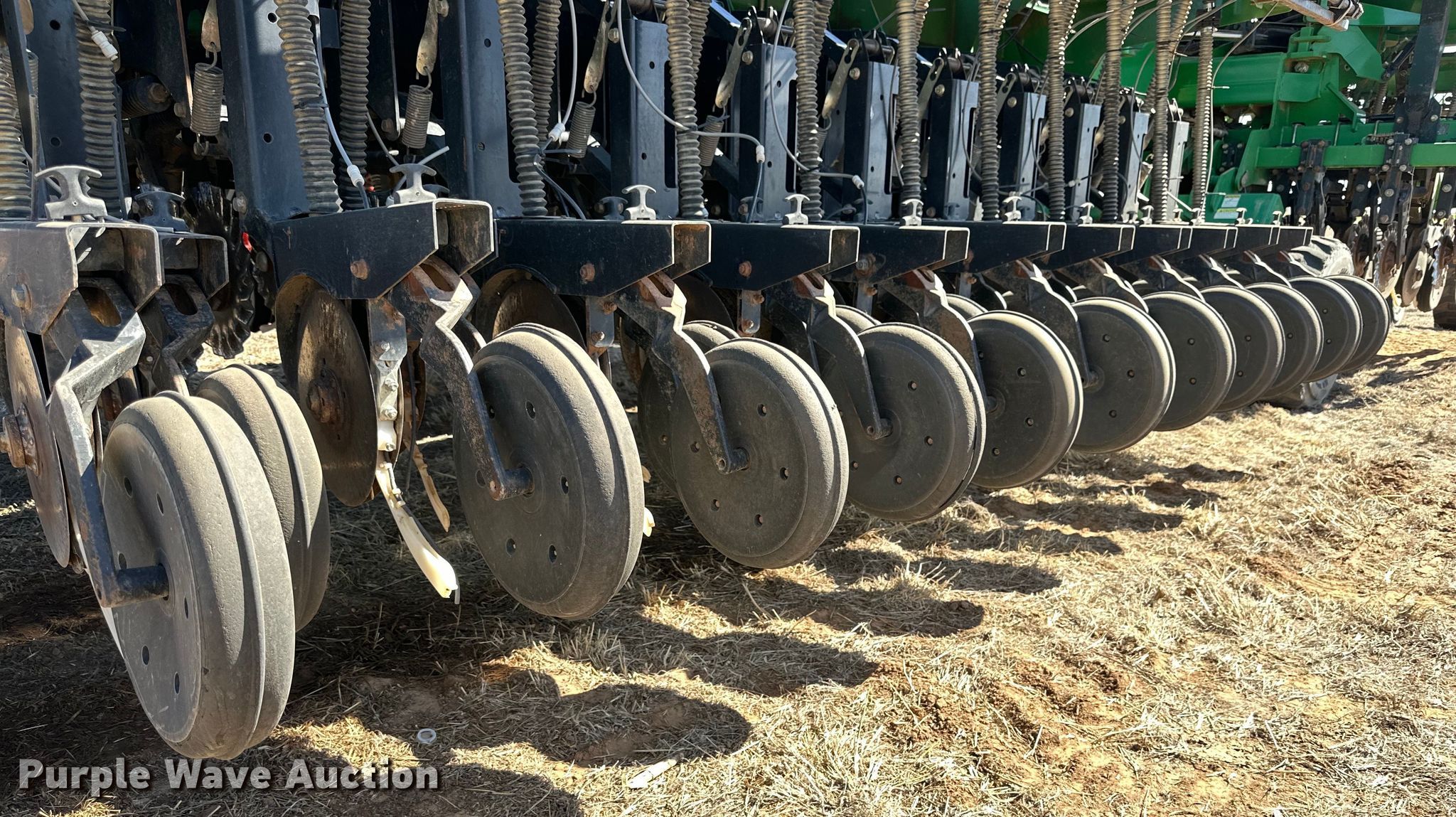 Great Plains 3N-4010 no-till grain drill. Width: 40', Row units: 64, Row spacing: 7.5", Serial: 1016TT. Features Frame Split row units: 64, Hydraulic fold Front fold, Seed delivery Bulk fill system, Row units Meter drive: Hydraulic, Seed meters: Corn, Down pressure: Spring, No-till coulters, Seed firmers, Disk openers: Double, Closing system: Single Type: Rubber, Fertilizer/ insecticide Fertilizer Liquid capacity: 400 gallons, Application method: Seed firmer, Electronics Monitor Great Plains, Ground radar.. Tires Transport tire size: 33x15.5-16.5 Quantity: 12. Gunnewick Custom Harvest Inc.. 2050 Co Rd 520. Hart, TX 79043
