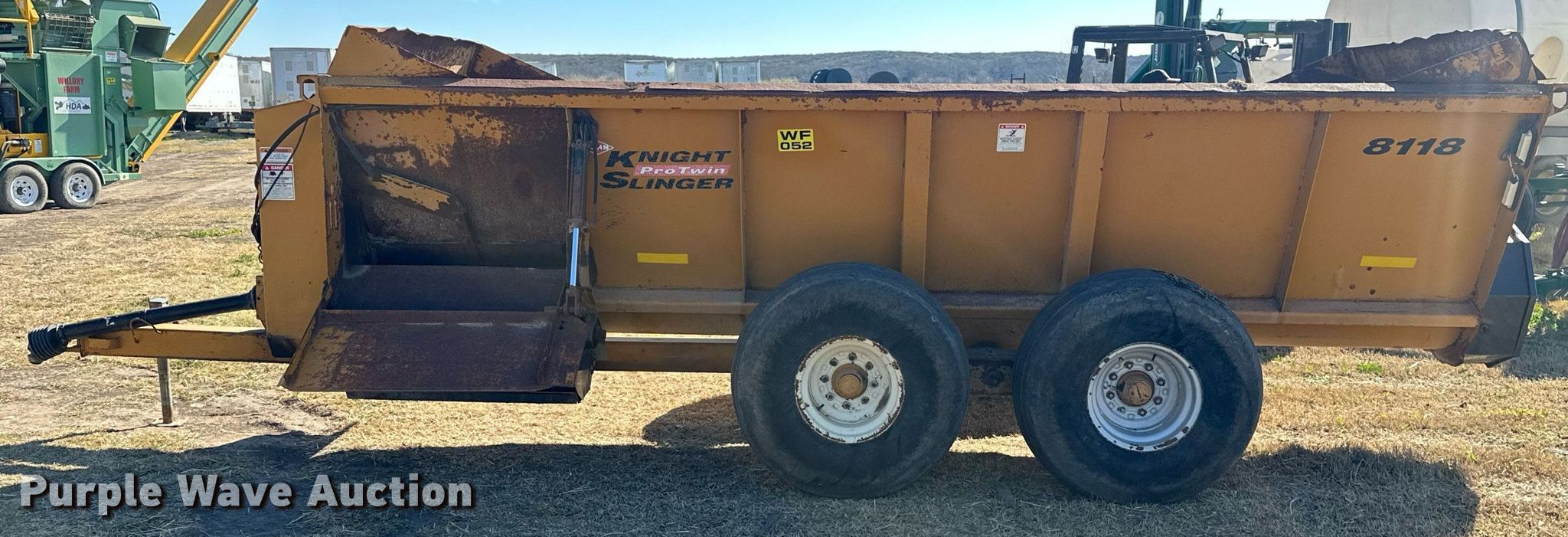 Purple Wave is selling a used Manure Spreader in Texas. This item is a Knight Slinger 8118 manure spreader with the following: Serial: B0173