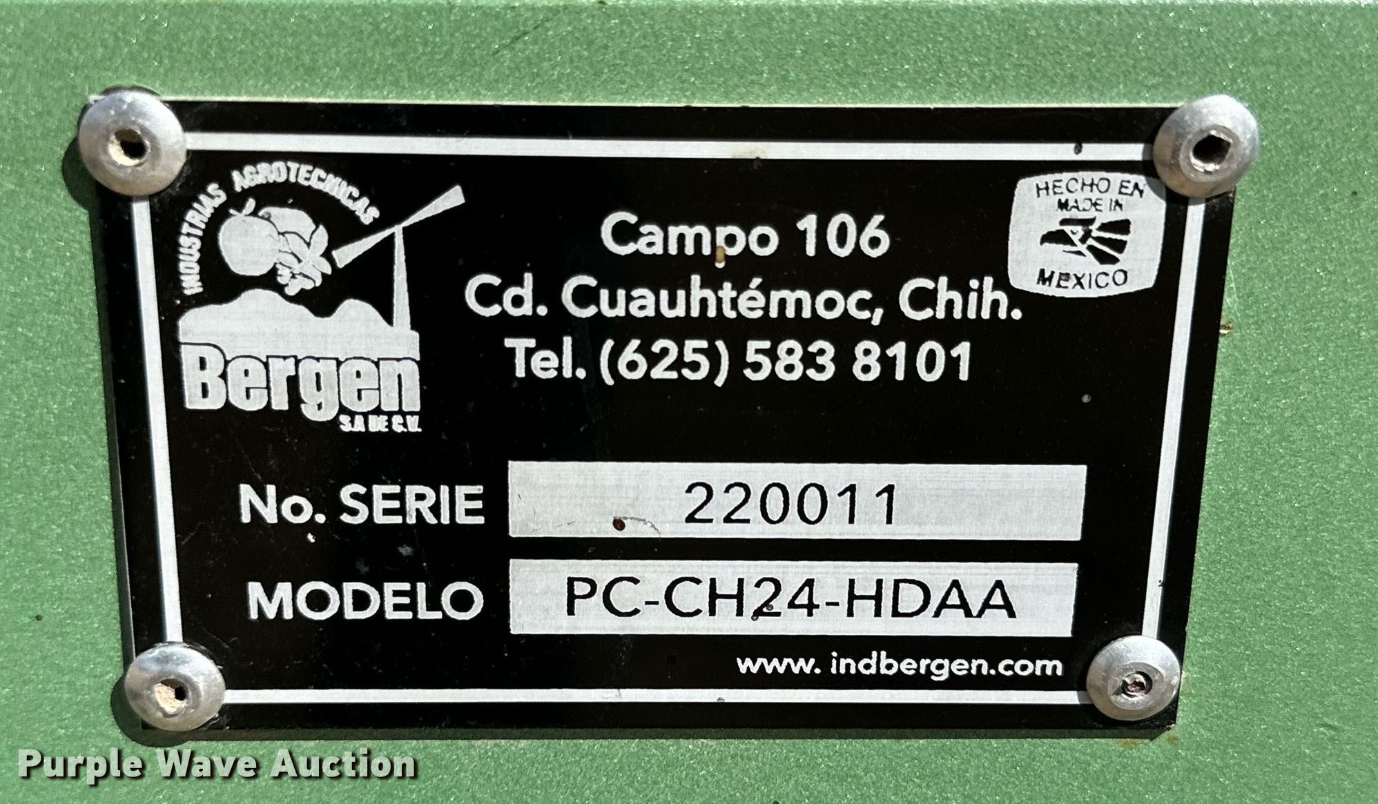 Purple Wave is selling a used Specialty Crop Harvester in Texas. This item is a Bergen PC-CH24-HDAA pecan cleaner with the following: Hours: 14, Serial: 220011