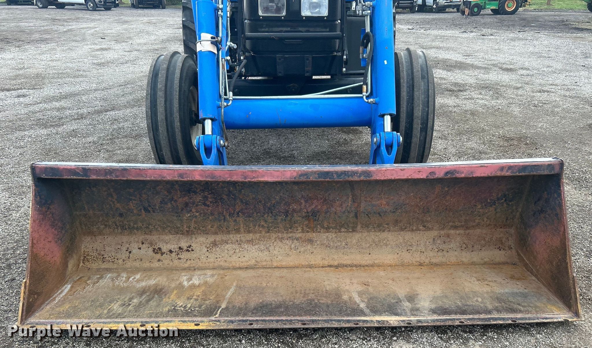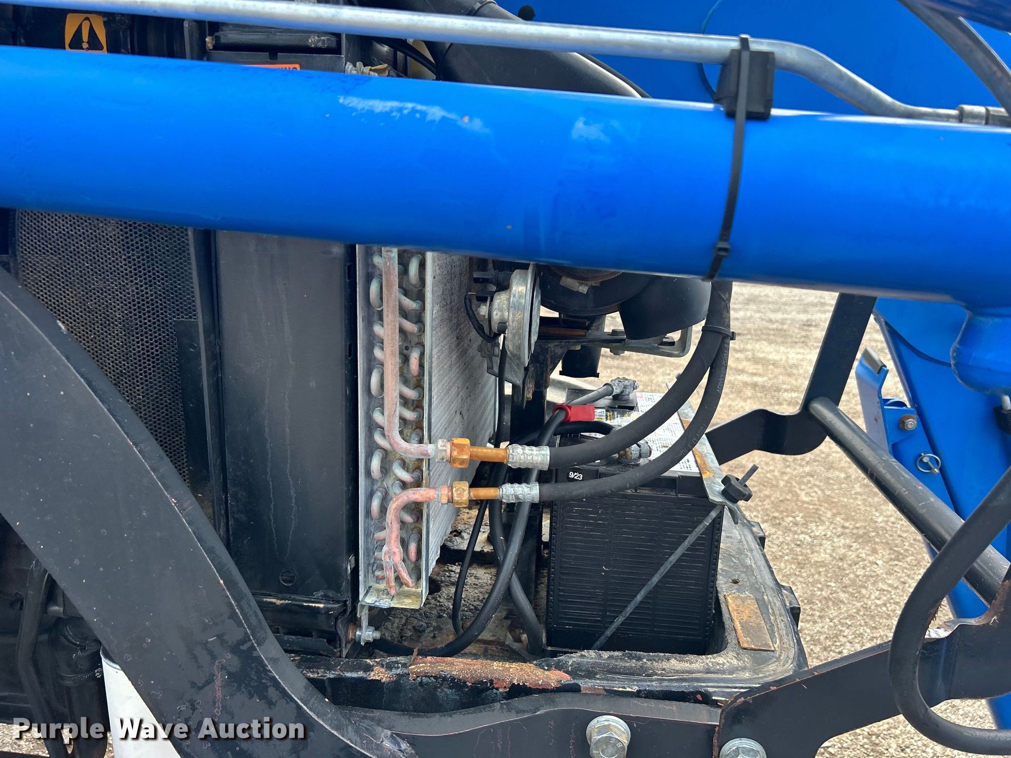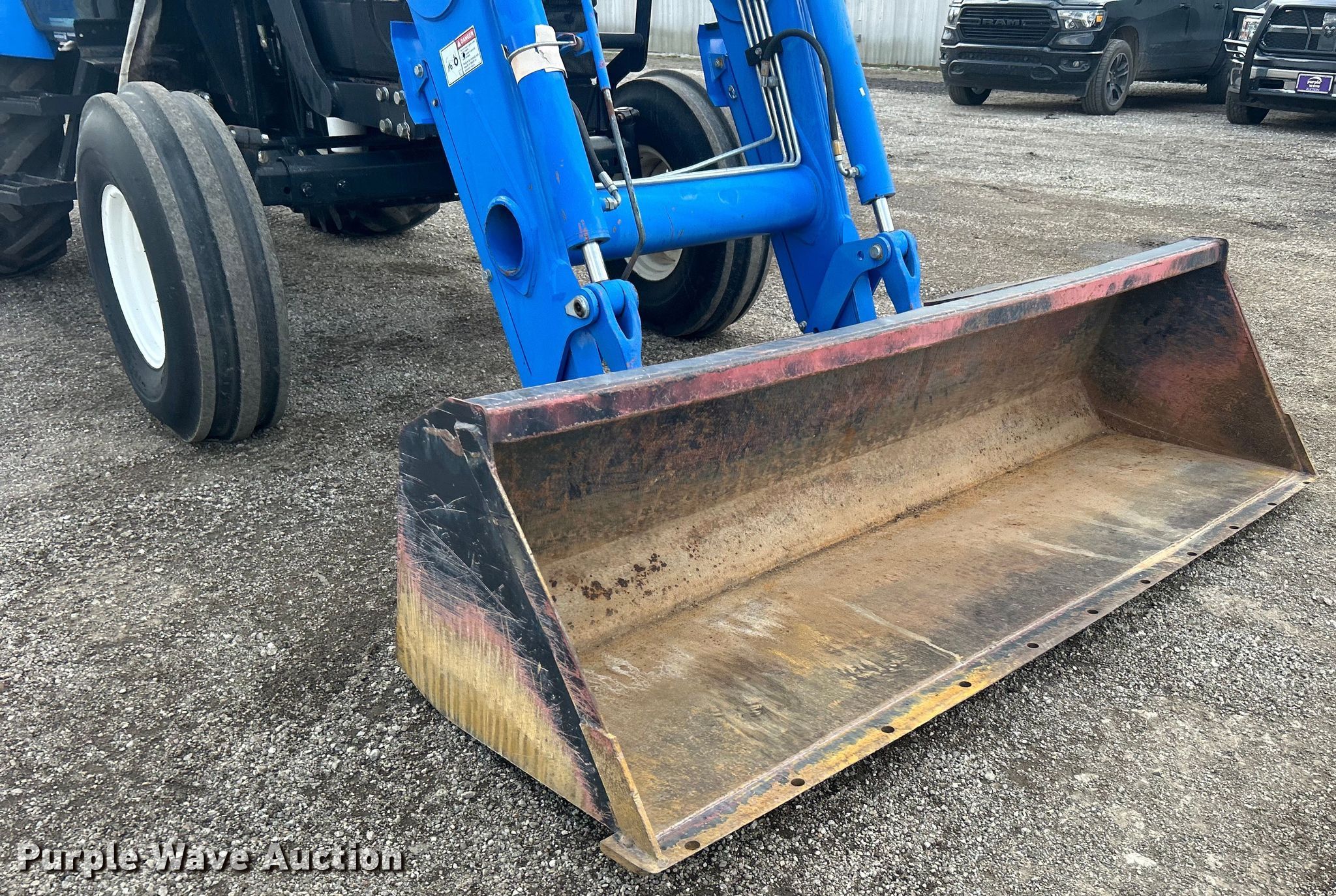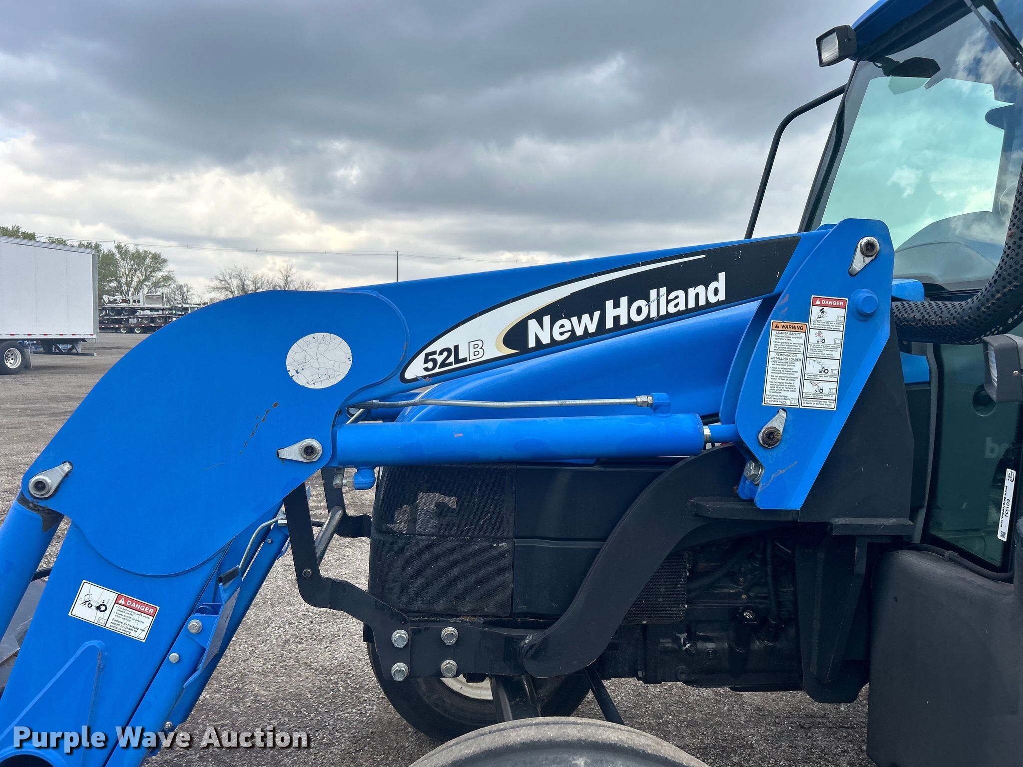 2004 New Holland TL90 tractor. Hours: 1,641 on meter, Serial: 001326390. Engine Iveco 8045.25, Displacement: 238.6 C.I.D., Cylinders: 4, Fuel type: Diesel, HP: 84. Transmission Synchro, 12F - 12R, Left-hand reverser, Differential lock. Operators station AC, Heat. Features PTO: 540, Three point, Hydraulic remote sets Rear: 2, Loader New Holland 52LB, Controls: Joystick, Bucket Width: 84".. Tires Front: 10.00-16, Rear: 28.4-30. 15107 North 137th East Avenue. Collinsville, OK 74021