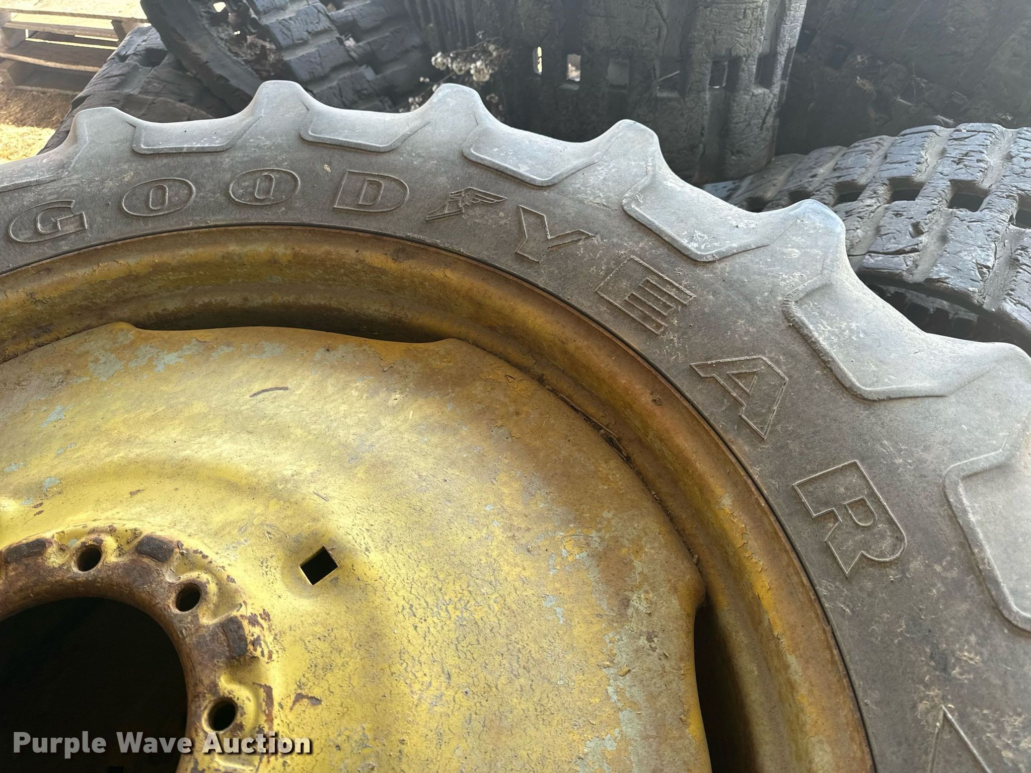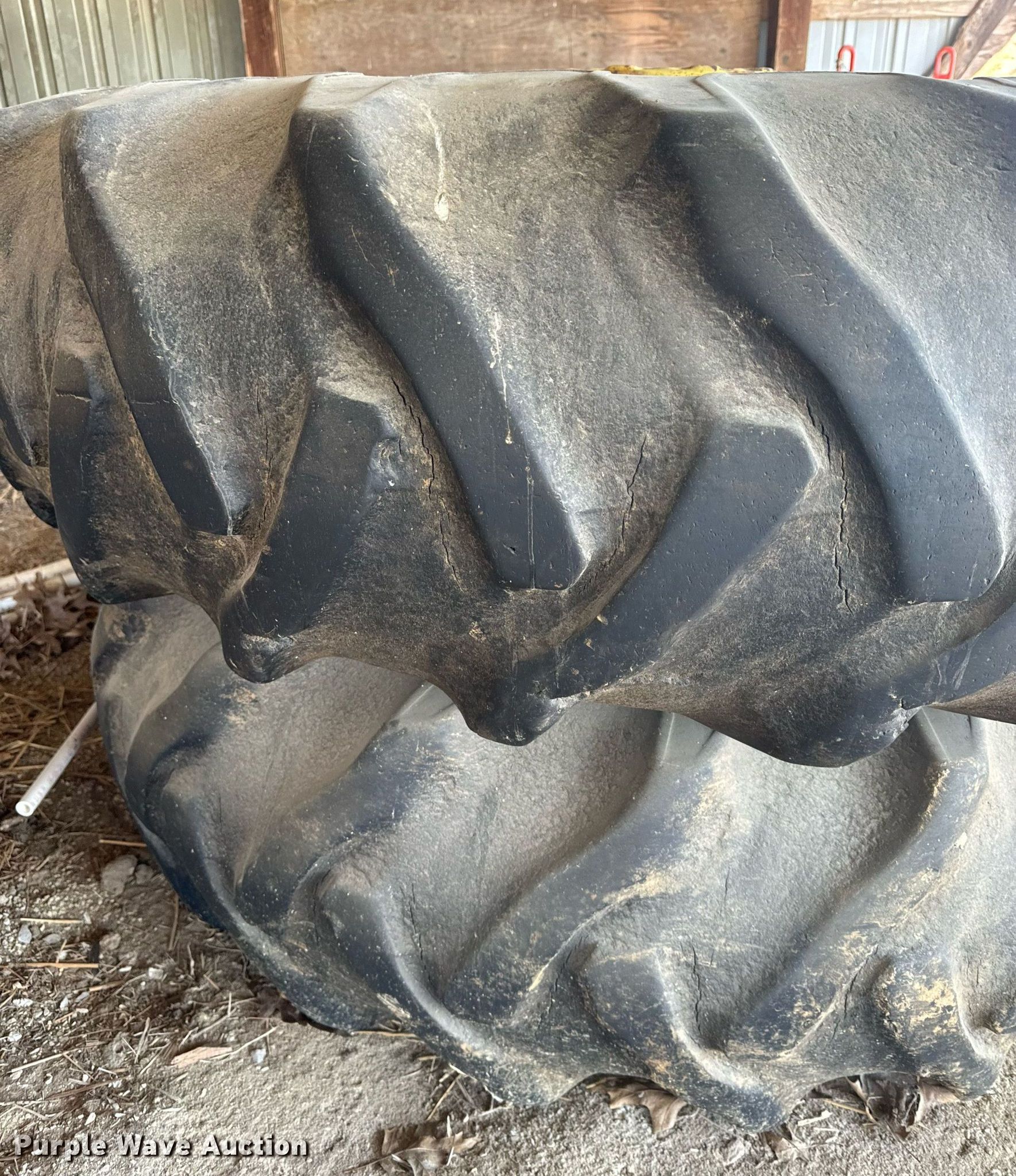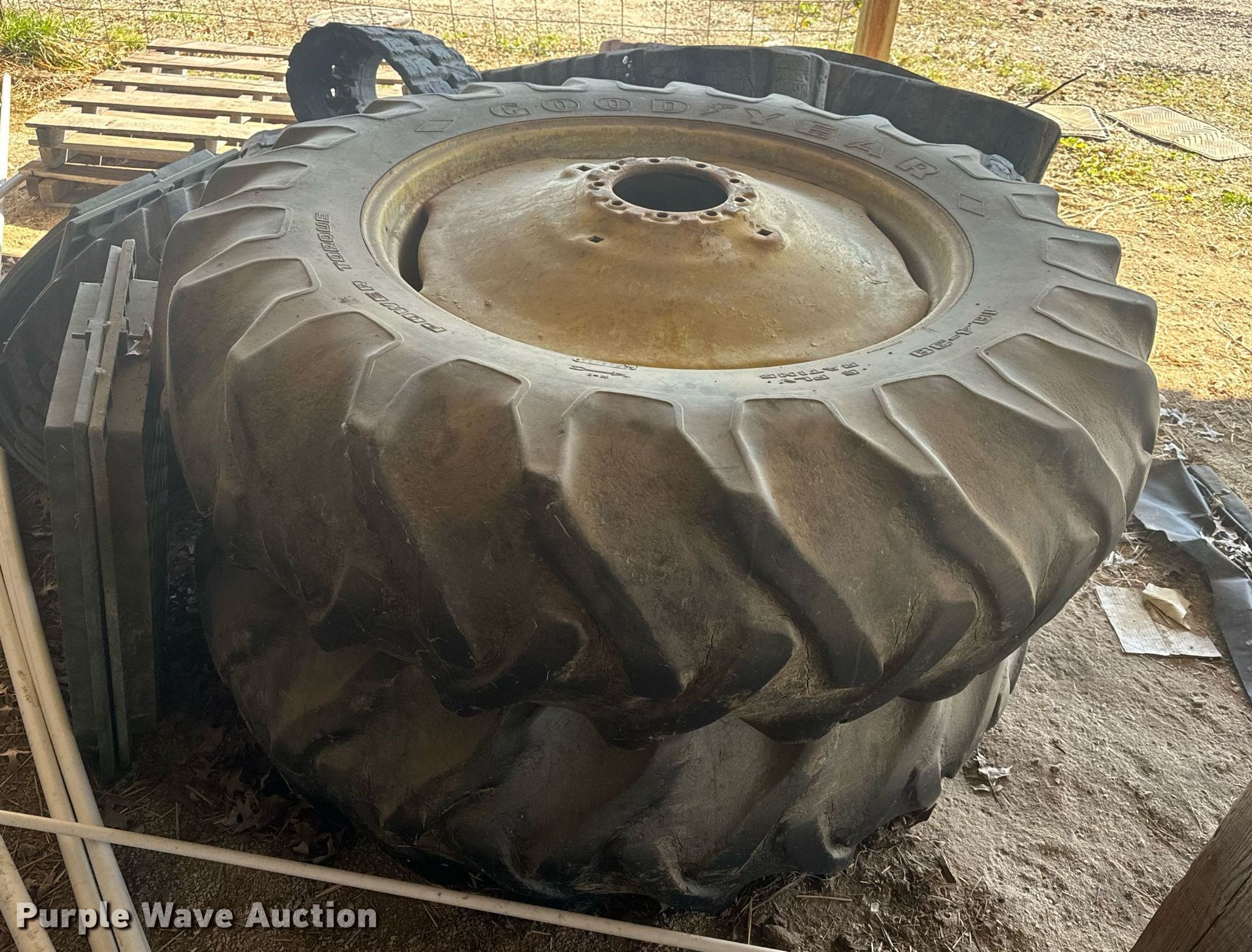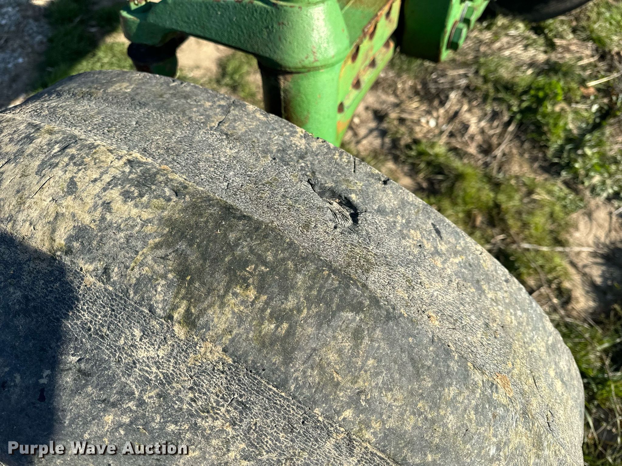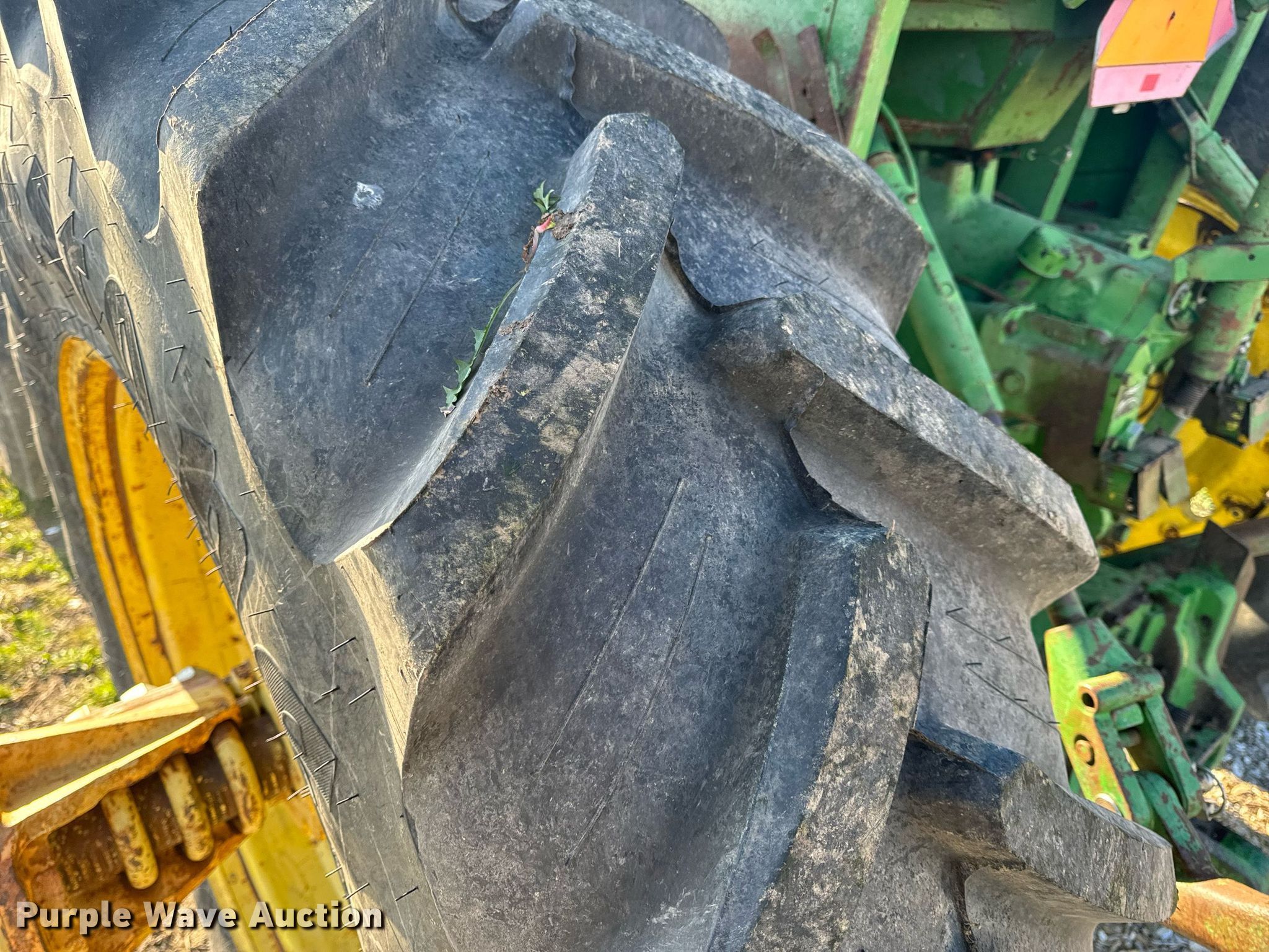 1974 John Deere 4630 tractor. Hours: 8,133 on meter, Serial: 007608R. Engine John Deere, Cylinders: 6, Fuel type: Diesel. Transmission Synchro, 8F - 2R, Differential lock. Operators station AC, Heat. Features PTO: 1000, Three point Top link, Hydraulic remote sets Rear: 2. Tires Front: 14L-16.1, Rear: 18.4R38. Notes Additional rear dual tires included, Dead battery, Unknown operating condition of AC, Front tire issues, cracked. PM Excavating. 22635 South Coonce Lane. Hartsburg, MO 65039
