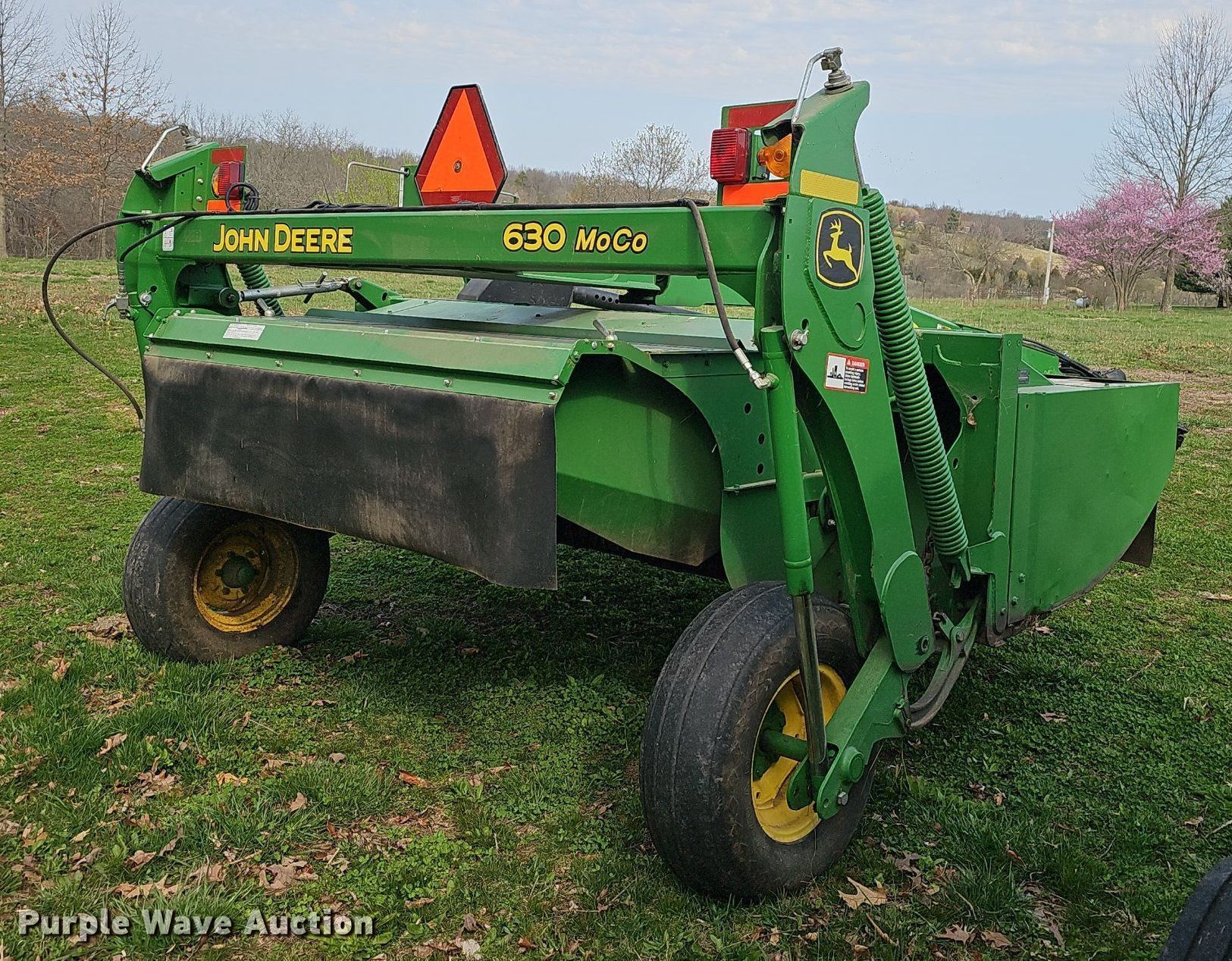 Purple Wave is selling a used Disc or Sickle Mower in Missouri. This item is a John Deere 630 MoCo disc mower with the following: Serial: 1E00630TCGG420787